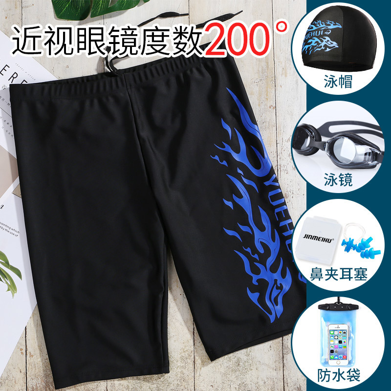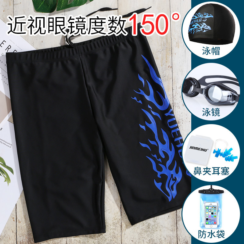 수영 바지 남성 성인 수영 바지 남성 수영복 편안한 복서 느슨한 속건성 전문 수영 고글 수영복 수영 모자 세트