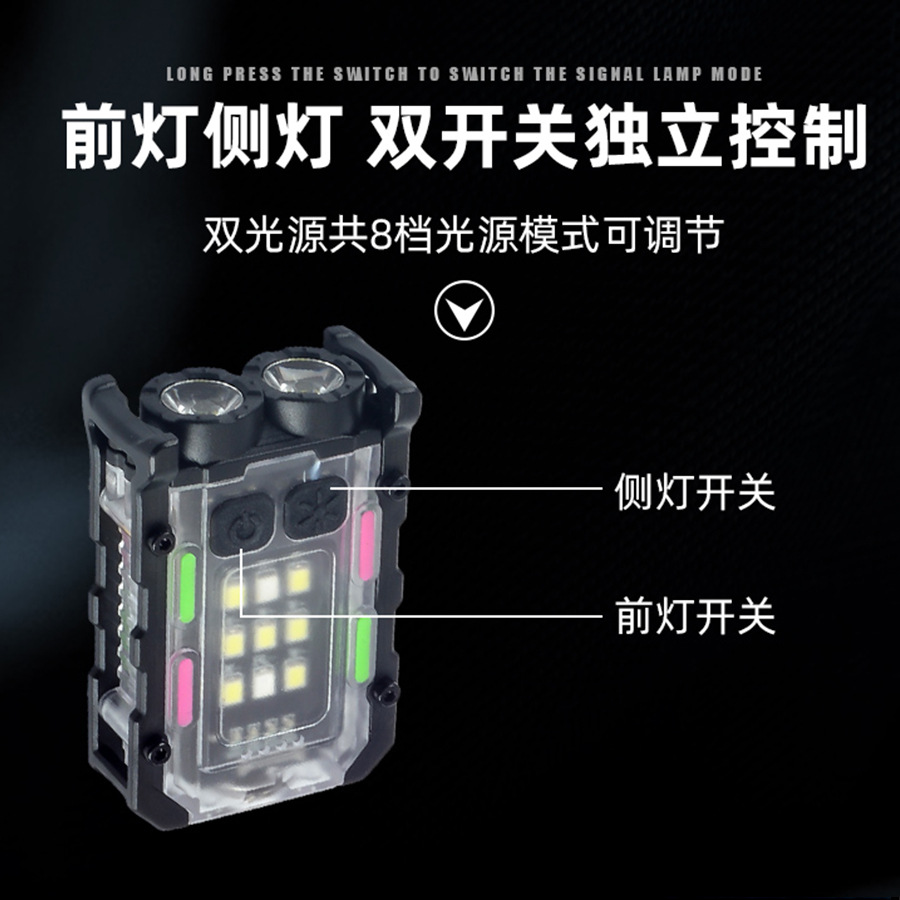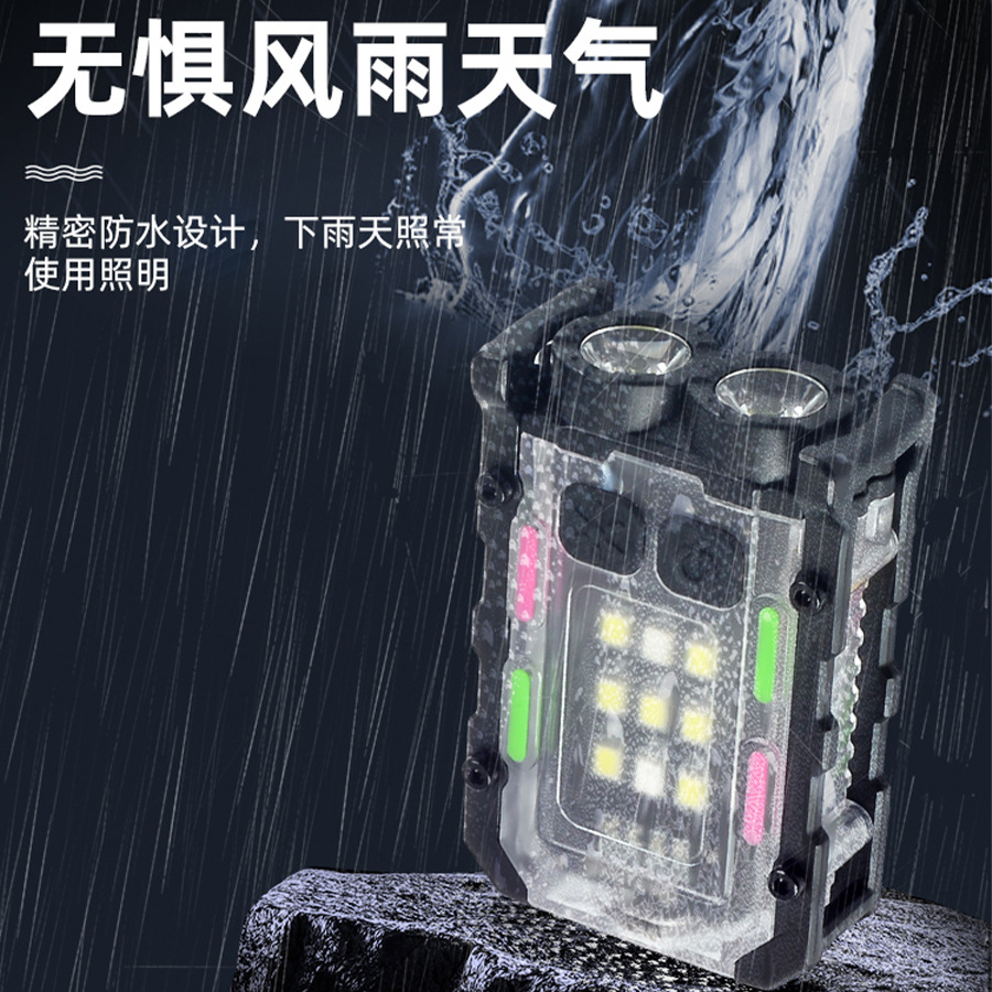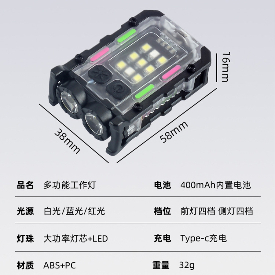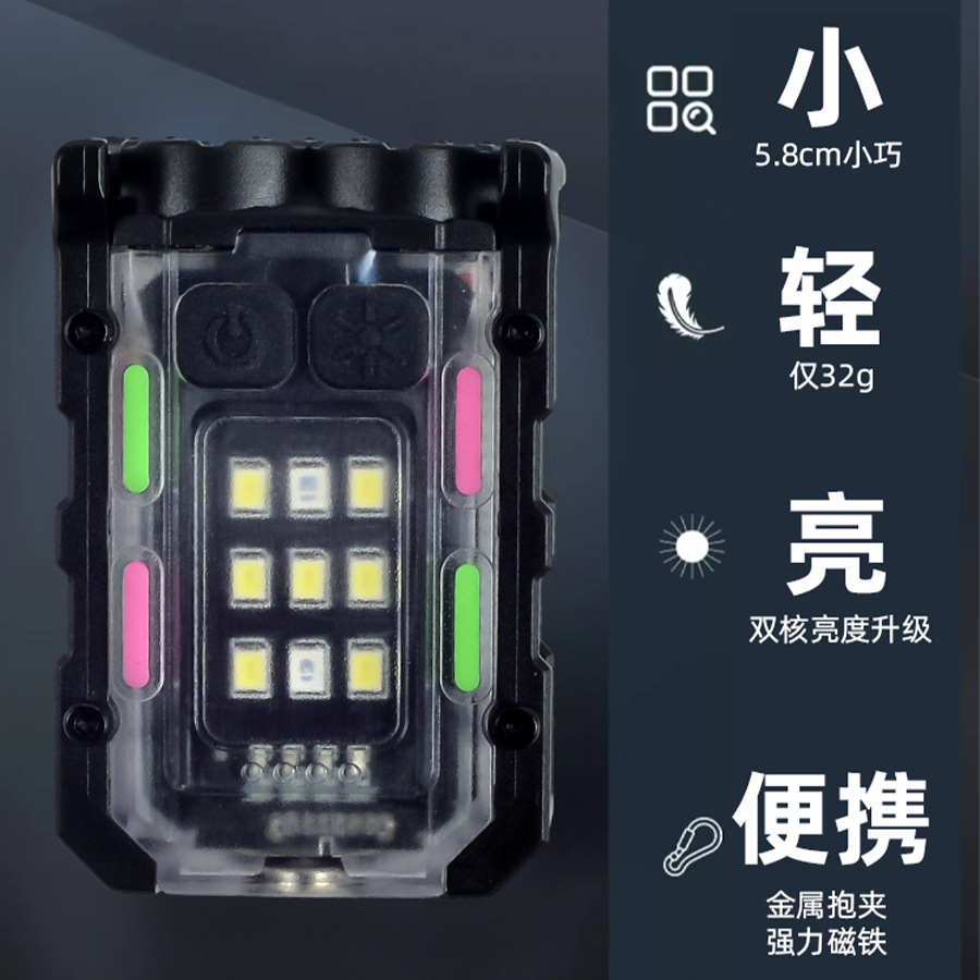 국경 간 키 체인 빛 야외 이중 광원 강한 빛 미니 손전등 모자 클립 빛 자기 방어 작업 빨간색과 파란색 경고등