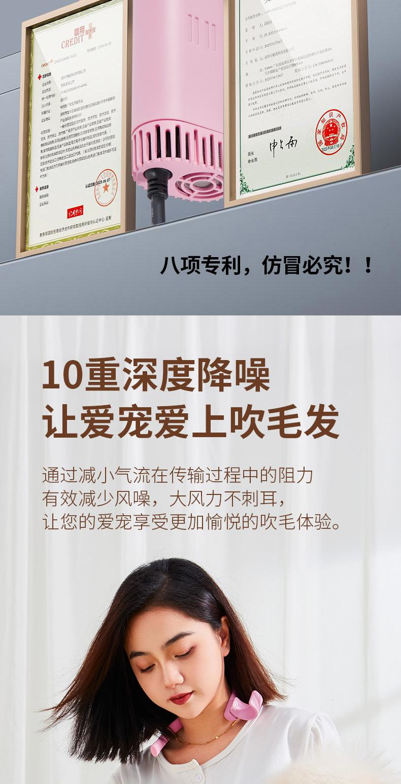 Xiaoshishi 애완 동물 미용 헤어 드라이어 깊은 소음 감소 이중 속도 강풍 교수형 목 개와 고양이 헤어 드라이어스토어 가기