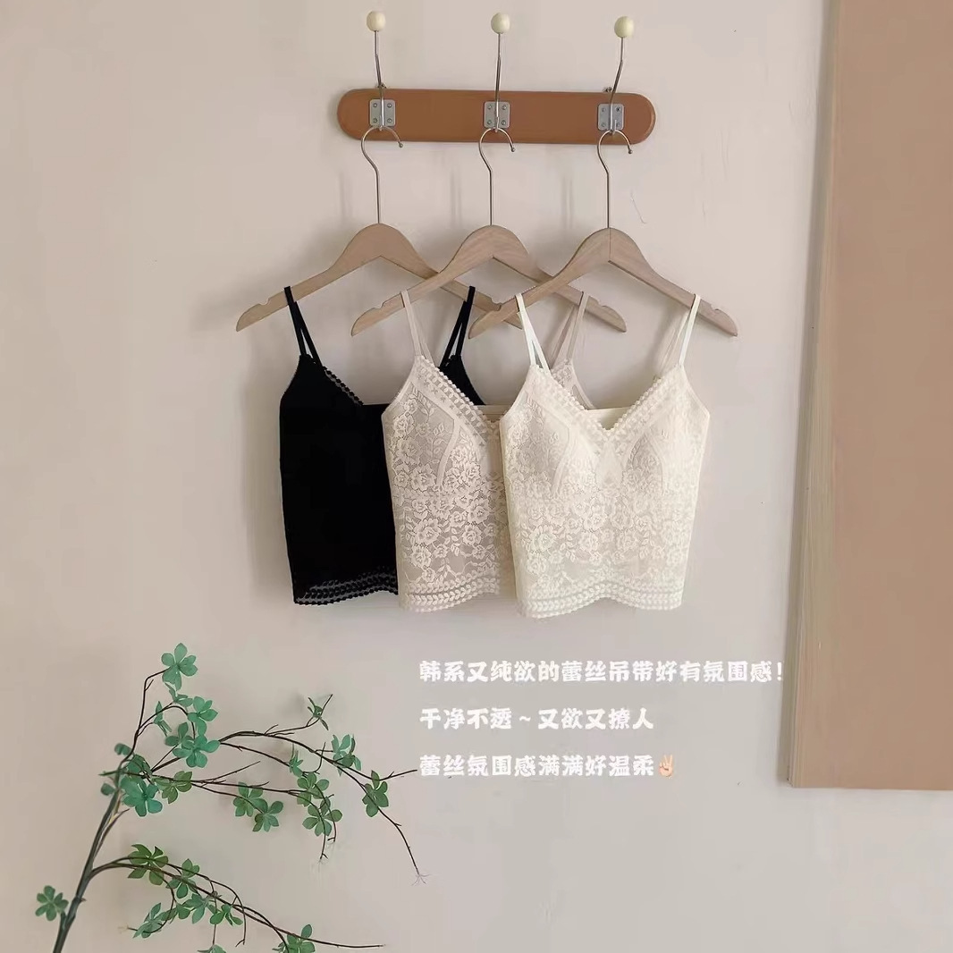여름 인기 프렌치 레이스 속옷 브이넥 섹시 심리스 아름다운 백 조끼 외부에 착용할 수 있는 가슴 패드가 있는 올인원 조끼스토어 가기