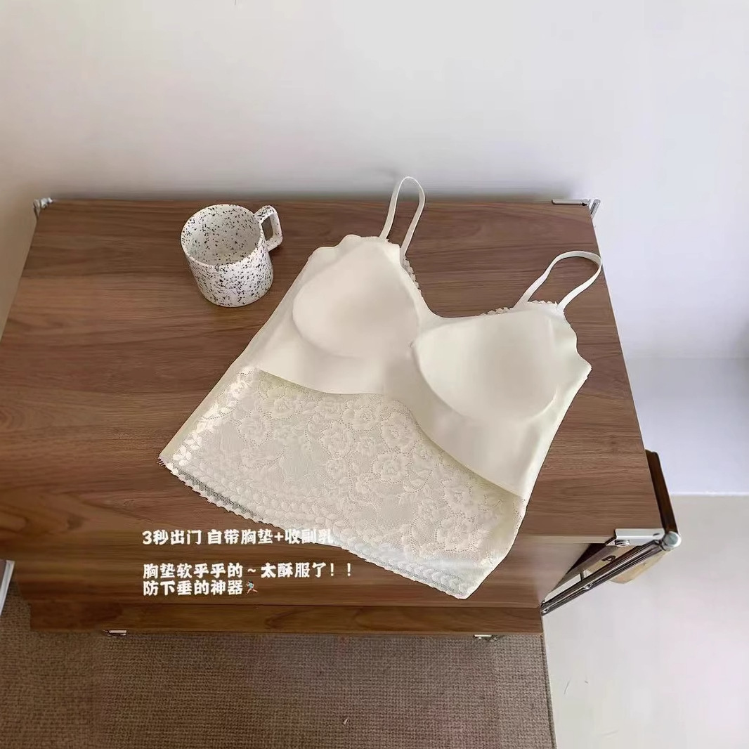 여름 인기 프렌치 레이스 속옷 브이넥 섹시 심리스 아름다운 백 조끼 외부에 착용할 수 있는 가슴 패드가 있는 올인원 조끼