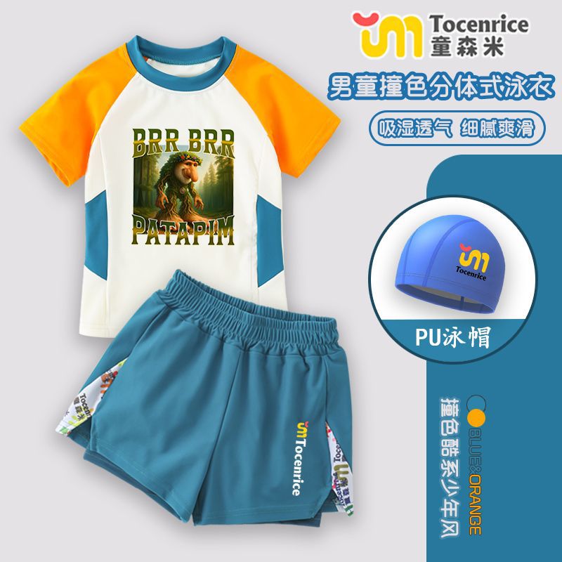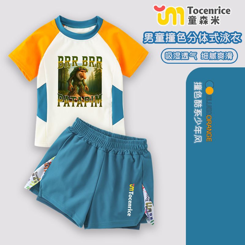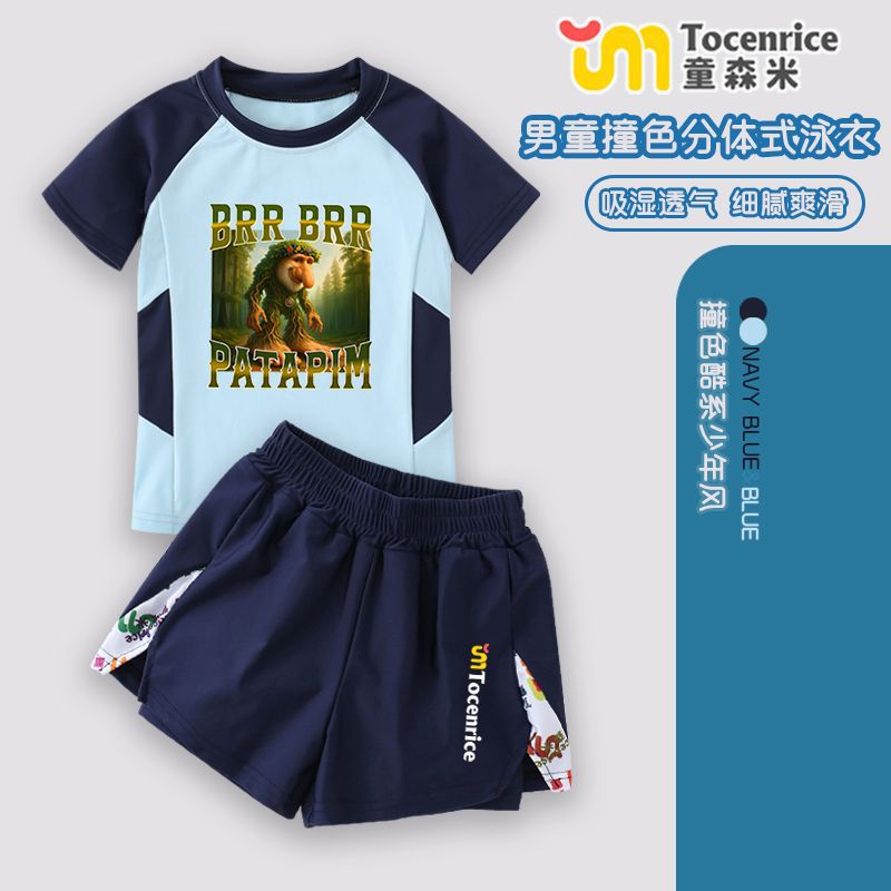 새로운 Tungtungsahur Tongtong 나무 막대기 Ren Shan Hai Jing 어린이 수영복 스플릿 소년 수영복 세트 유행