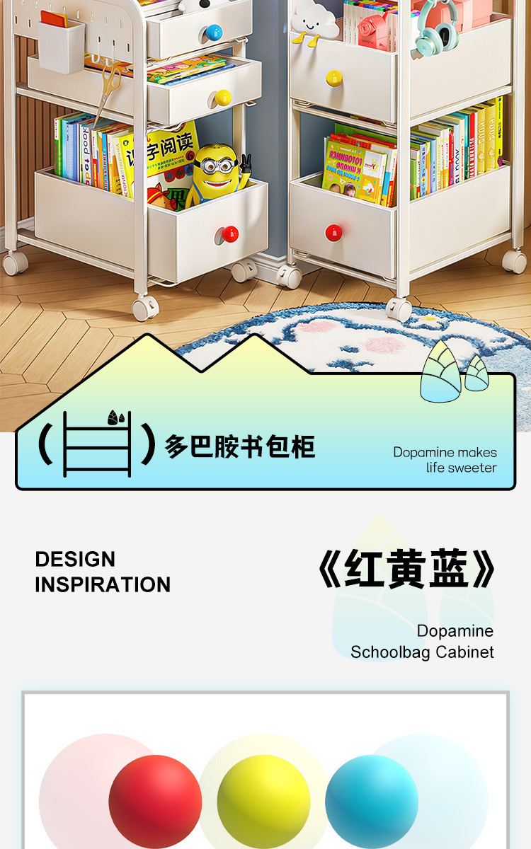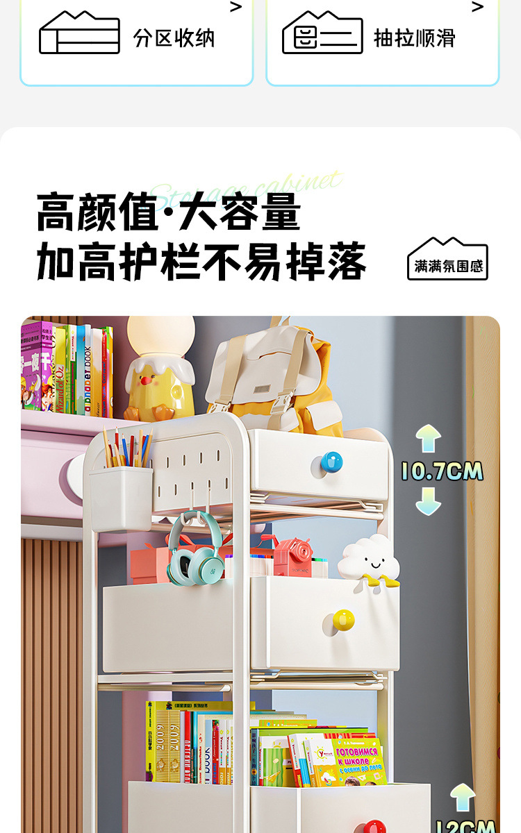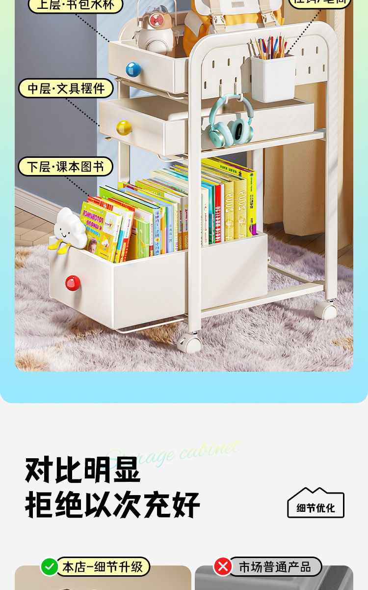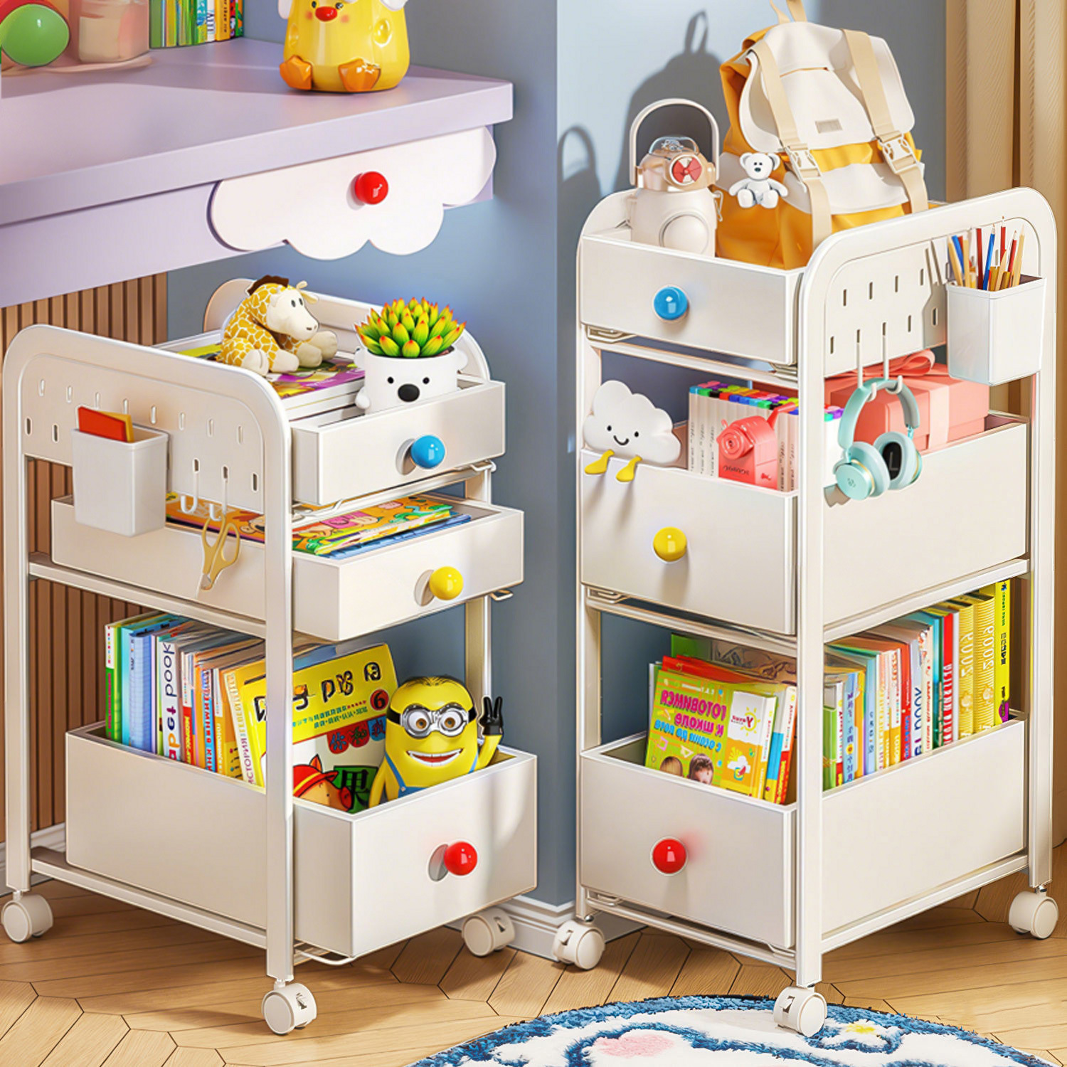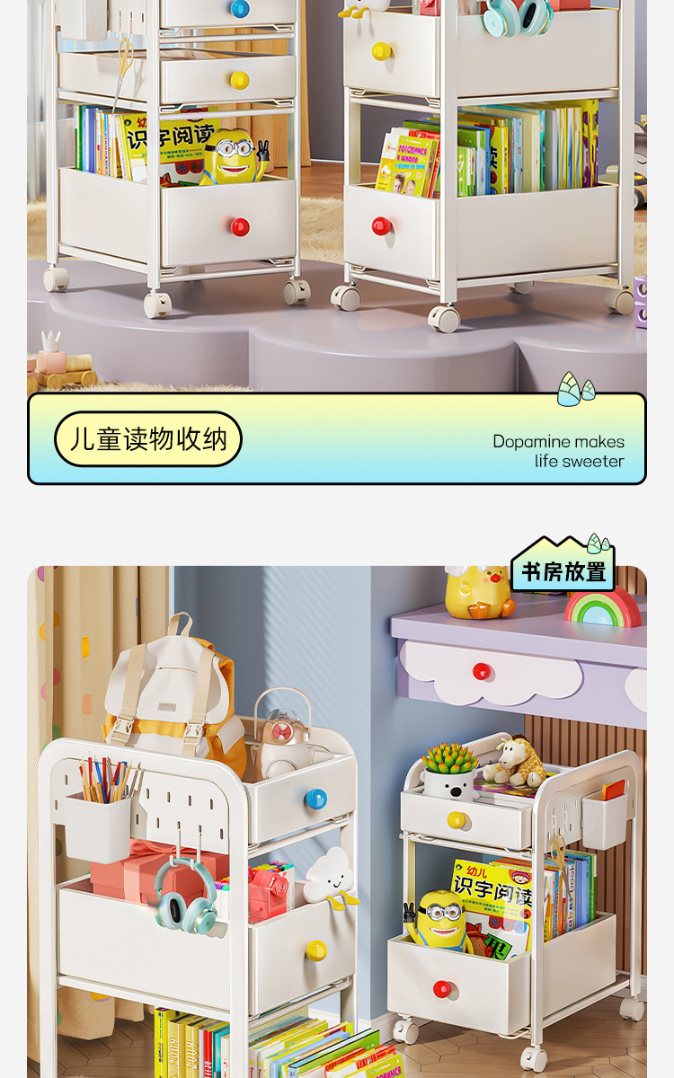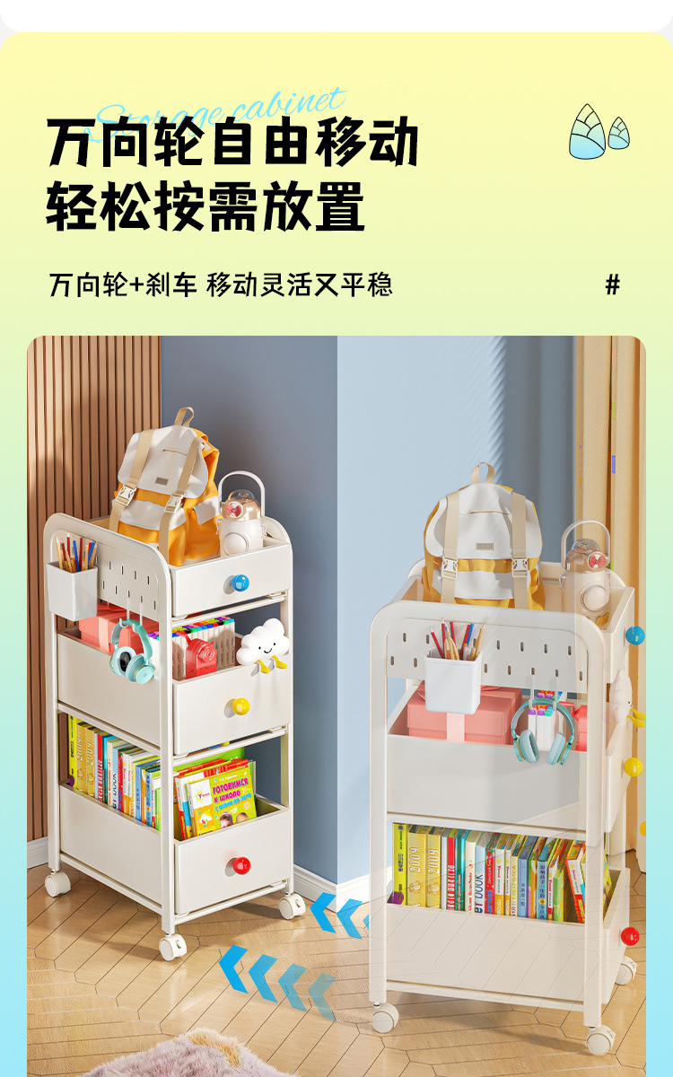 책가방 수납 선반 다층 가정용 바닥형 어린이 학생 책상 이동식 책장 바퀴 달린 수납장스토어 가기