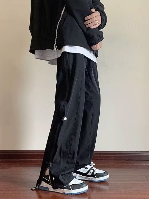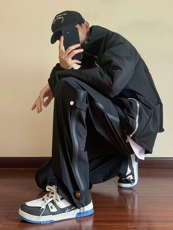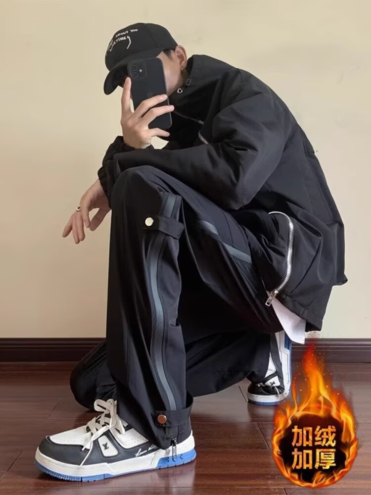 남성용 기모 안감 아메리칸 스타일 팬츠, 사이드 지퍼 디자인, 워크웨어 캐주얼 바지, 아웃도어 하이킹 등산 스포츠 바지스토어 가기