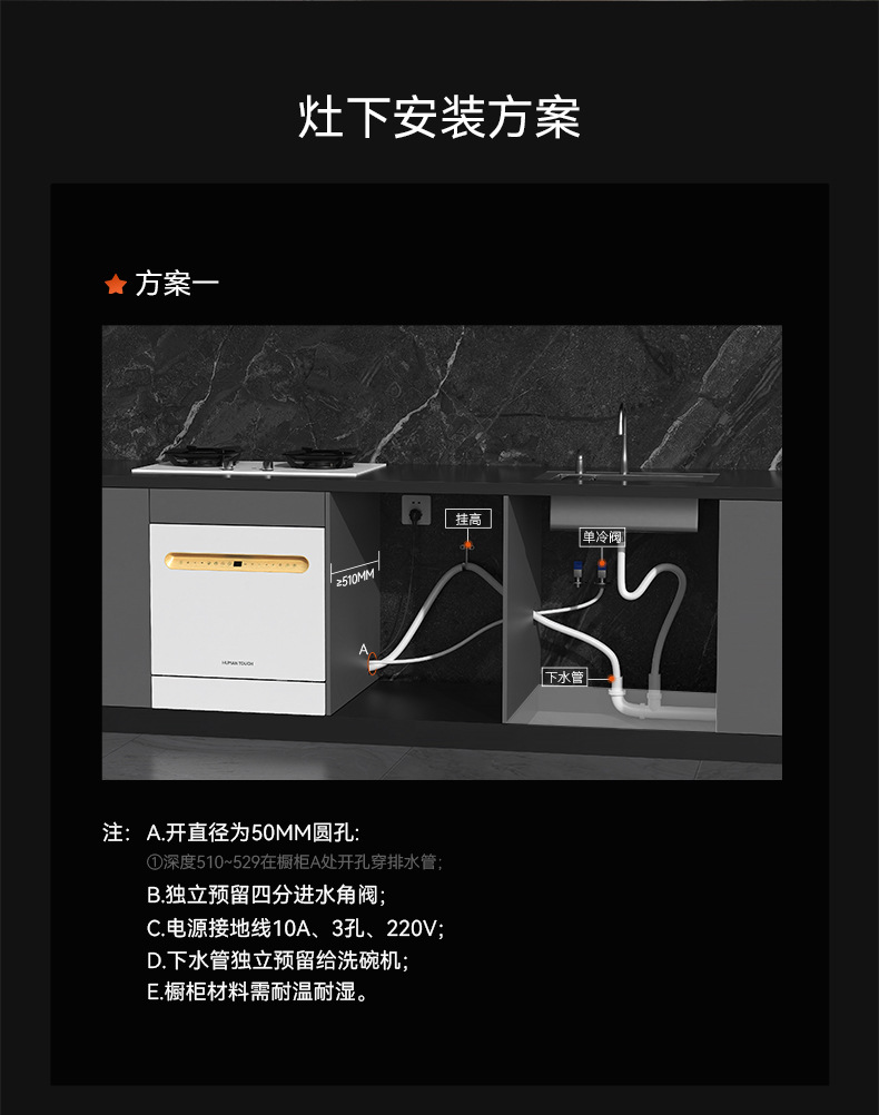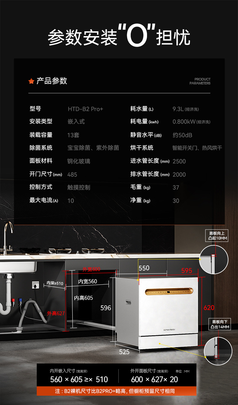 정부 보조금‖Huiman 식기 세척기 완전 자동 가정용 내장형 소독 캐비닛 가전 제품 Tianyu B2 스토브 아래 흰색