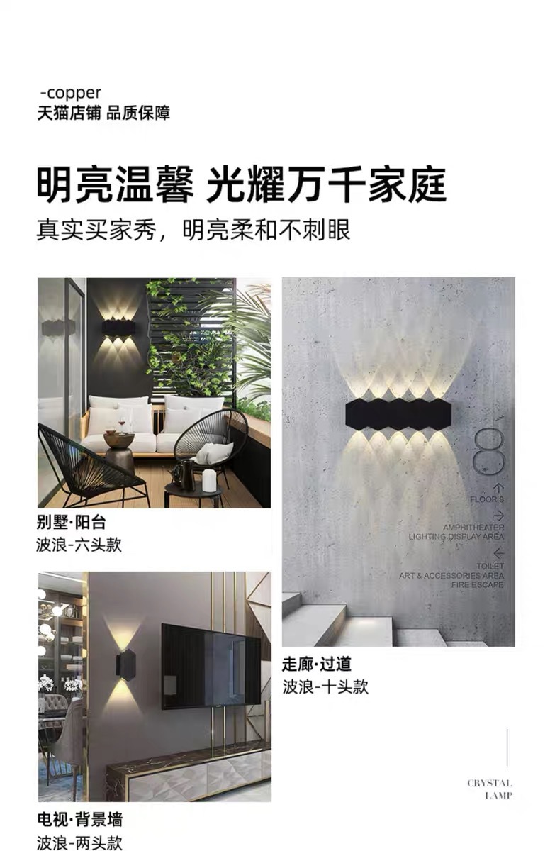 LED 방수 벽 램프, 현대적이고 단순한 거실 TV 배경 벽 계단 통로 실내 위아래 조명을 위한 국경 간 전문 공급스토어 가기