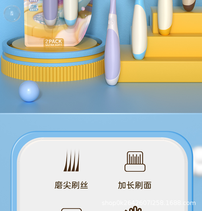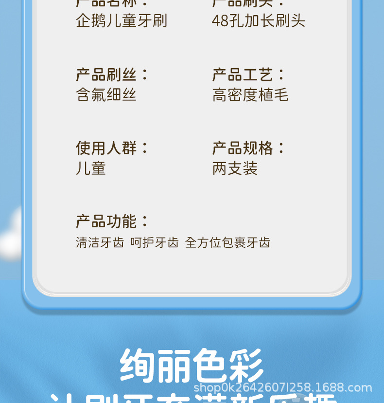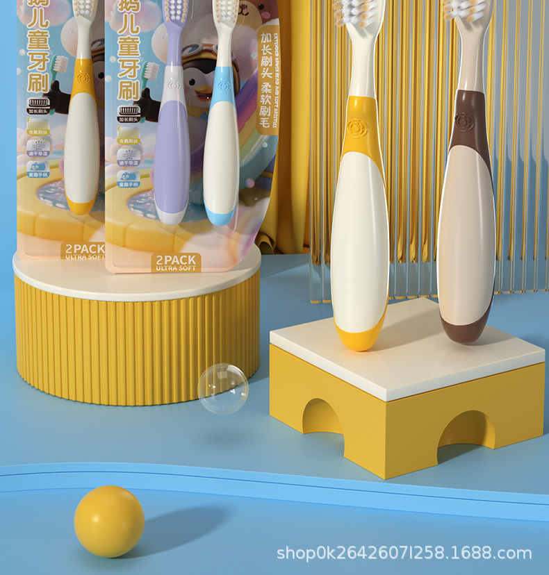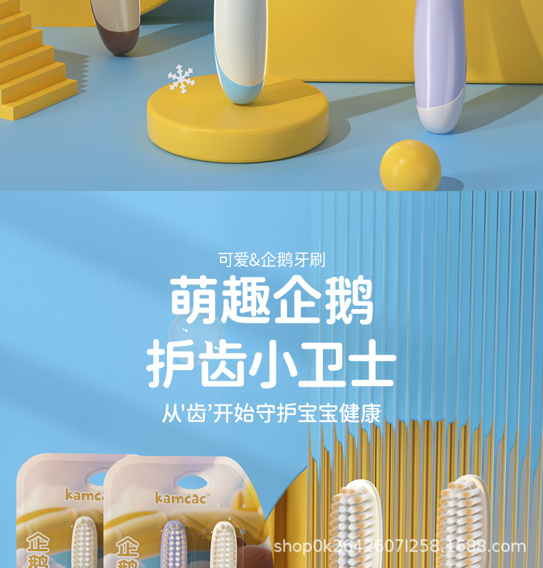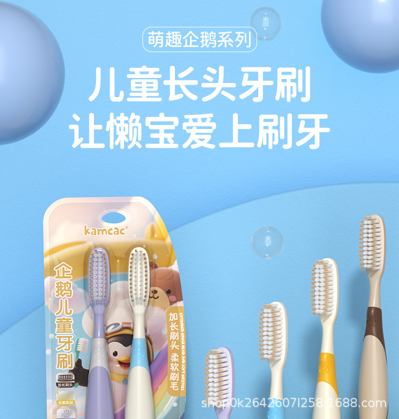 KAMCAC [어린이용 롱헤드 칫솔] 귀여운 펭귄 3~12세 부드러운 칫솔로 아기를 효율적으로 깨끗하게 해줍니다.스토어 가기