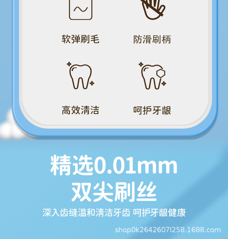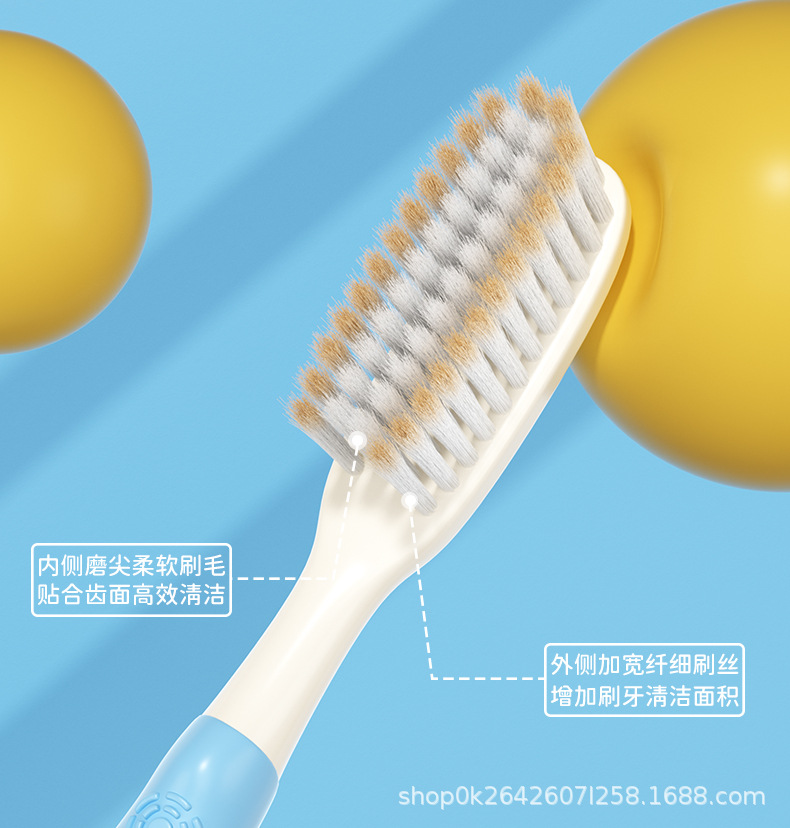 KAMCAC [어린이용 롱헤드 칫솔] 귀여운 펭귄 3~12세 부드러운 칫솔로 아기를 효율적으로 깨끗하게 해줍니다.