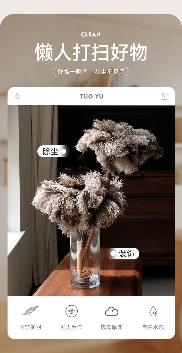 정전기 방지 타조 먼지떨이, 가정용 먼지 제거, 정전기 방지 자동차 청소 유물, 먼지 청소, 두꺼운 닭털, Jask