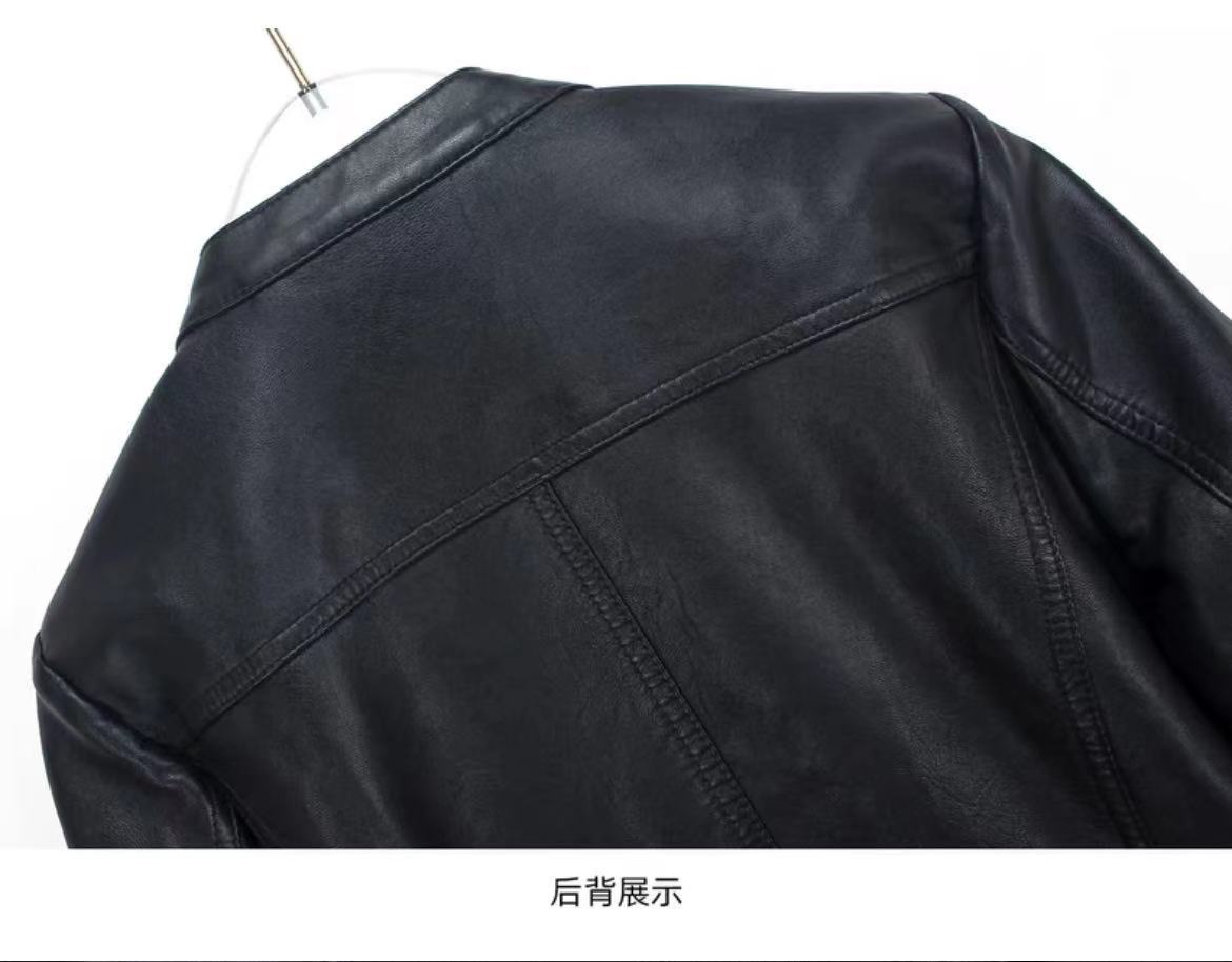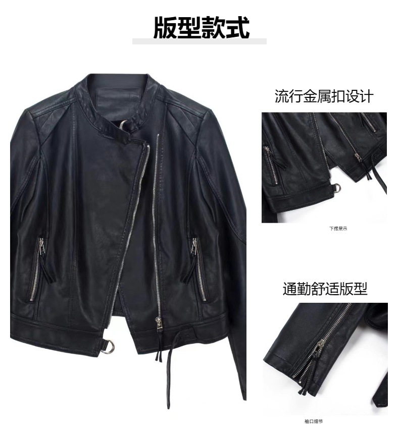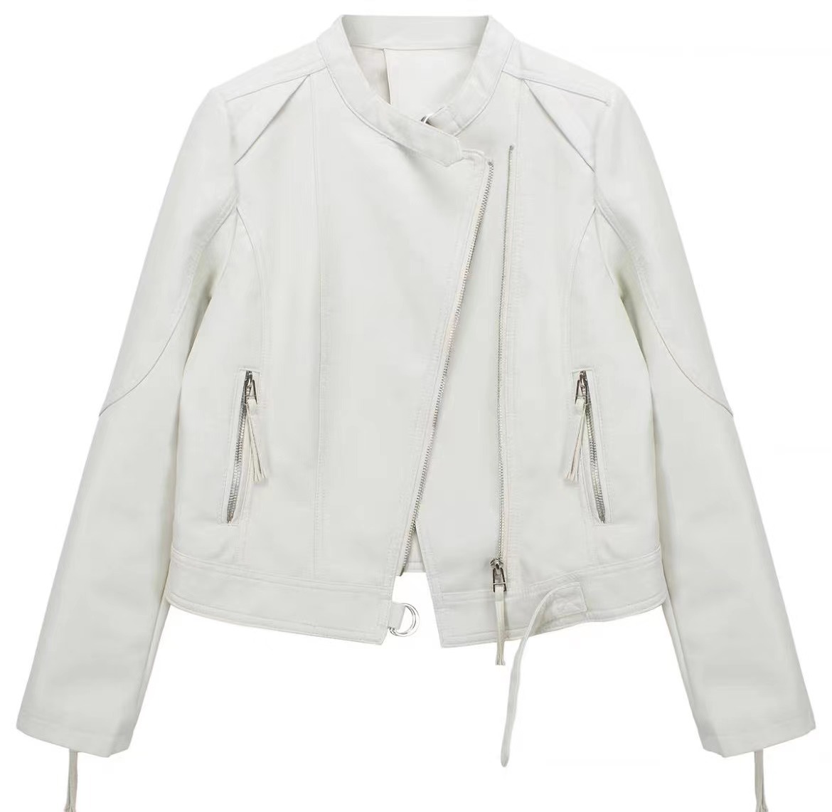 봄 의류 2023 새로운 스탠드 칼라 짧은 PU 가죽 자켓 여성용 금속 버클 한국 스타일 오토바이 슬림 가죽 자켓스토어 가기