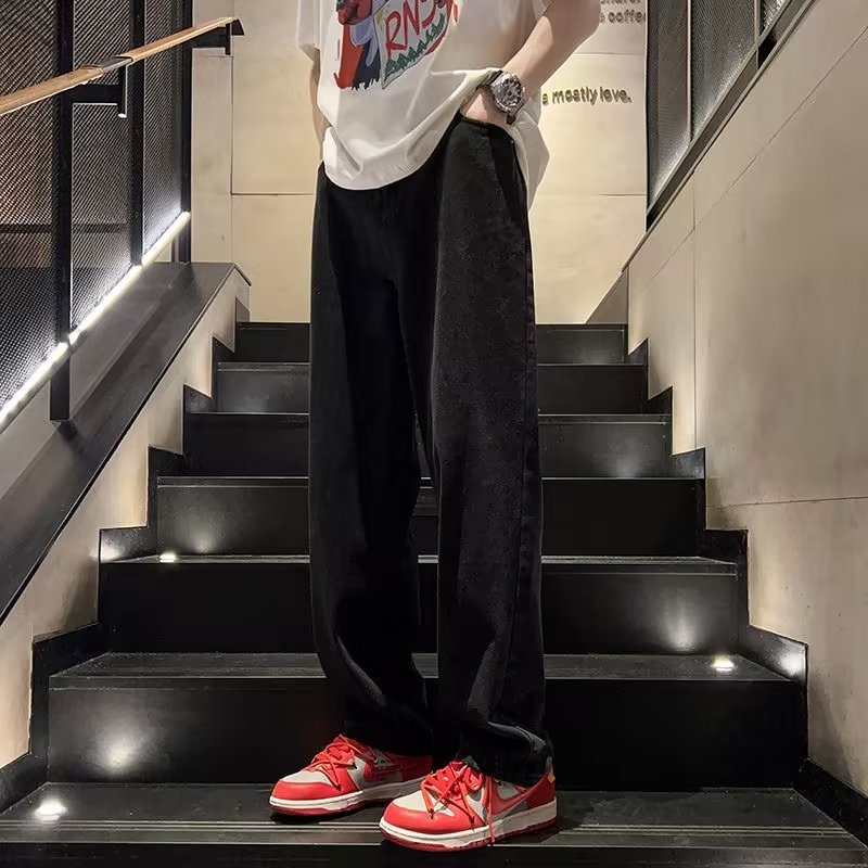 블랙 그레이 청바지 남성 봄 홍콩 스타일 클린핏 루즈 와이드 팬츠 트렌디 브랜드 레트로 캐주얼 롱 팬츠스토어 가기
