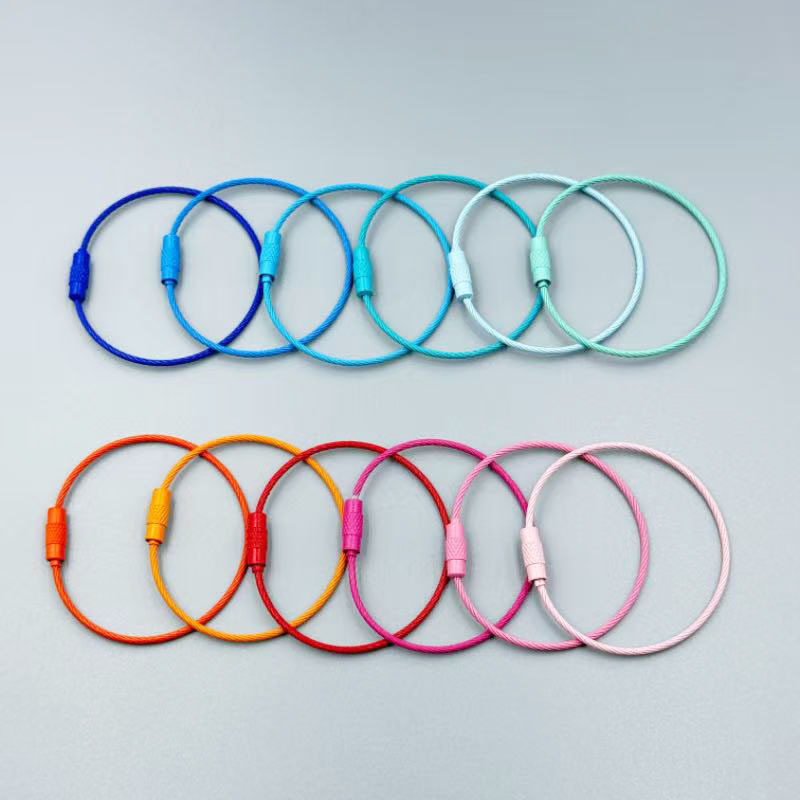 공장 직영 컬러 페인트 강철 와이어 로프 열쇠고리 캔디 컬러 키체인 수제 장식 액세서리 수하물 태그