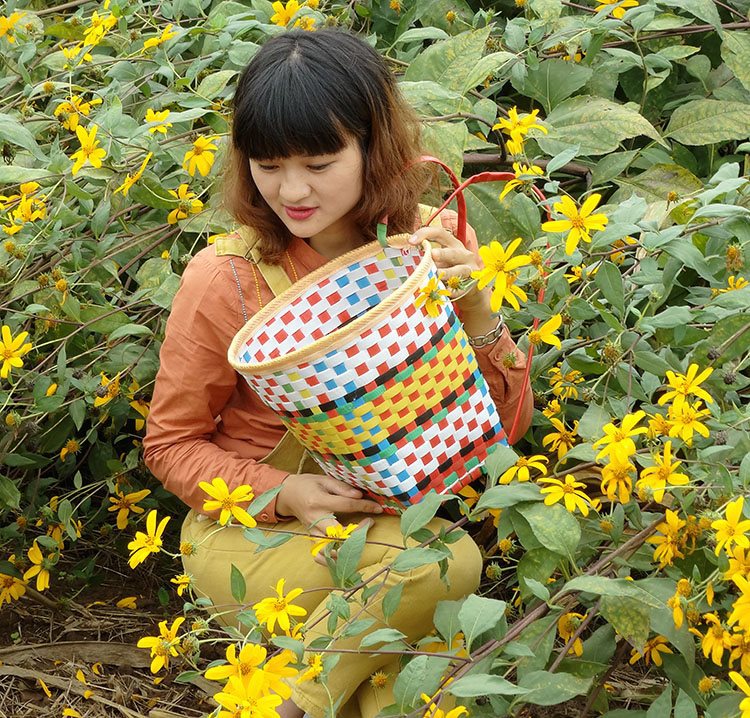어린이용 작은 바구니, 플라스틱 민족 스타일 등받이, 어린이용 아기 바구니, 댄스 소품, 꽃으로 짠 등받이, Zhao Zhiwu