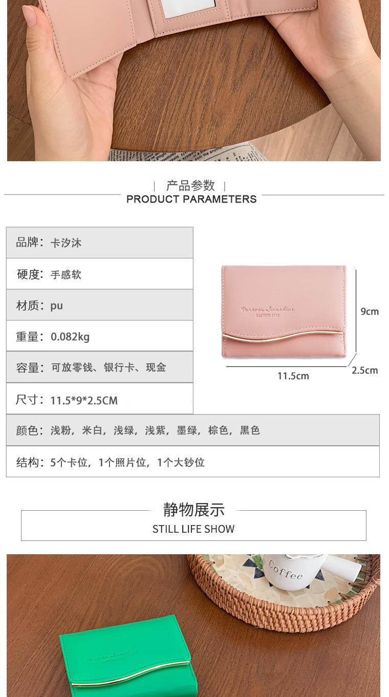 Ins 한국식 여성용 지갑 짧은 아크 하드웨어 멀티 카드 카드 가방 지퍼 동전 지갑 대외 무역 다기능스토어 가기