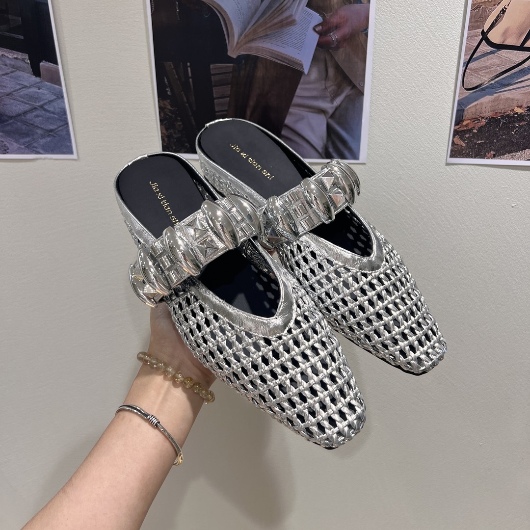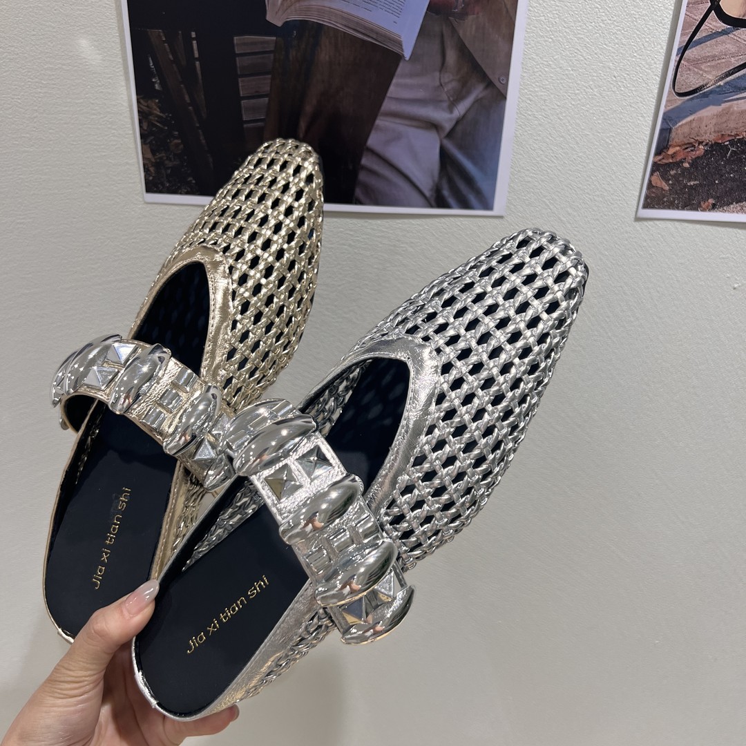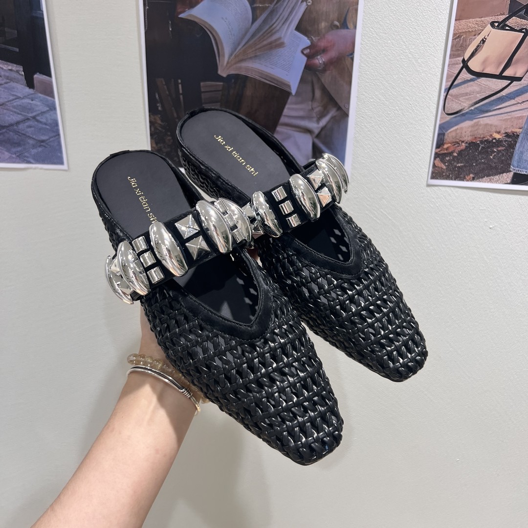 여성을위한 짠 중공 발가락 반 슬리퍼 여름 2025 새로운 스타일 내부 높이 증가 슬립 온 샌들
