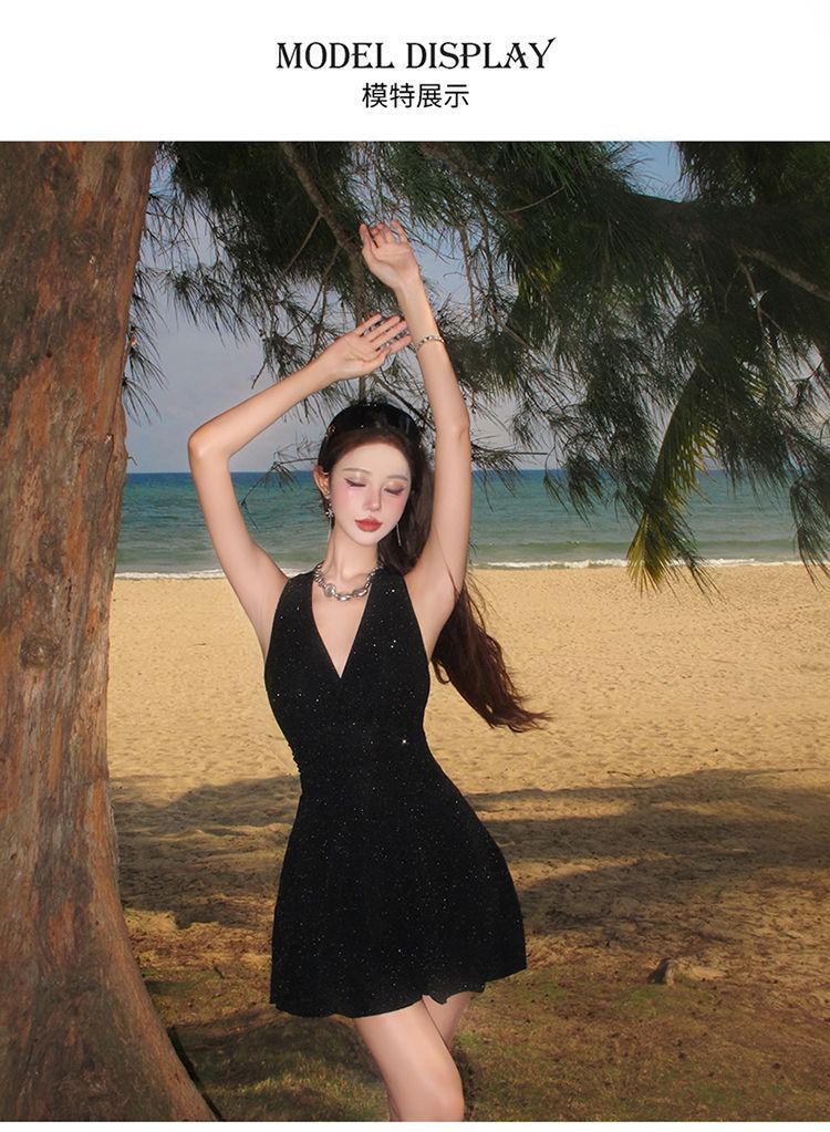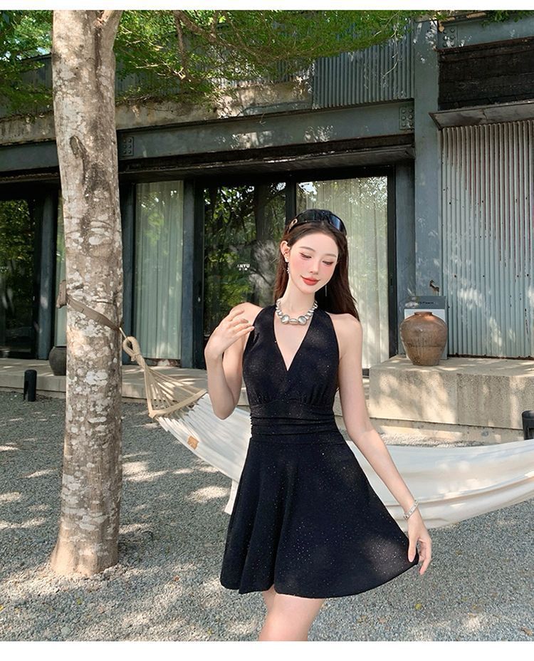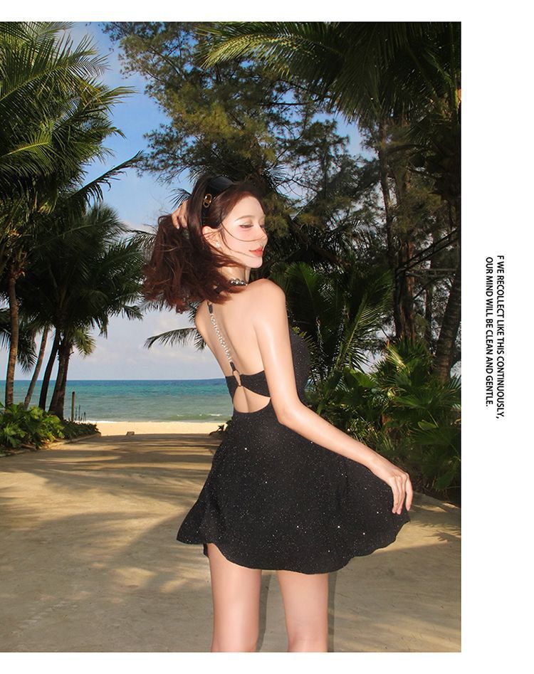 블랙 파인 플래시 패브릭 하이 엔드 센스 바디 스커트 섹시한 수영복 여성 살포 커버 슬리밍 아름다운 뒤 온천 휴가