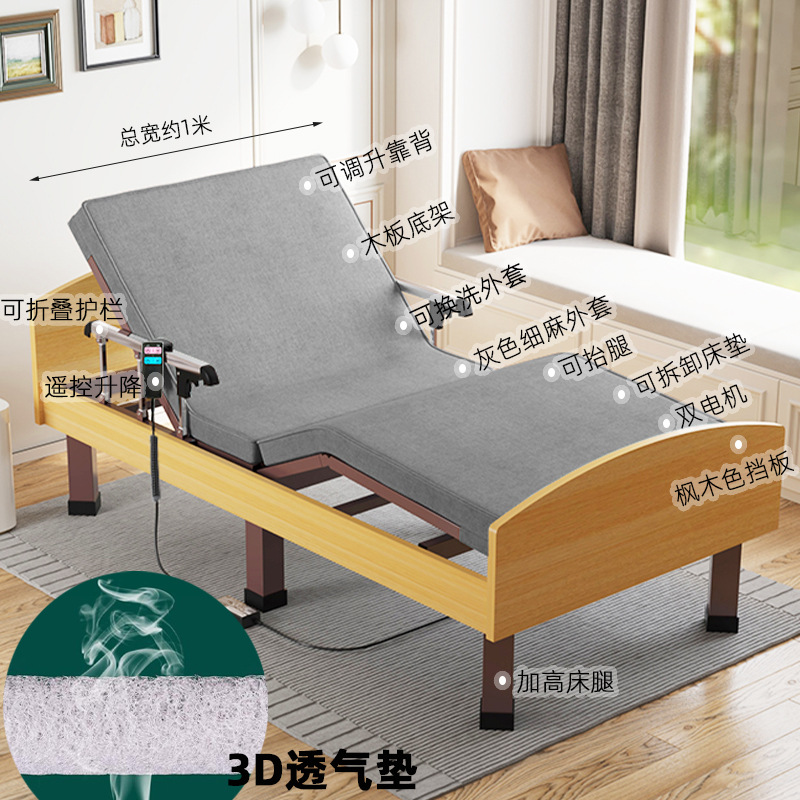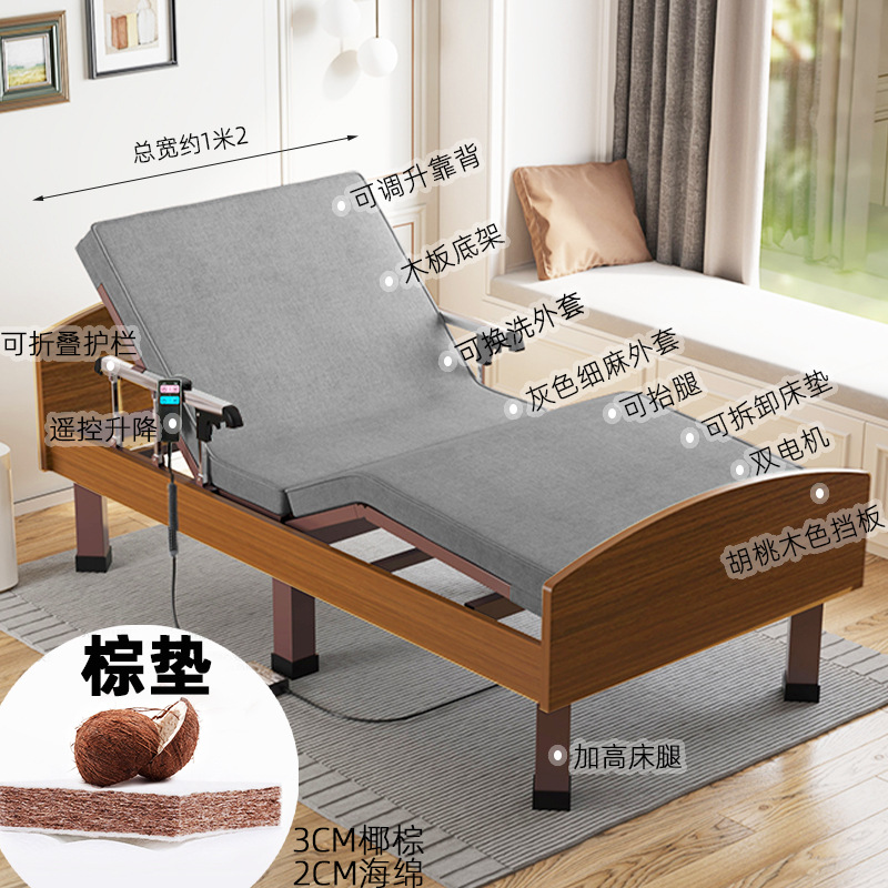 가정용 노인 전기 침대 간호 침대 다기능 노인 침대 재활 단단한 나무 침대 원격 제어 지능형 리프팅 침대스토어 가기