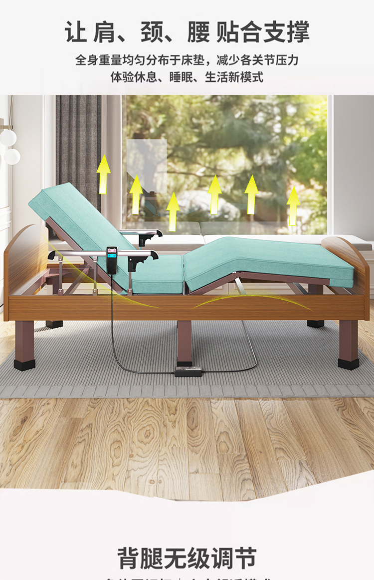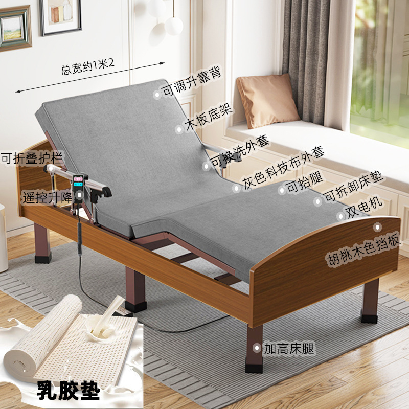 가정용 노인 전기 침대 간호 침대 다기능 노인 침대 재활 단단한 나무 침대 원격 제어 지능형 리프팅 침대
