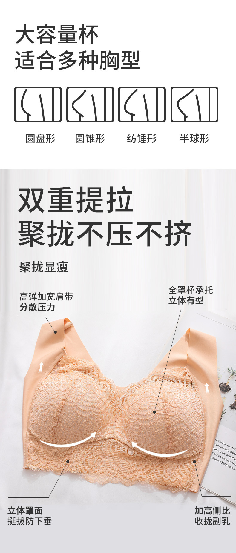 대외 무역 대형 속옷, 여성스러운 레이스 얇은 와이어 프리 조끼 스타일 플러스 사이즈 스포츠 수면 푸시업 브라