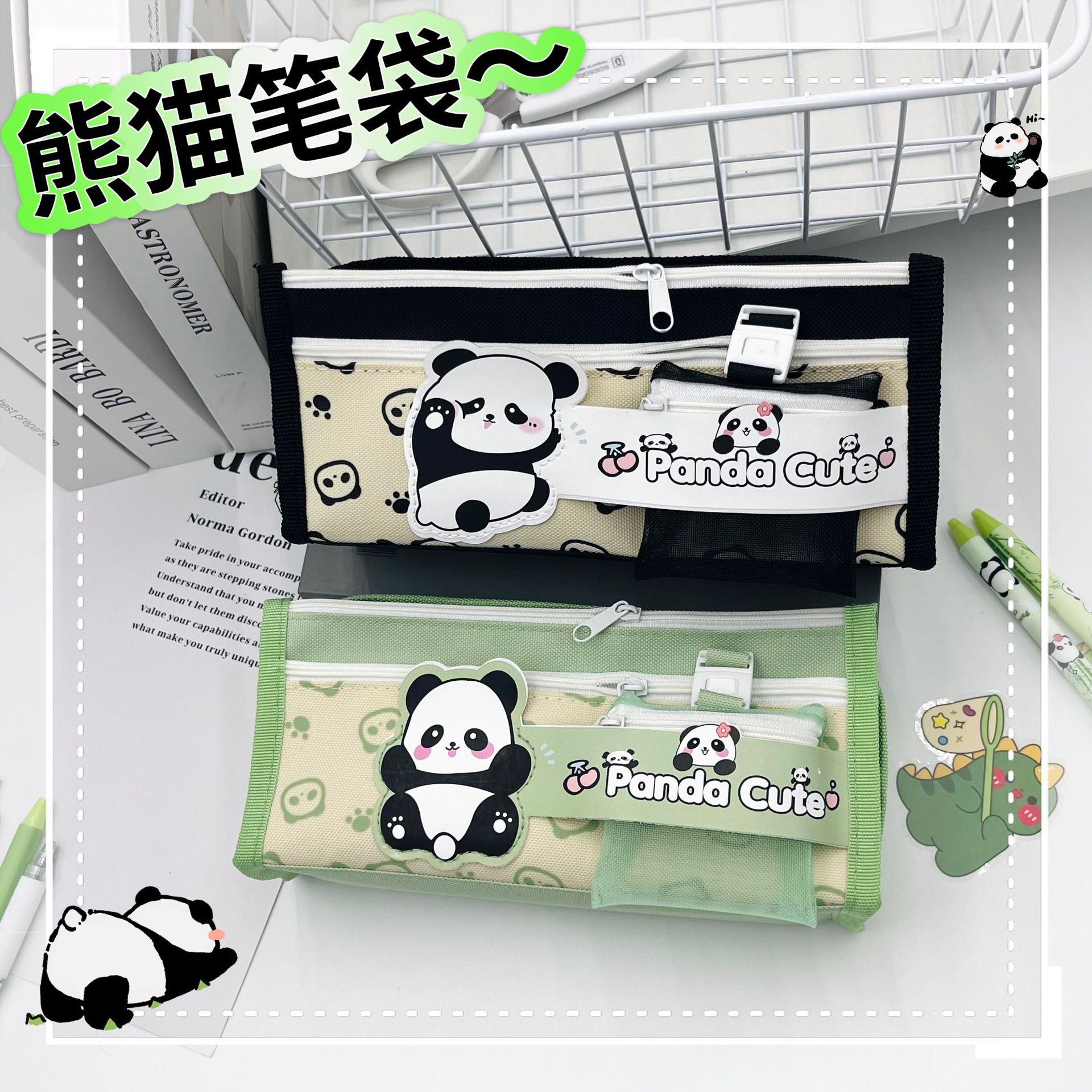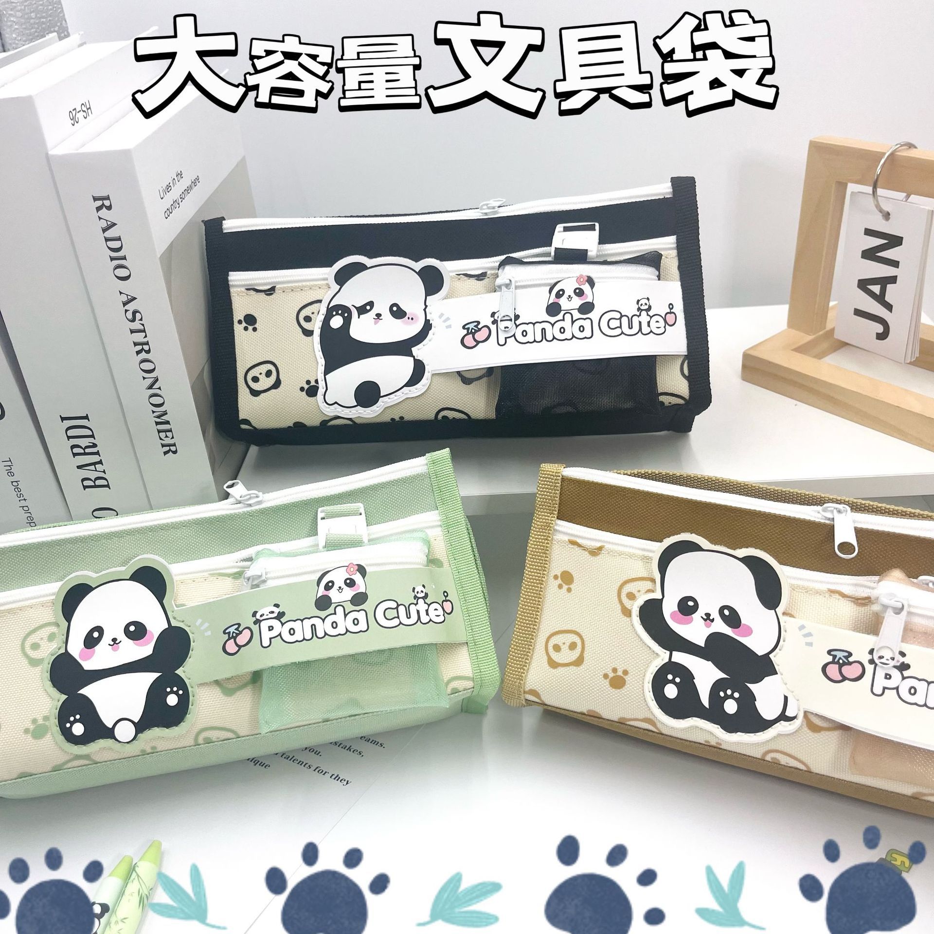 대용량 및 얼룩 방지 기능을 갖춘 팬더 문구 필통, 남아용 필통, 다층 분리형 문구 상자, 얼룩 방지 및 고급스러운 외관스토어 가기