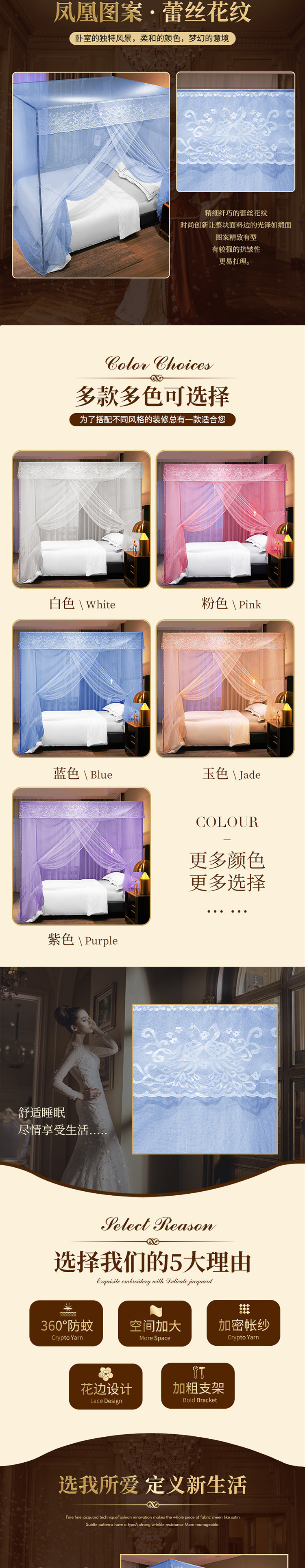 모기장 싱글 도어 가정용 암호화 두꺼운 구식 1.0m 브래킷 1.2 싱글 1.8 더블 침대 공주 스타일 1.5스토어 가기
