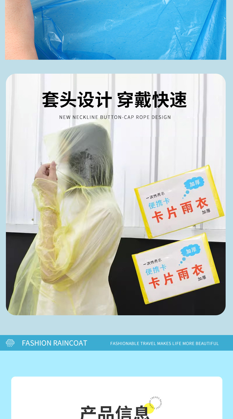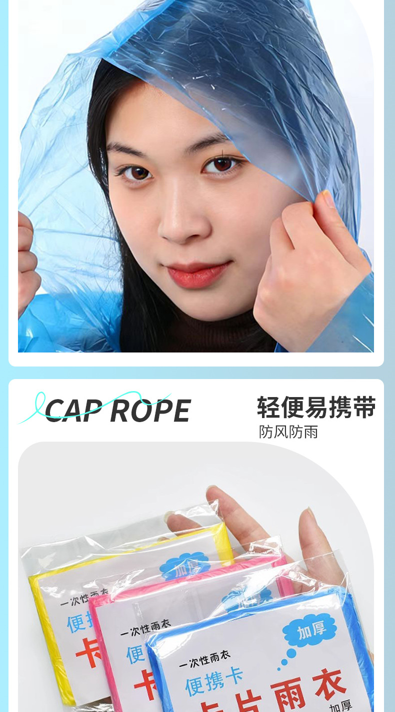카드형 폭우 방지 우비 일회용 압축형 어린이 성인 남녀 공용 긴형 휴대용 방수 레인코트 두꺼운 버전