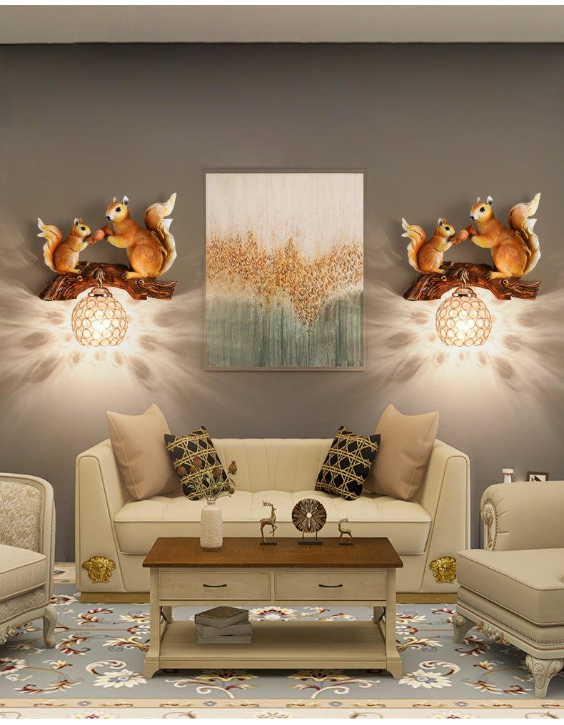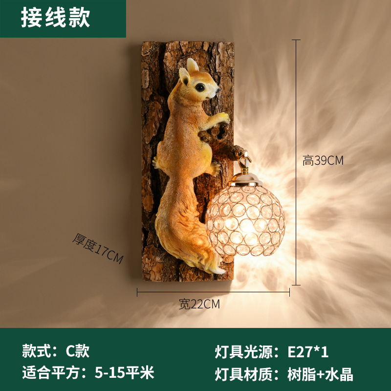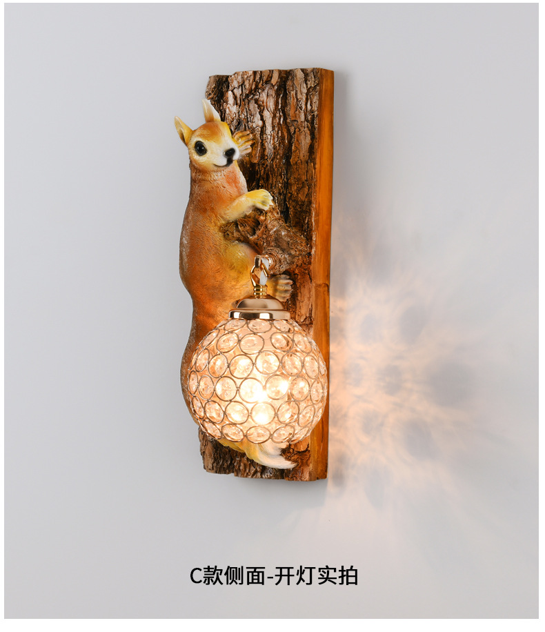 소년과 소녀를위한 창조적 인 어린이 벽 램프 침실 머리맡 거실 연구 미국 목가적 인 동물 장식 통로 램프스토어 가기