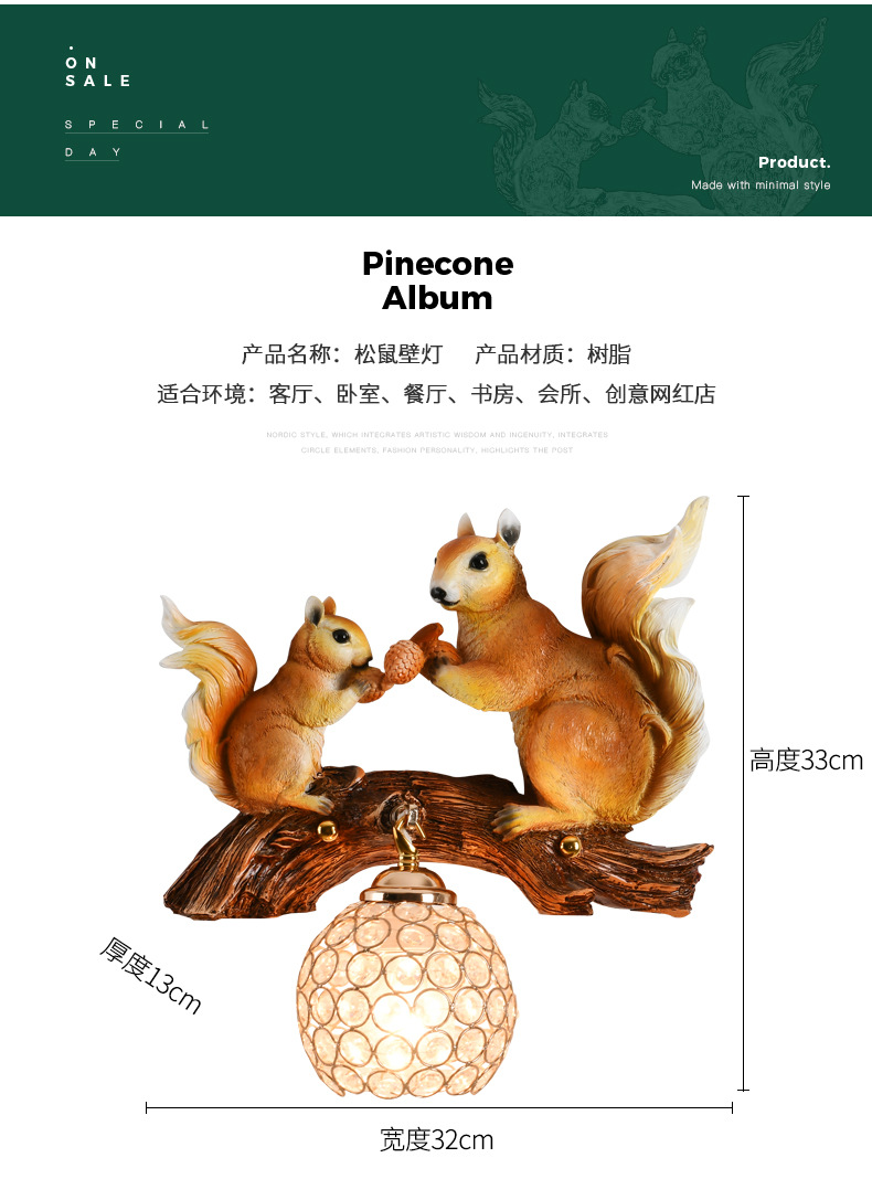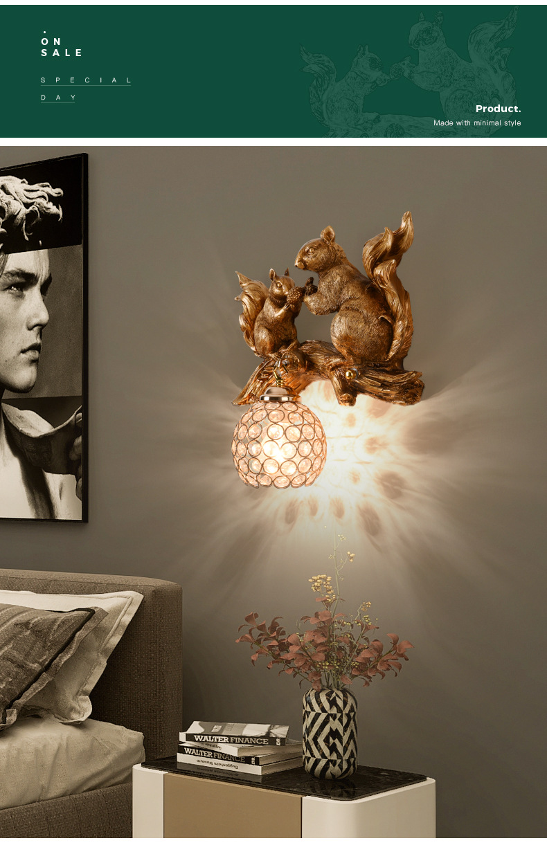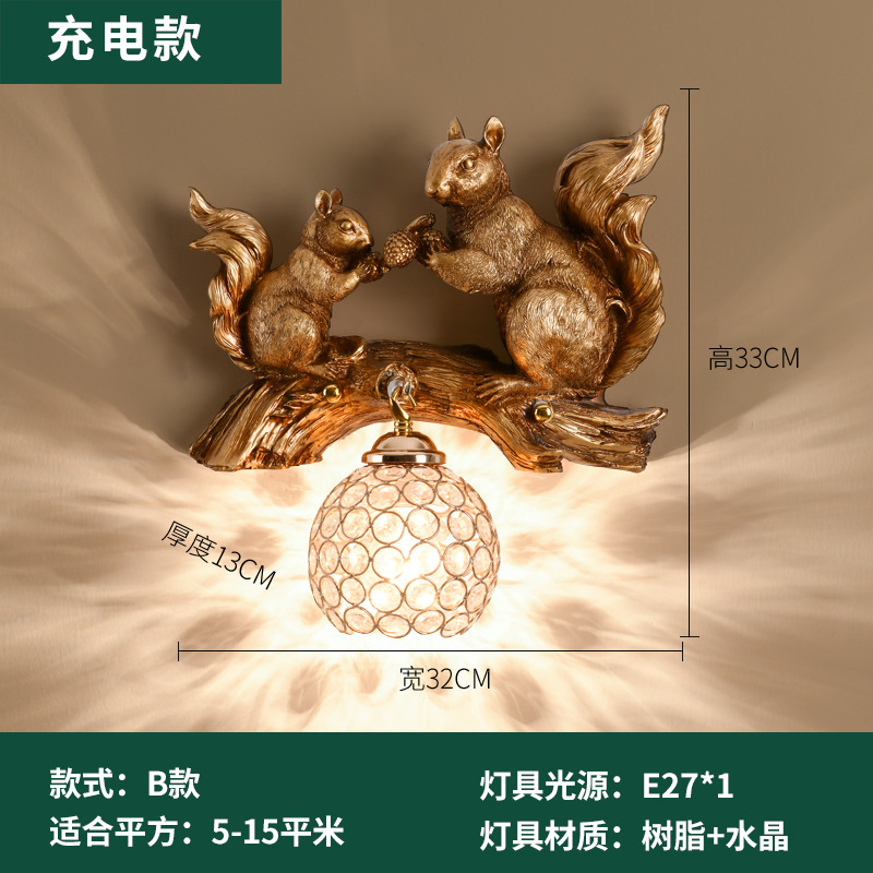 • 모델 B 다람쥐 벽 램프 골동품 금 충전식