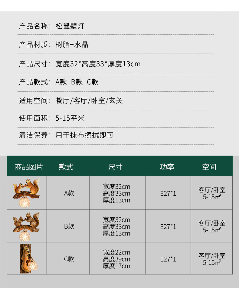 • 모델 A 다람쥐 벽 램프 풀 컬러 충전식