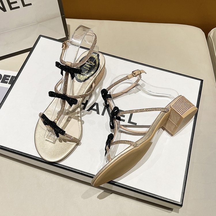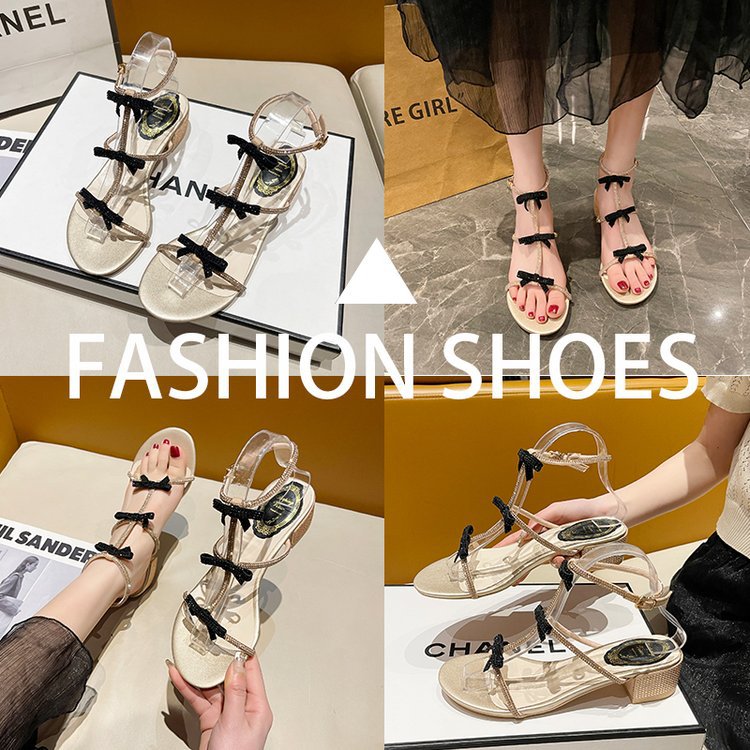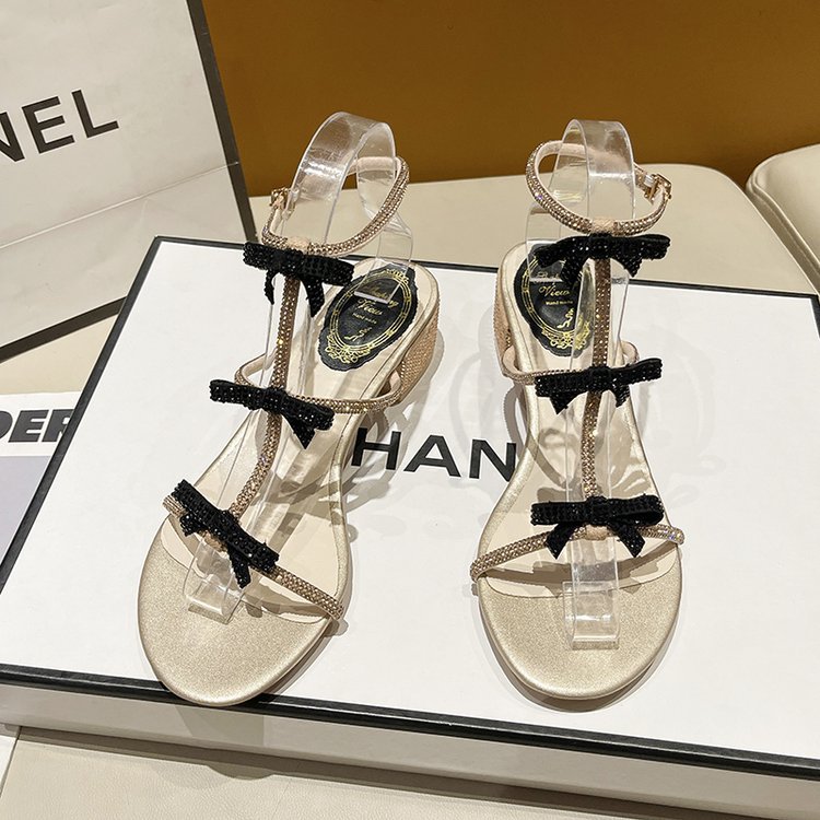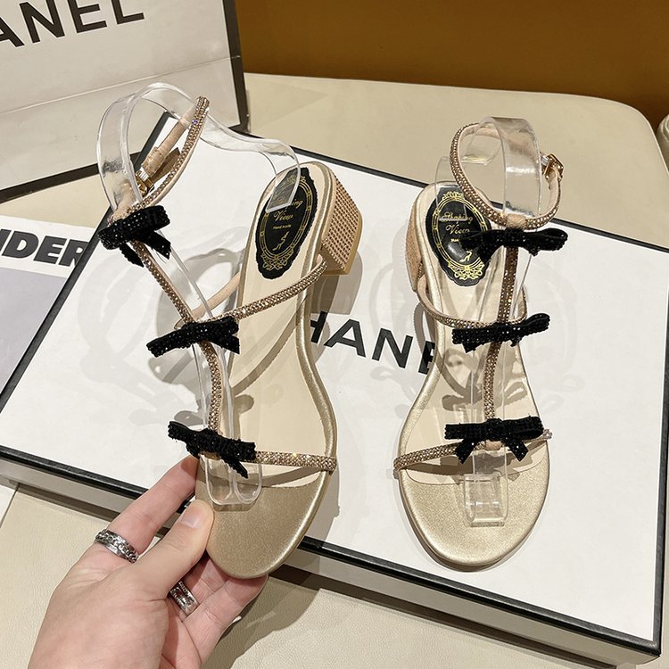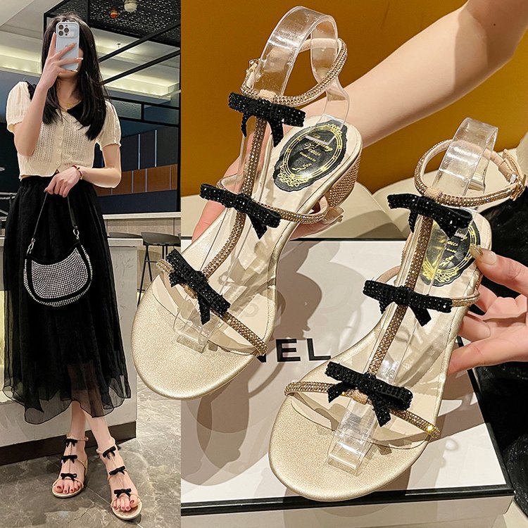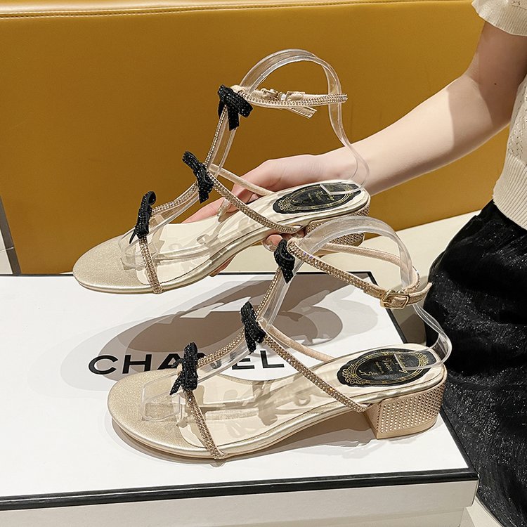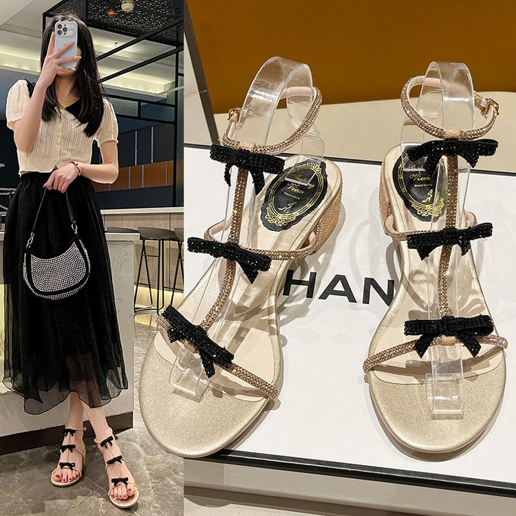 우아한 라인스톤 하이힐 2025 신상 여름 오픈토 패셔너블한 섹시한 순수한 욕망 다이아몬드 두꺼운 굽 샌들 여성용스토어 가기