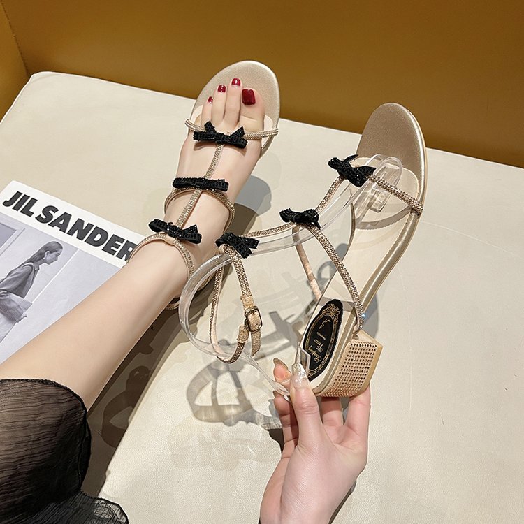 우아한 라인스톤 하이힐 2025 신상 여름 오픈토 패셔너블한 섹시한 순수한 욕망 다이아몬드 두꺼운 굽 샌들 여성용
