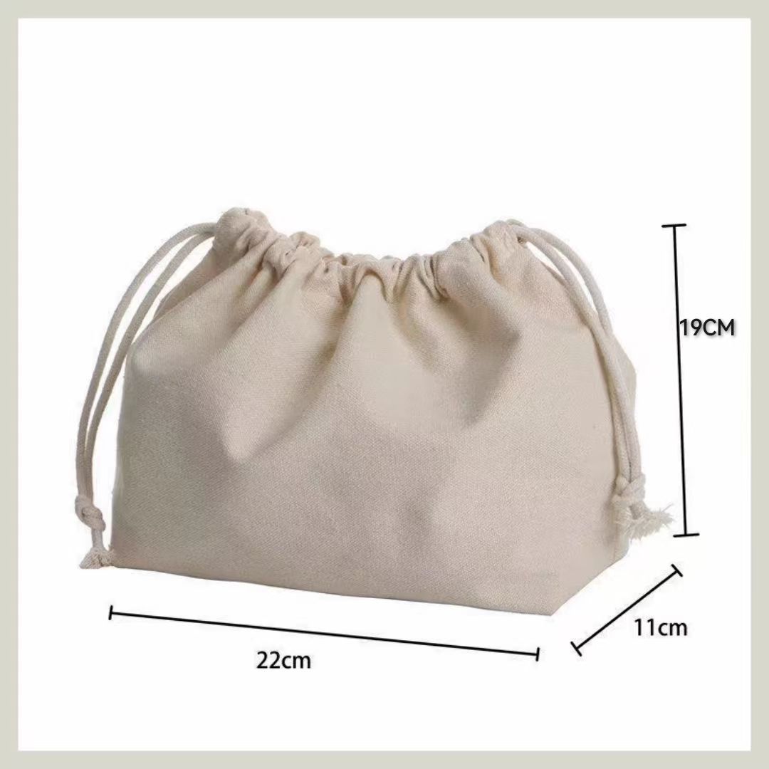 즉시 출고 가능한 도매용 조임끈 사각 바닥 주머니형 캔버스 수납 가방, 보관용 크로셰 가방, 내부에 뜨개질 가방이 들어있는 가방스토어 가기