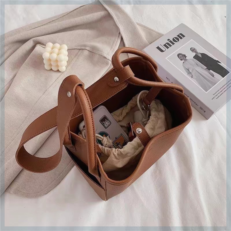 즉시 출고 가능한 도매용 조임끈 사각 바닥 주머니형 캔버스 수납 가방, 보관용 크로셰 가방, 내부에 뜨개질 가방이 들어있는 가방