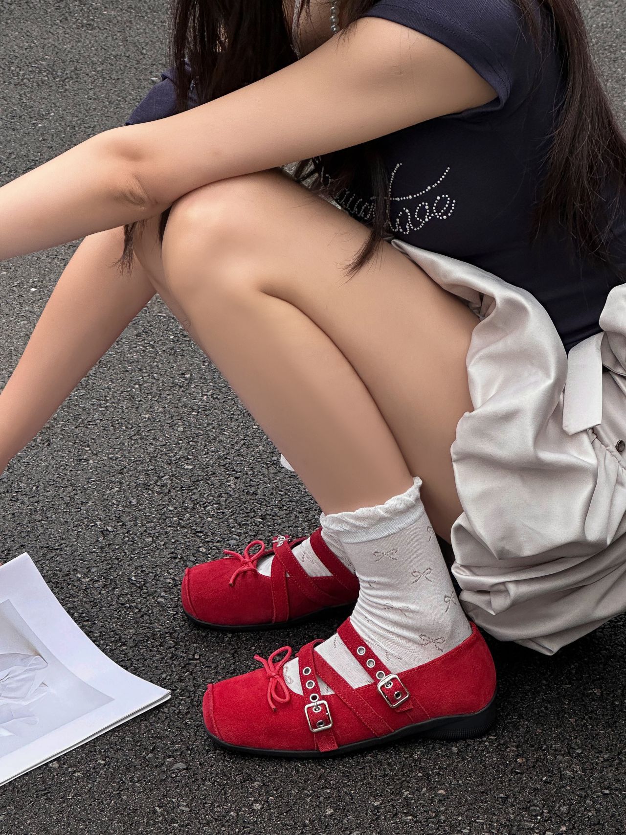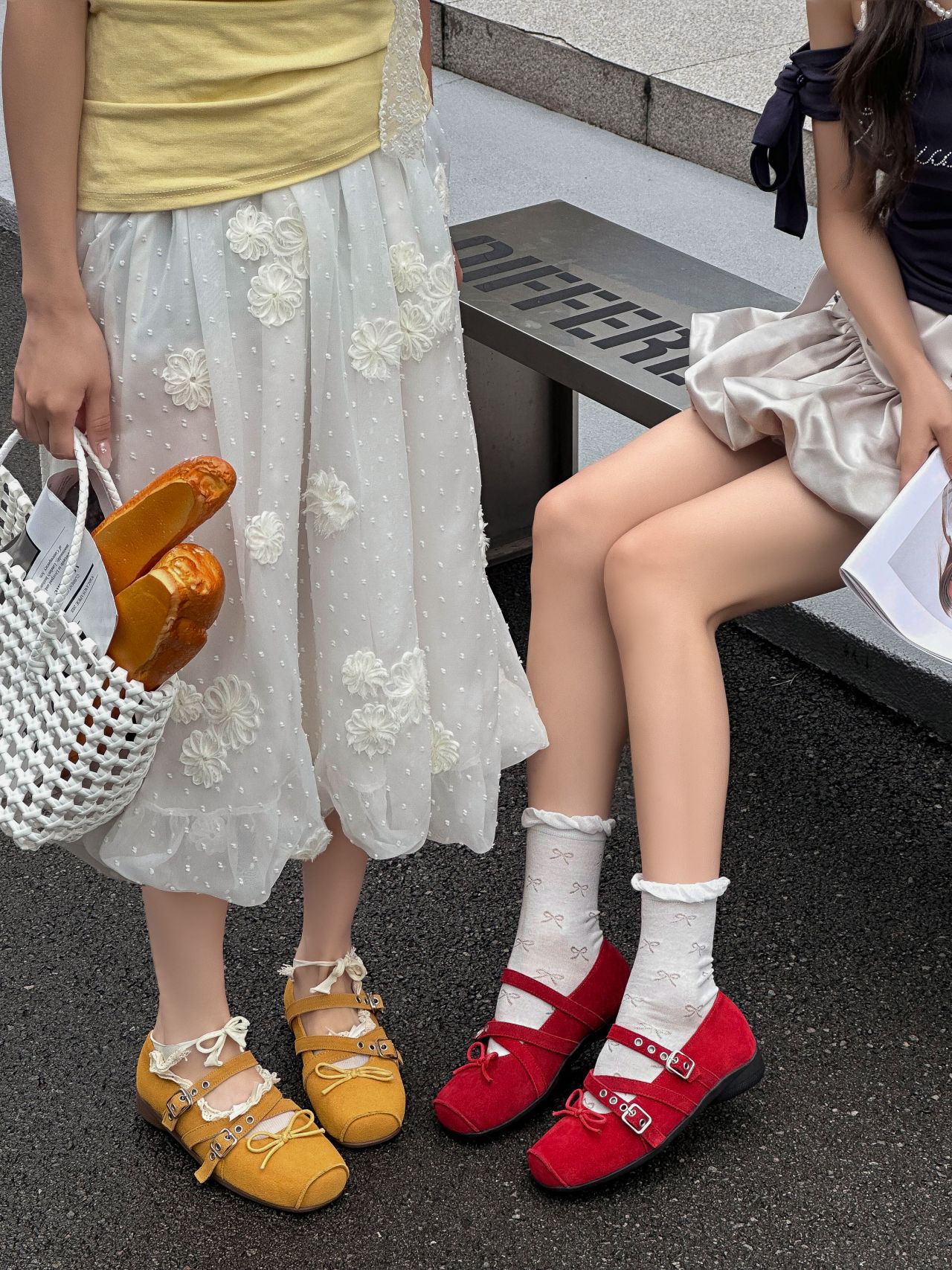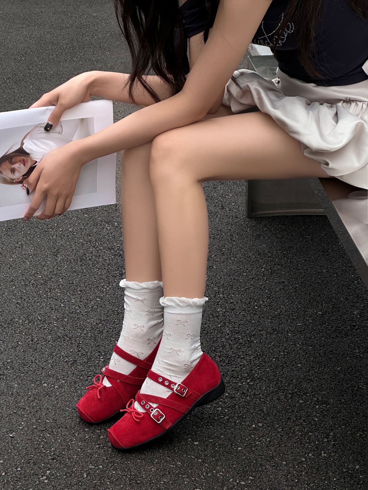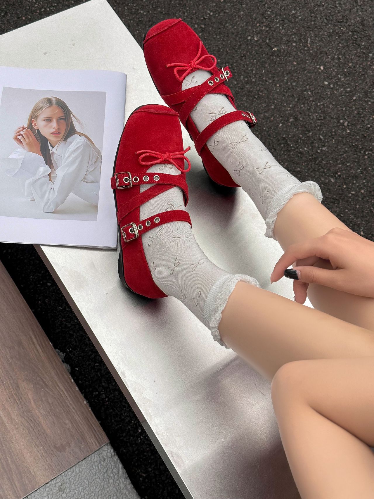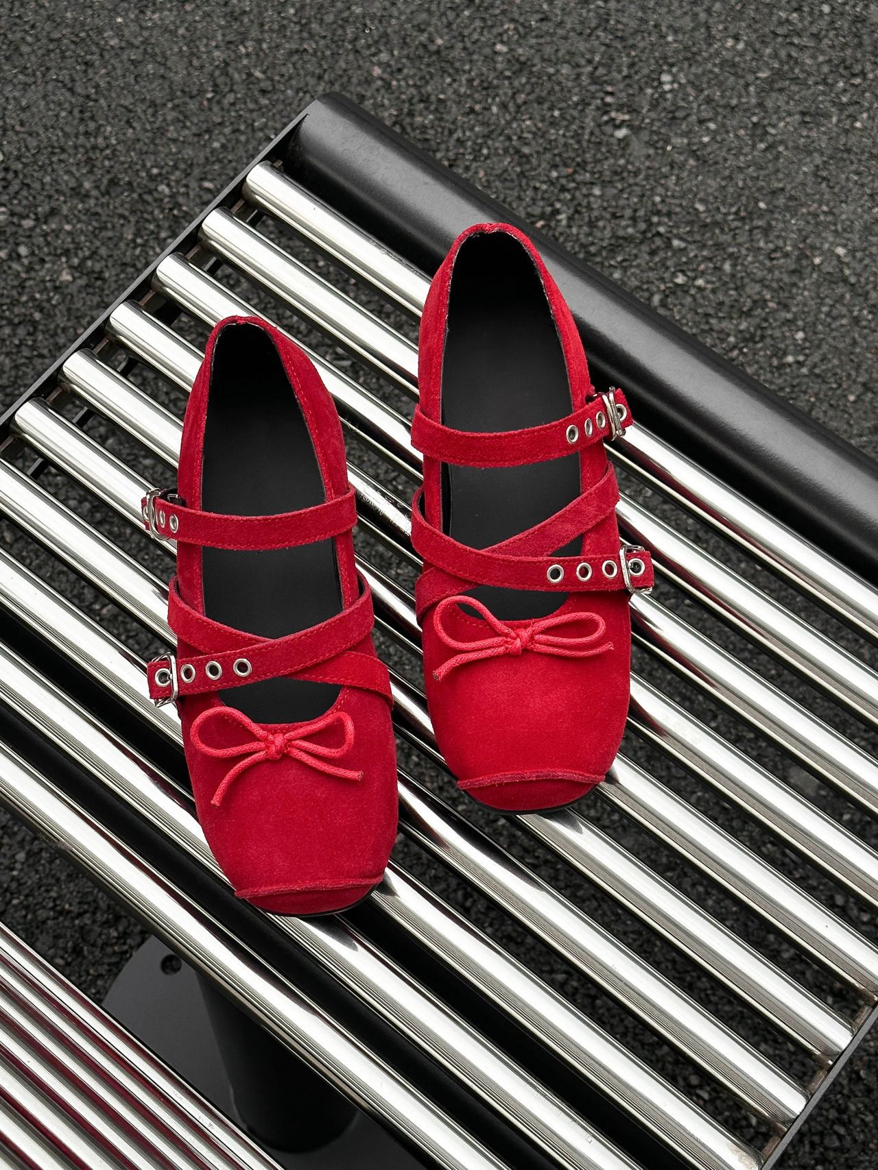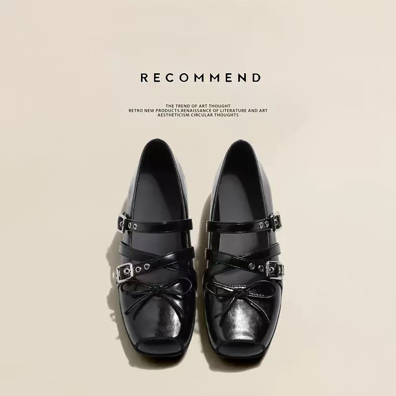 소가죽 버전 ~ 오리지널 레드 보우 여성용 작은 신발 2025 봄, 가을 정품 가죽 스퀘어 토 펌프스 리벳 발레 슈즈스토어 가기