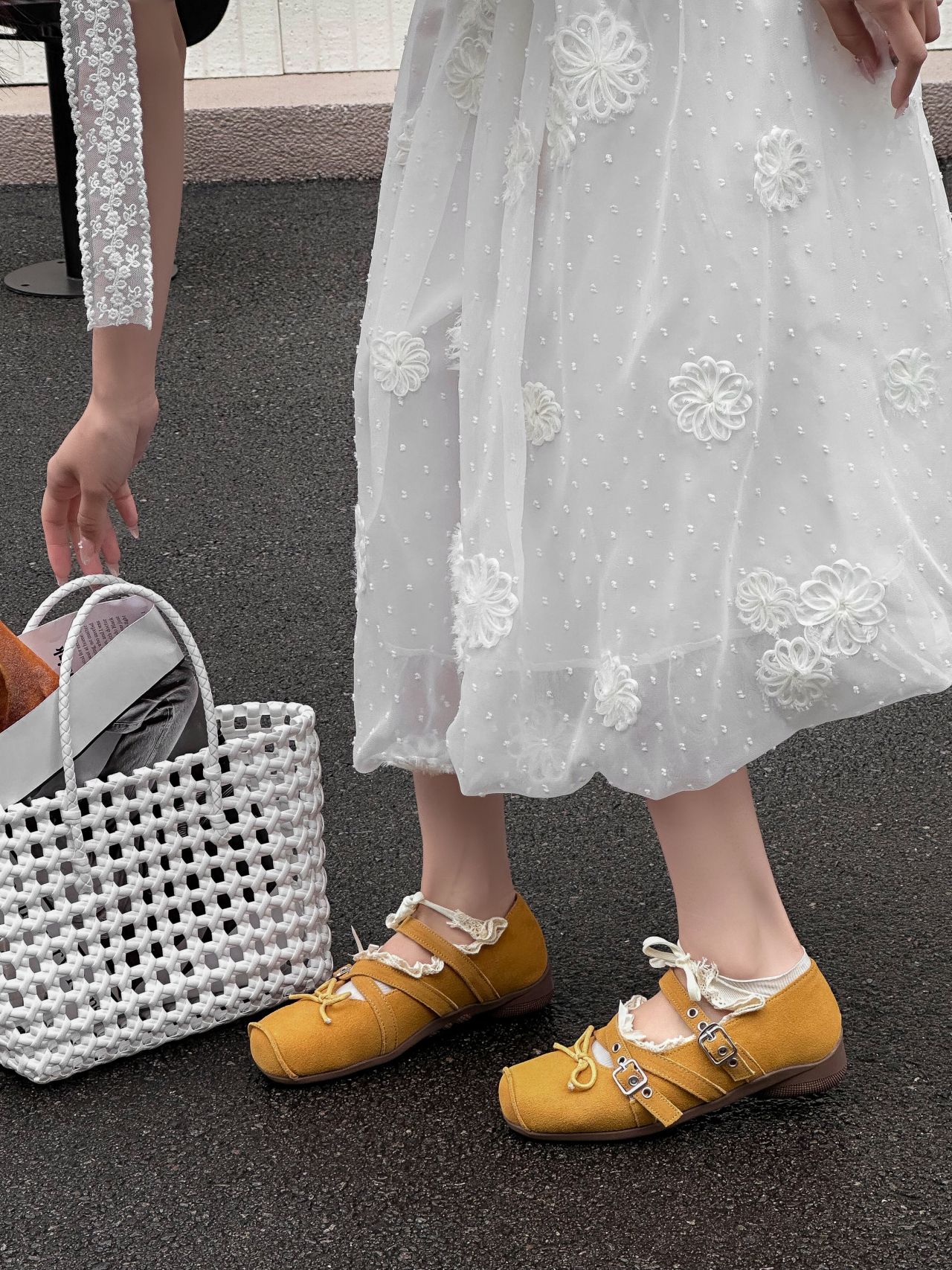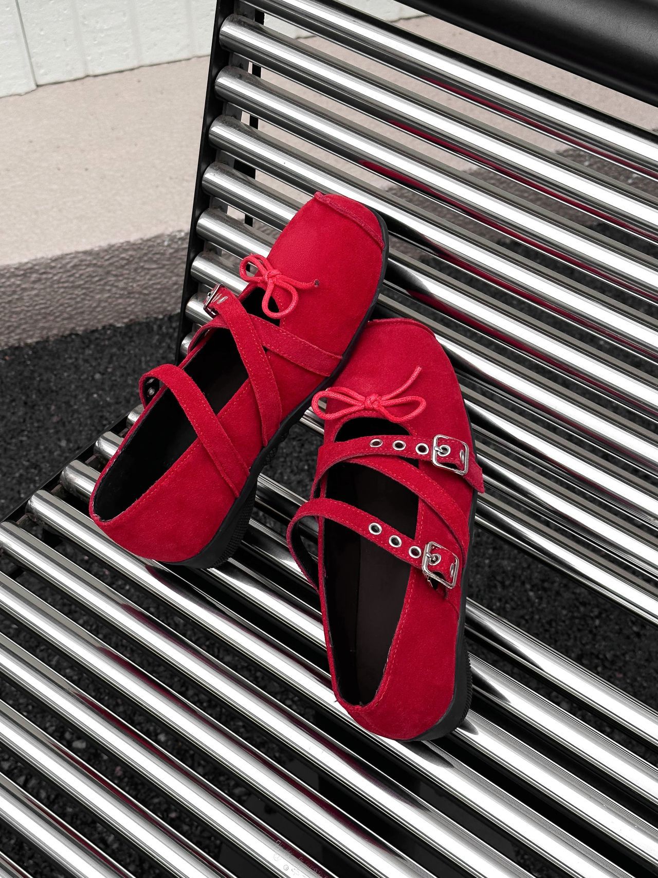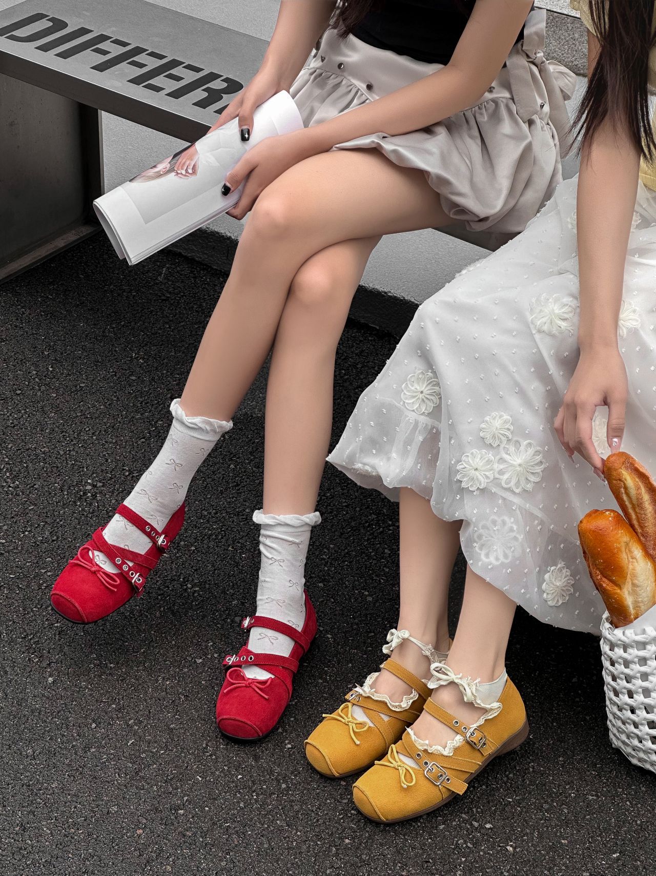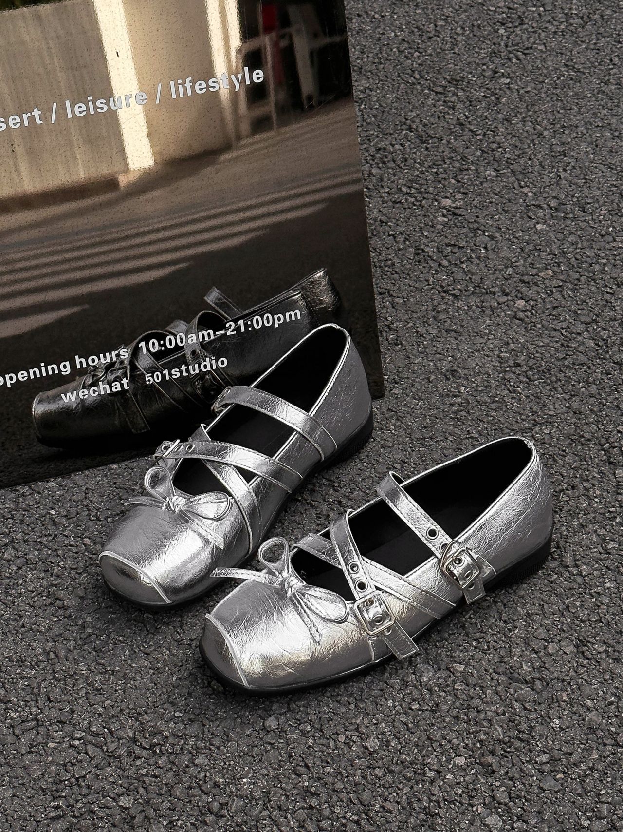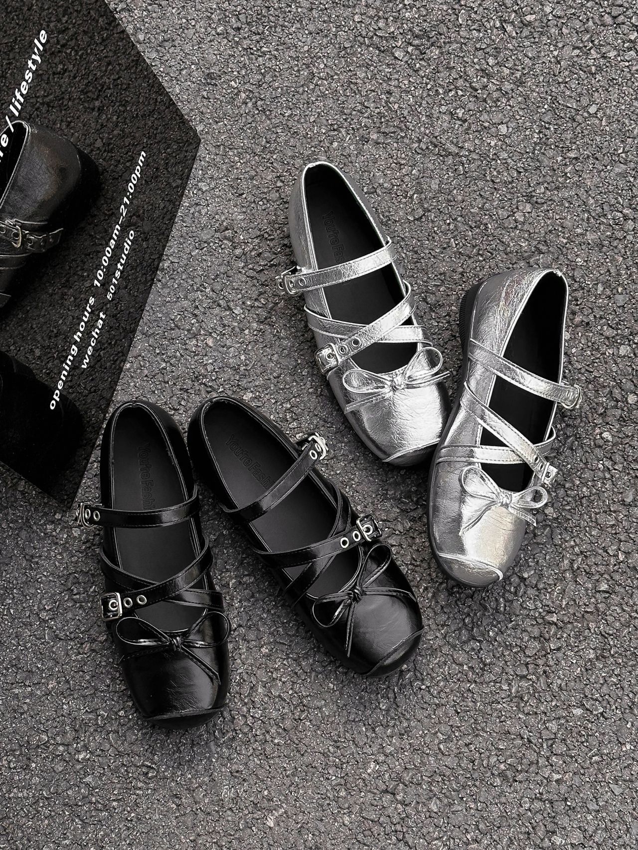 소가죽 버전 ~ 오리지널 레드 보우 여성용 작은 신발 2025 봄, 가을 정품 가죽 스퀘어 토 펌프스 리벳 발레 슈즈스토어 가기