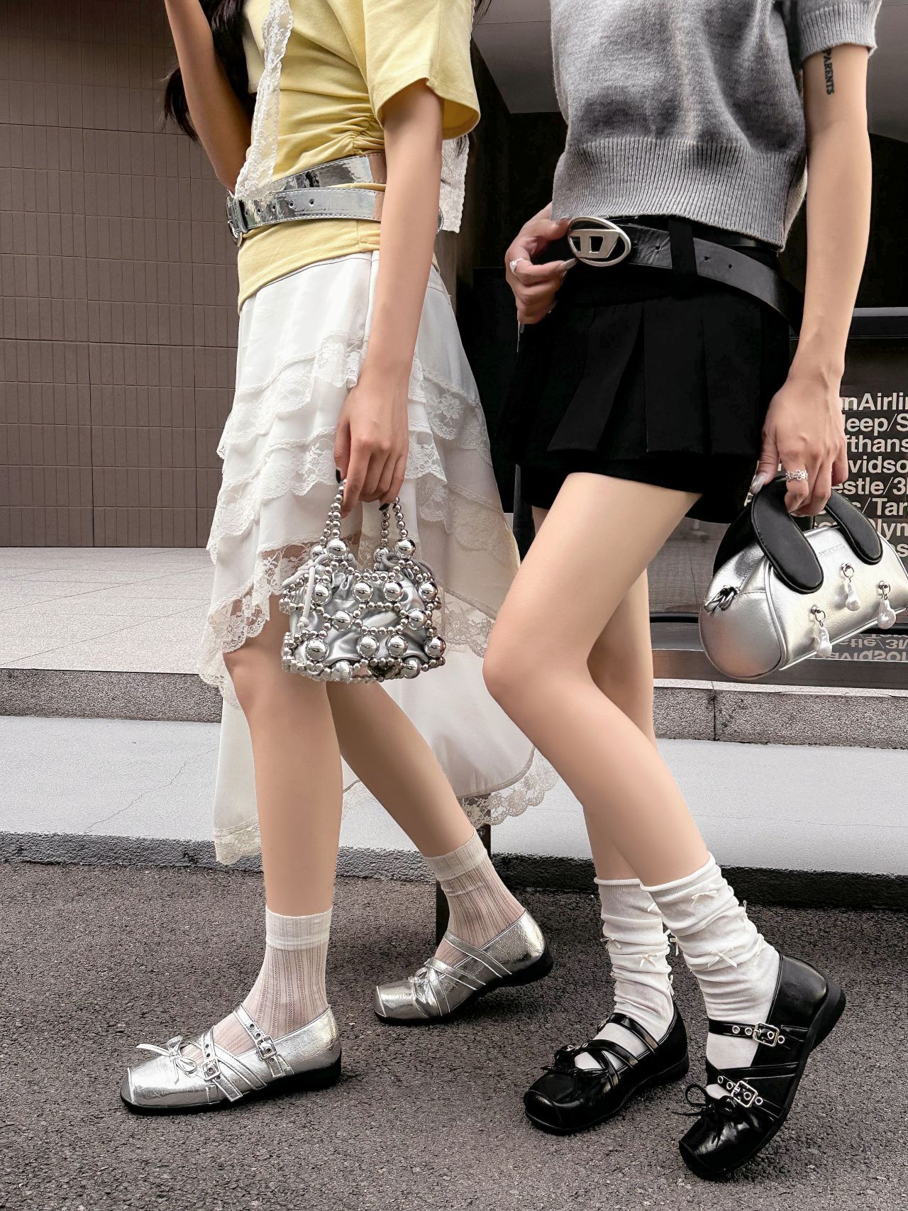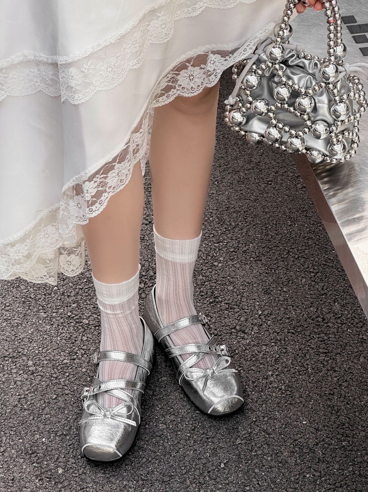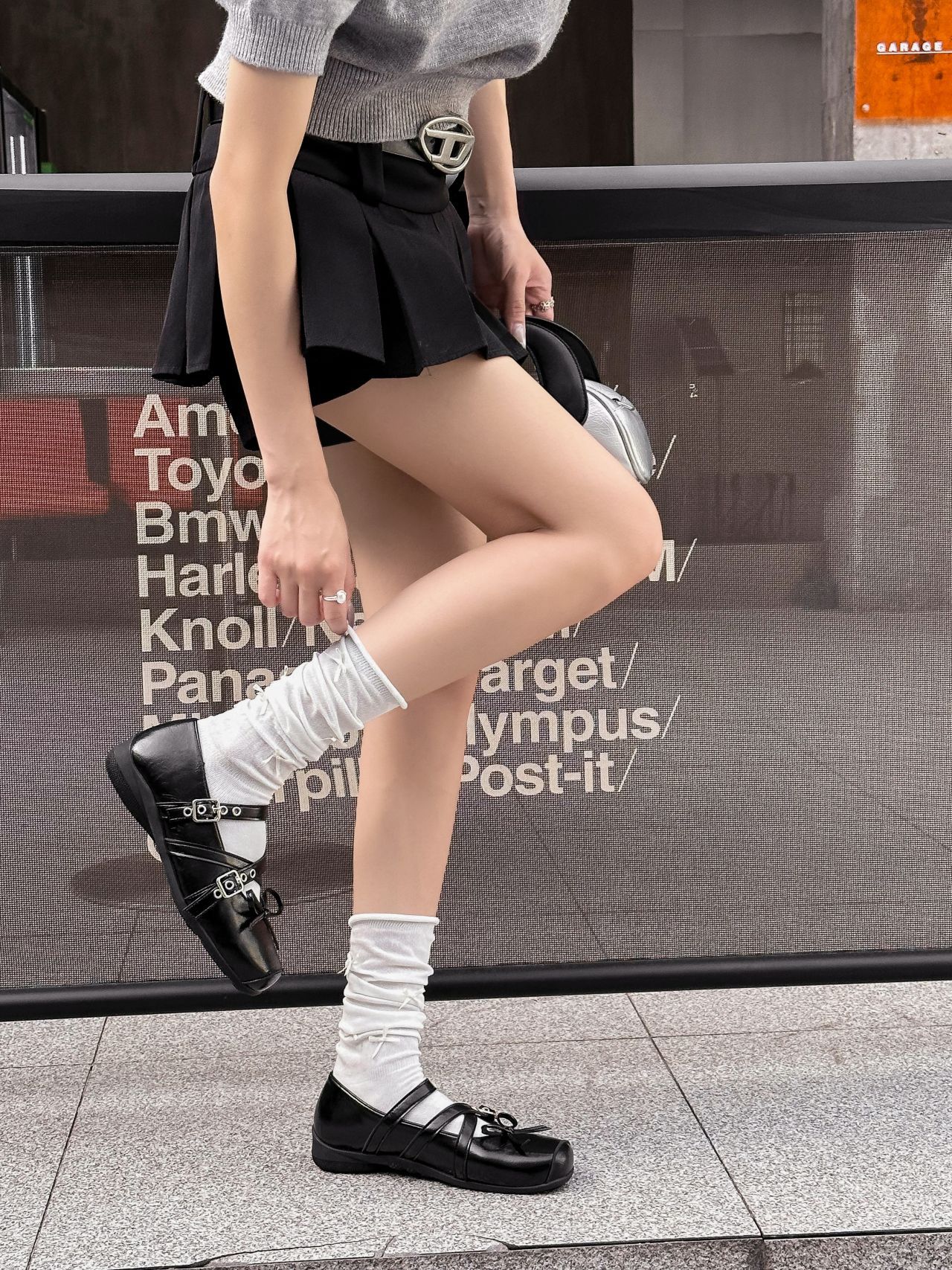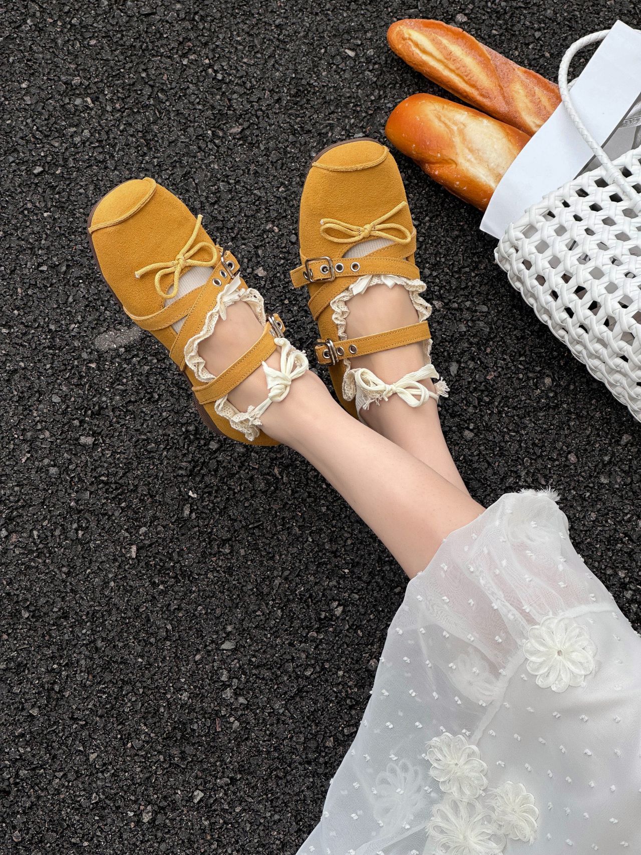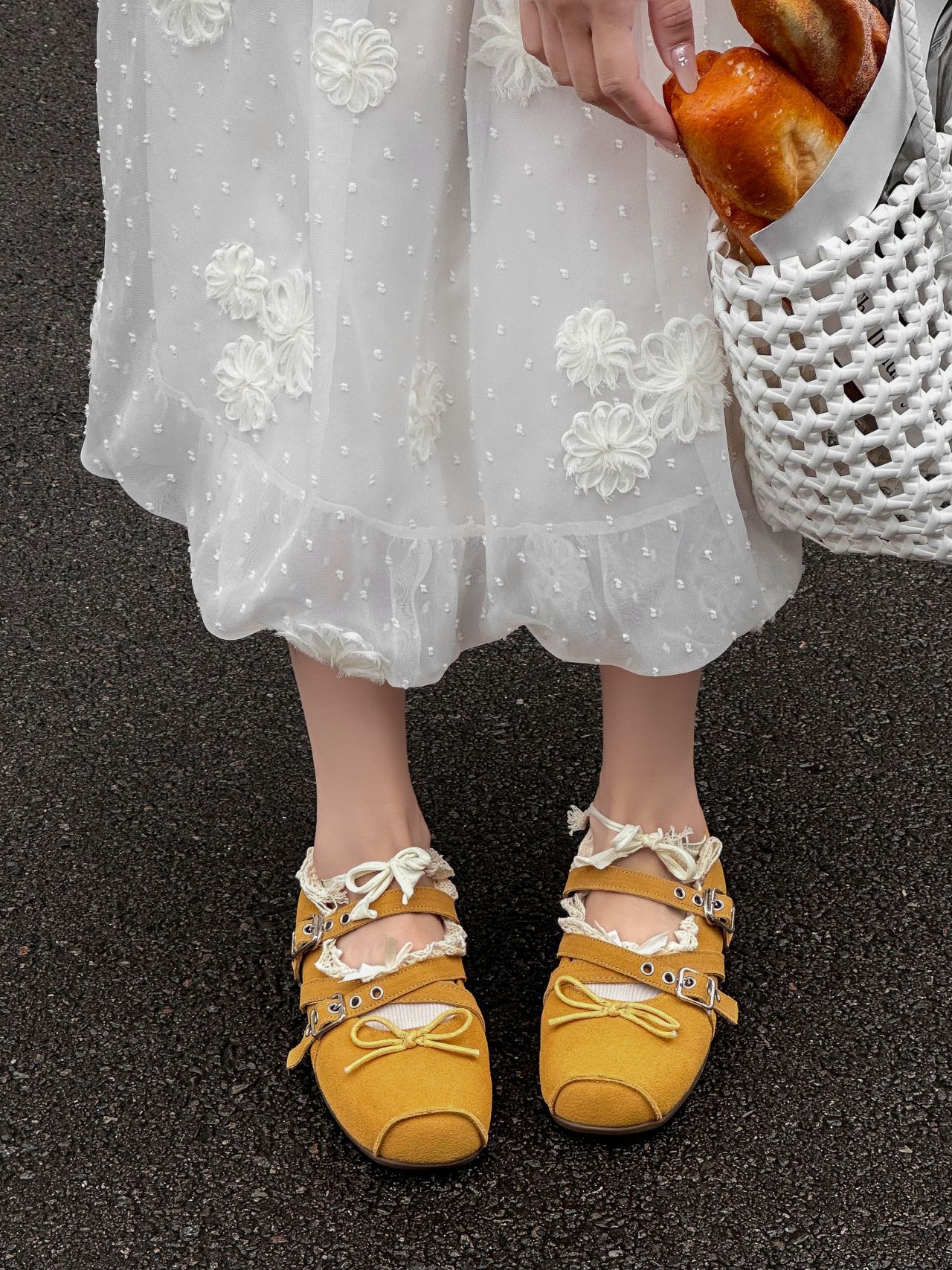 소가죽 버전 ~ 오리지널 레드 보우 여성용 작은 신발 2025 봄, 가을 정품 가죽 스퀘어 토 펌프스 리벳 발레 슈즈스토어 가기