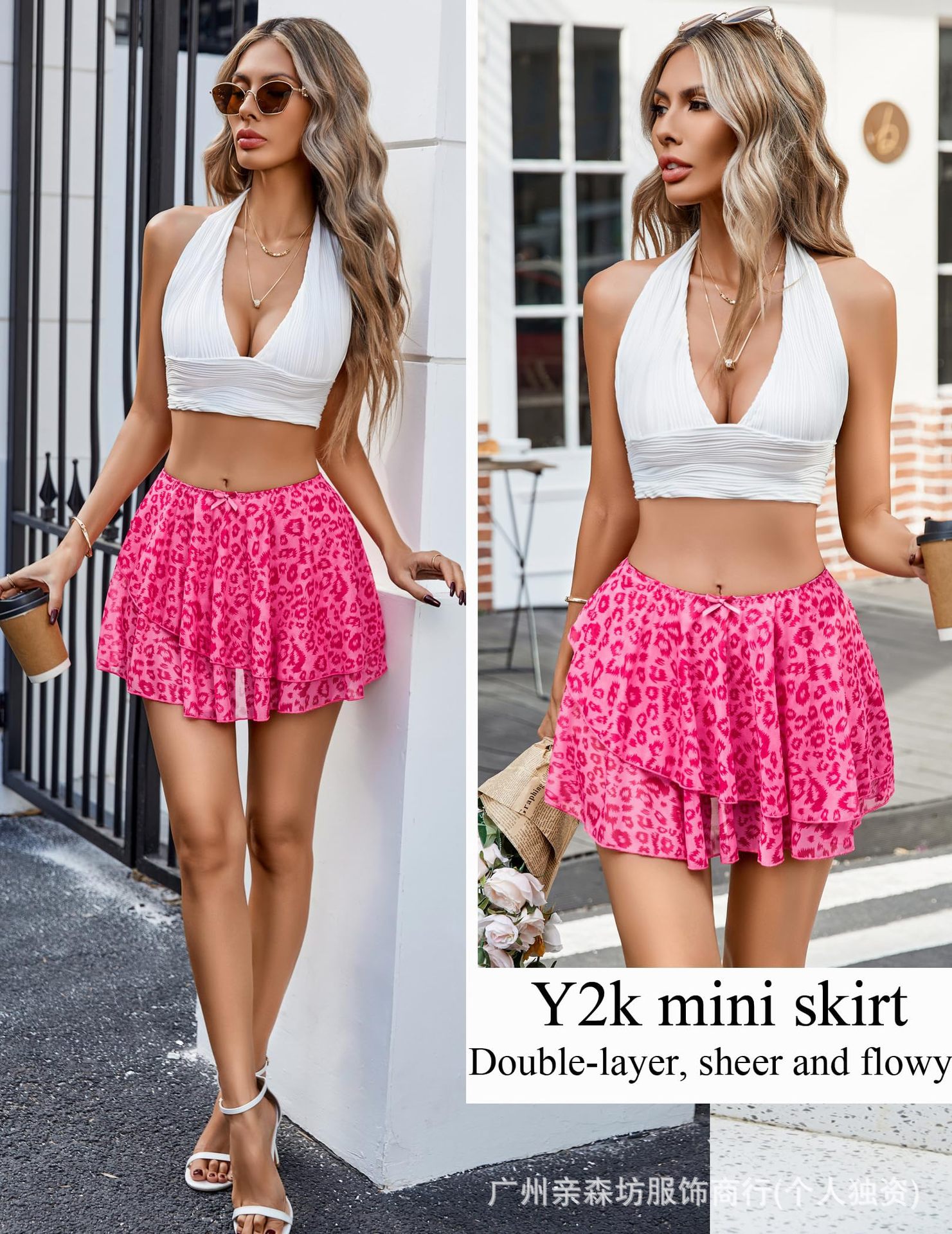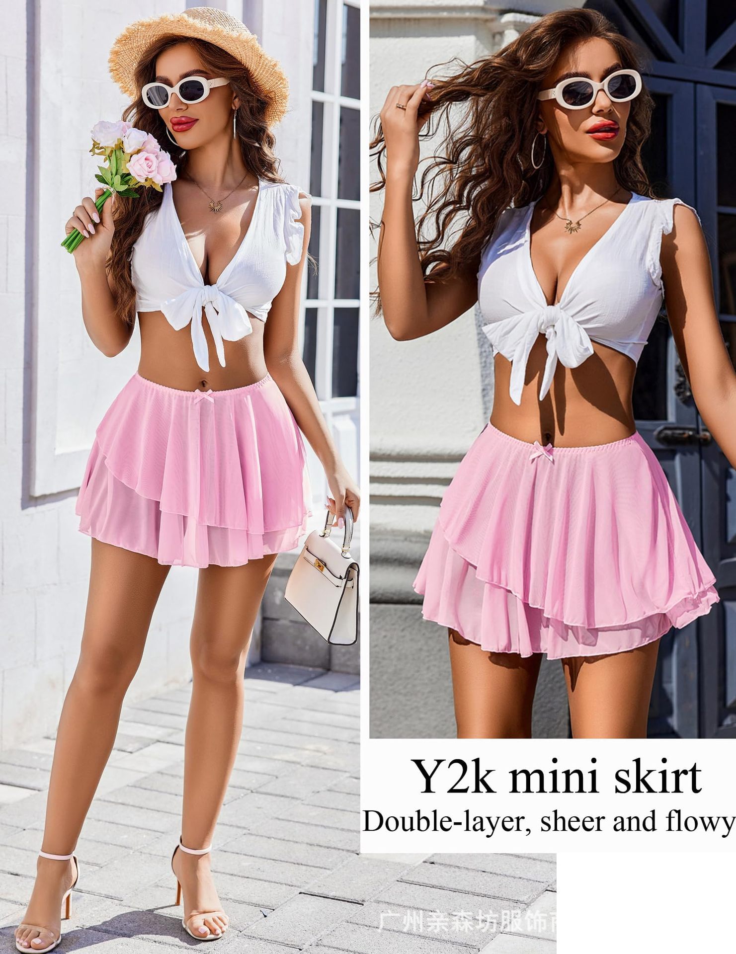2025 Amazon 여성용 플리츠 쉬폰 투명 섹시 미니 스커트 Y2k 비대칭 흐르는 짧은 스커트 크로스보더