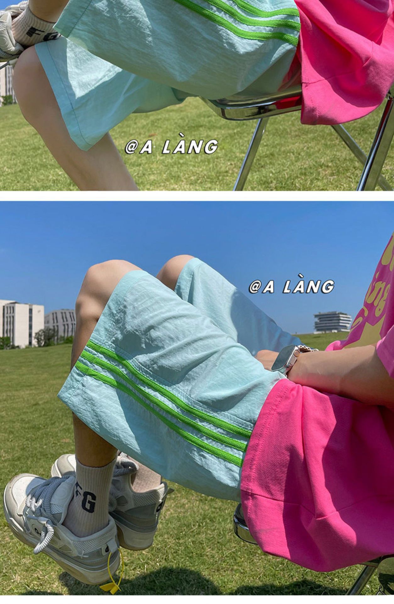 도파민 스포츠 반바지 남자 2025 새로운 여름 얼음 실크 속건성 중간 바지 대형 루즈 캐주얼 5부 바지스토어 가기