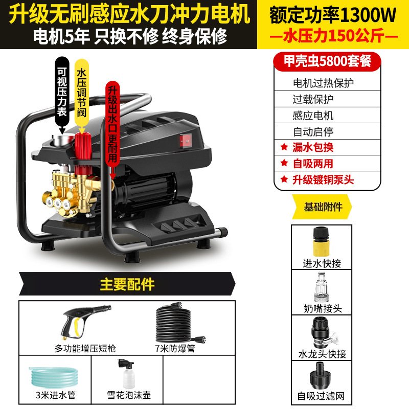 • 카트 버전 [브러시리스 유도 순동 코어 모터 5800] 10m 방폭 물 배출 파이프 + 가압 장총 + 이중 구리 연결 + 액세서리 세차 선물 팩 [압력 게이지 + 압력 조절 밸브