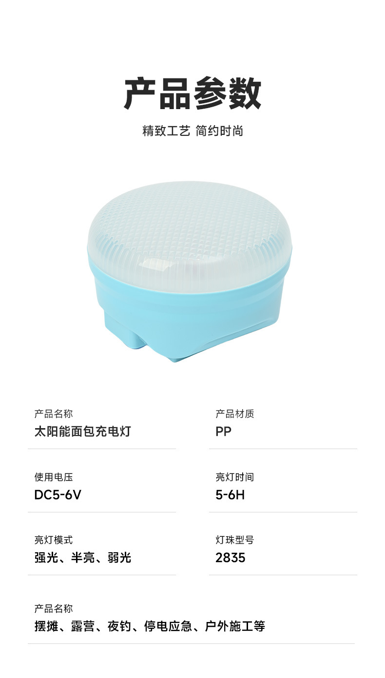• 【인기 폭발】 빵 모양 조명 블루, 직경 100mm, 100W + 1200mAh 배터리 + 고리형 자석 부착 *태양광 패널 미포함