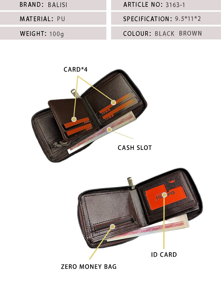 국경 간 남성용 지갑 동전 지갑 BALISI 멀티 카드 슬롯 카드 홀더 대용량 동전 가방 다기능 지퍼 지갑