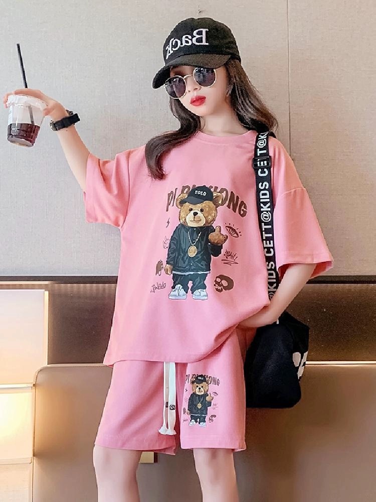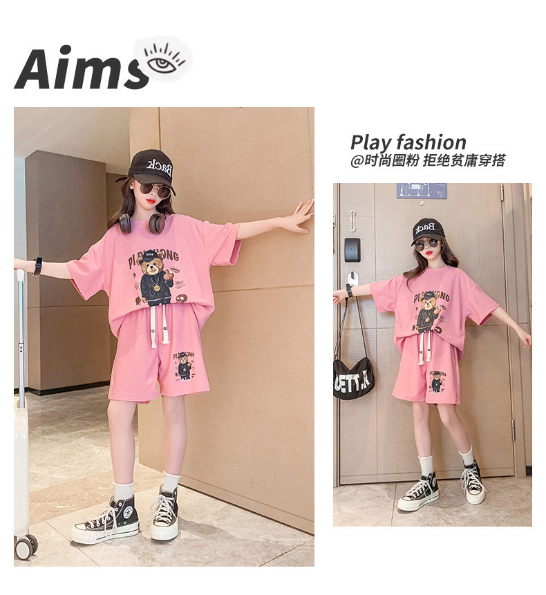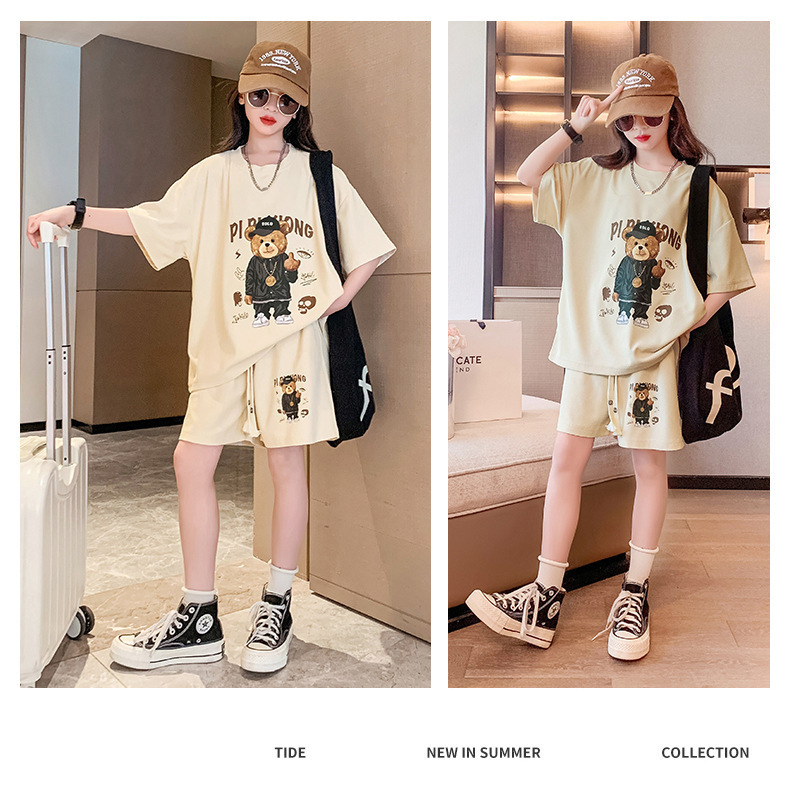 여아 여름 정장, 큰 아동 패션 여름 정장 2025 새로운 여아 캐주얼 의류 아동 루즈 투피스 세트스토어 가기