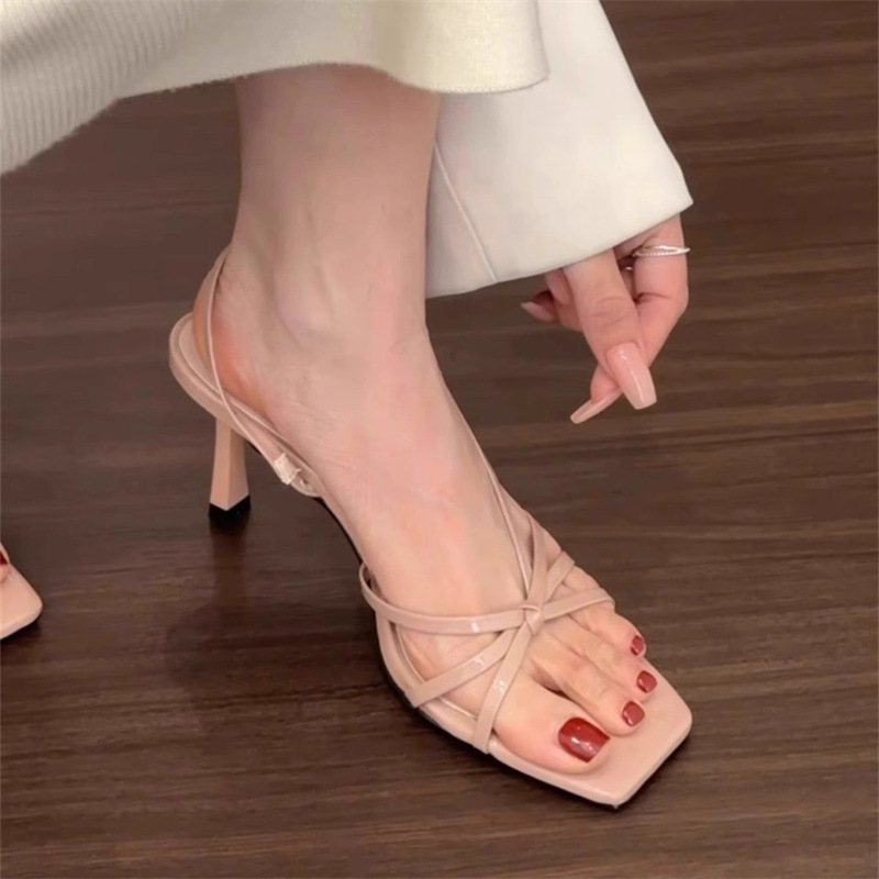 2025년 새로운 여름 스타일 프렌치 크로스 스트랩 패셔너블하고 편안한 스퀘어 토 요정 스타일 여성용 하이 엔드 하이힐 샌들스토어 가기