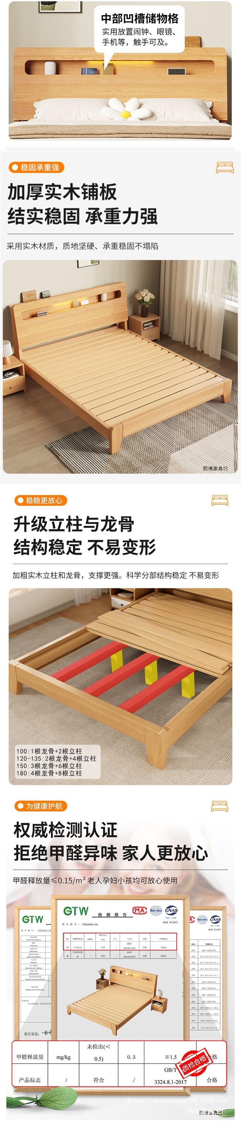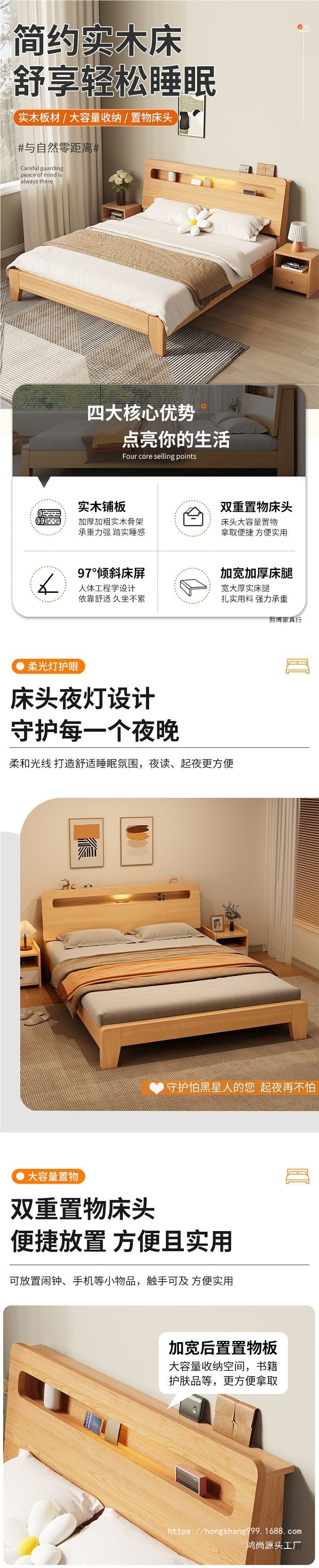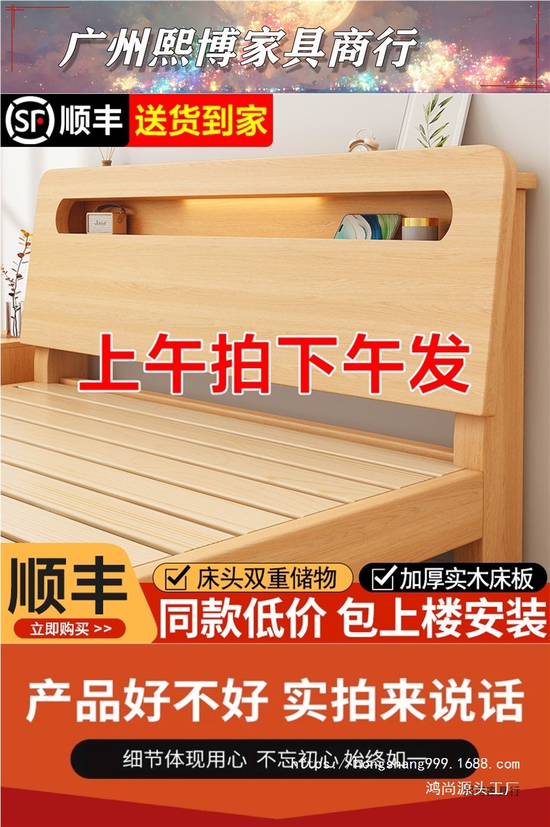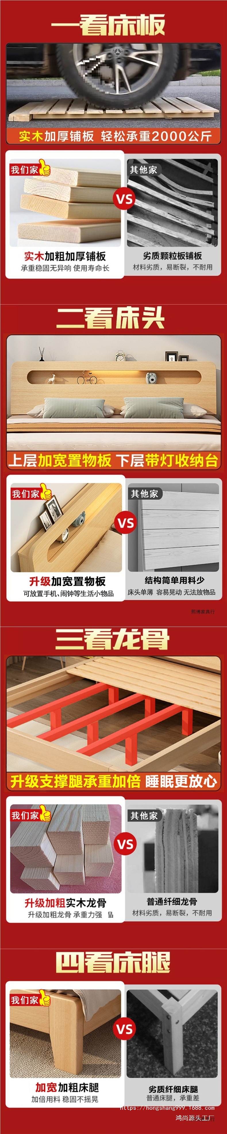 단단한 나무 침대 간단한 현대 더블 침대 프레임 1.5m 경제적인 공장 직접 판매 1.2 싱글 침대 임대실 홈스토어 가기