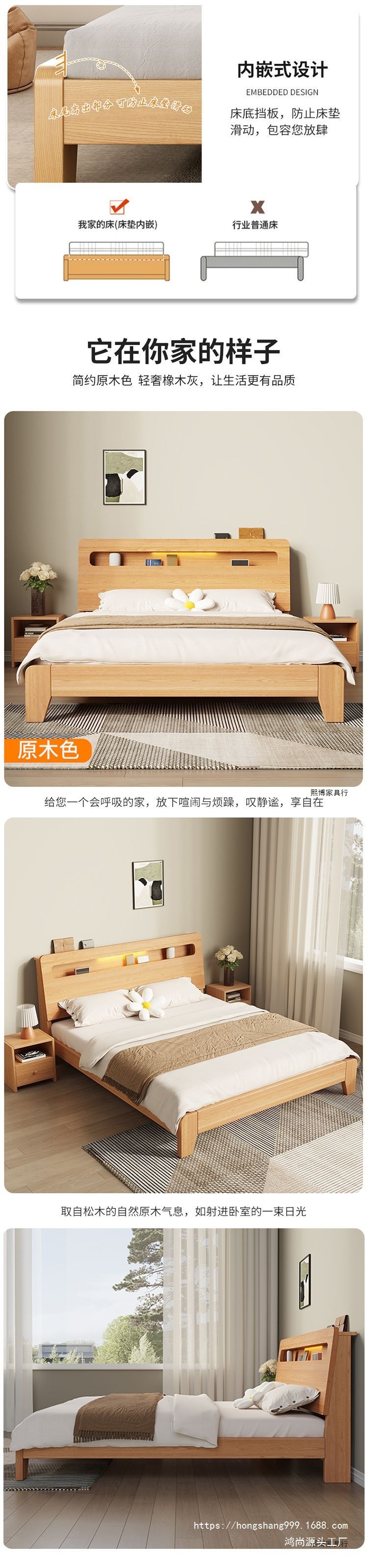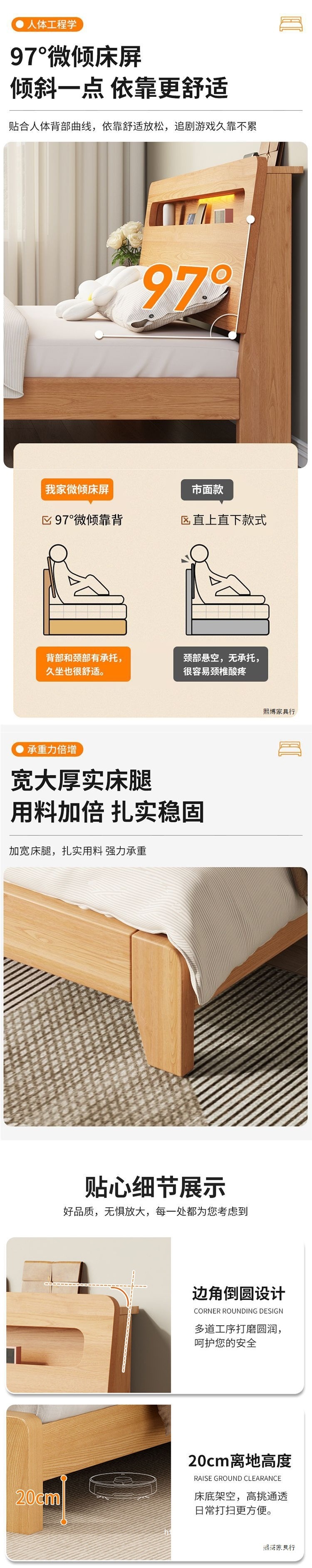 • 두꺼운 통나무 침대 + 침대 옆 탁자 1개 [집으로 배송]