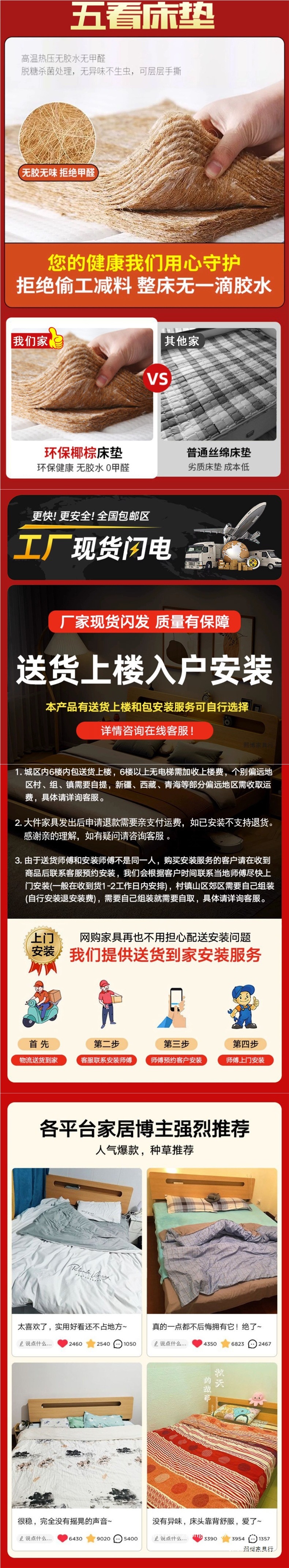 • 두꺼운 통나무 침대 + 8cm 코코넛 야자 매트리스 [집으로 배송]