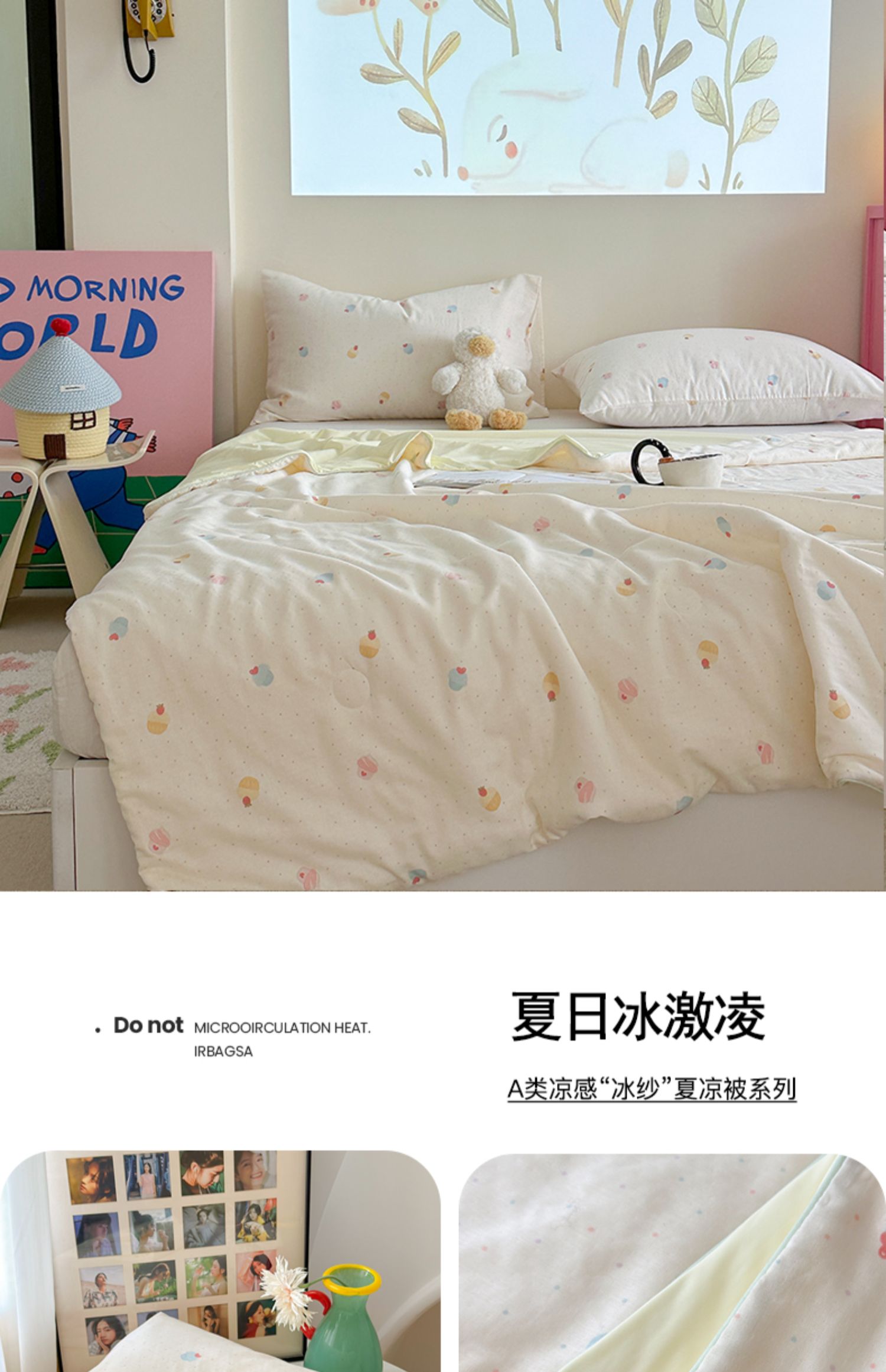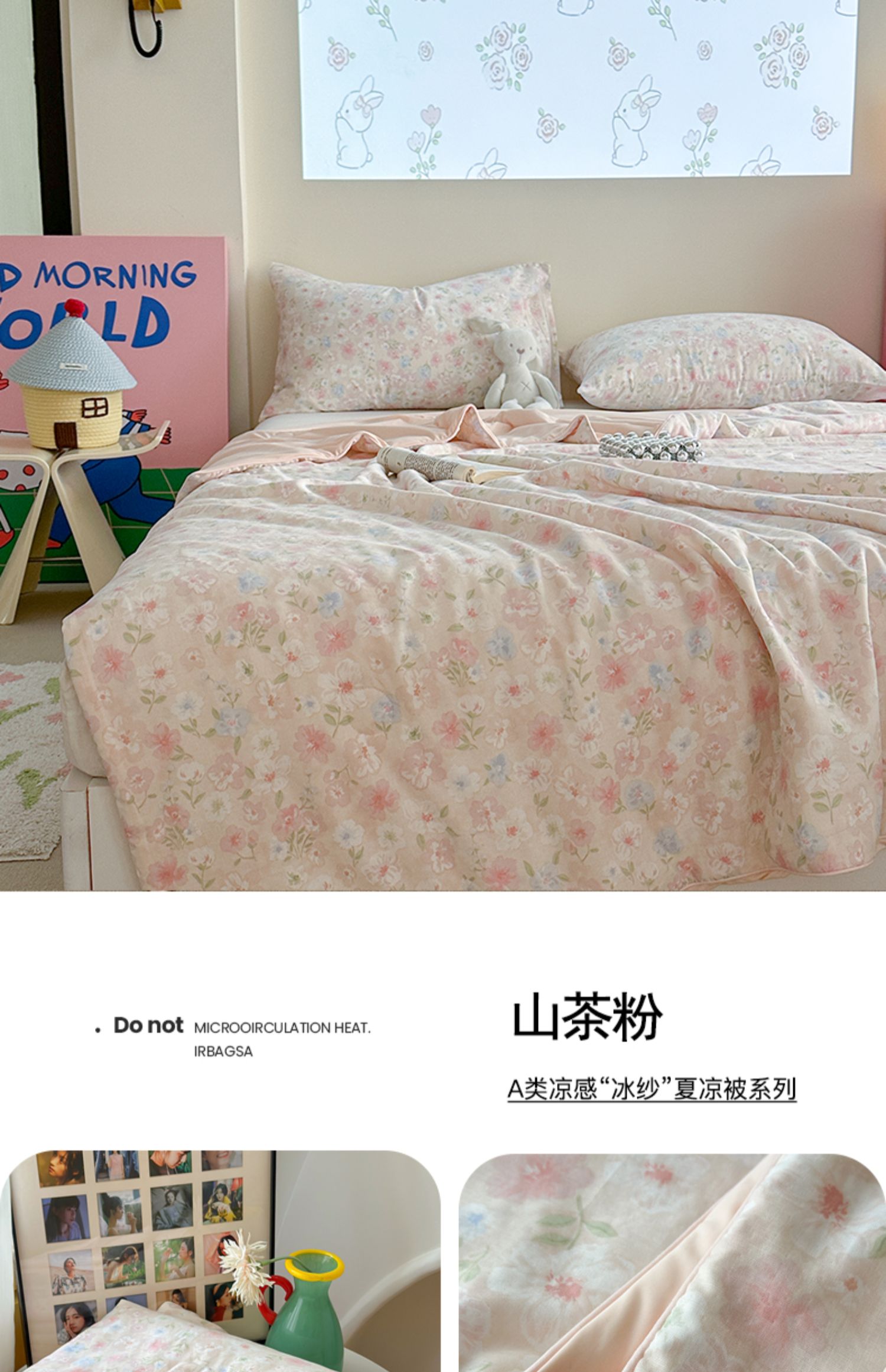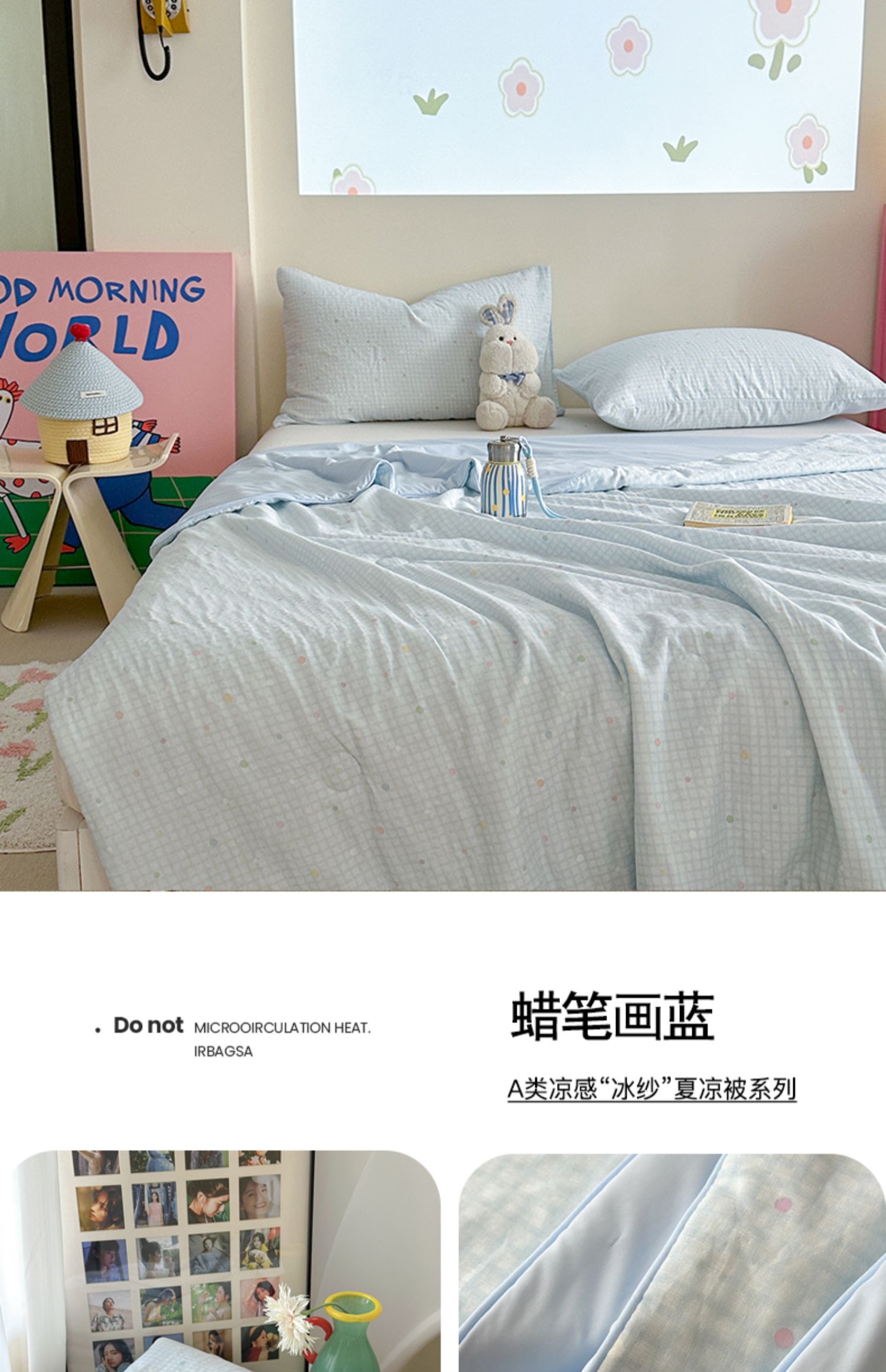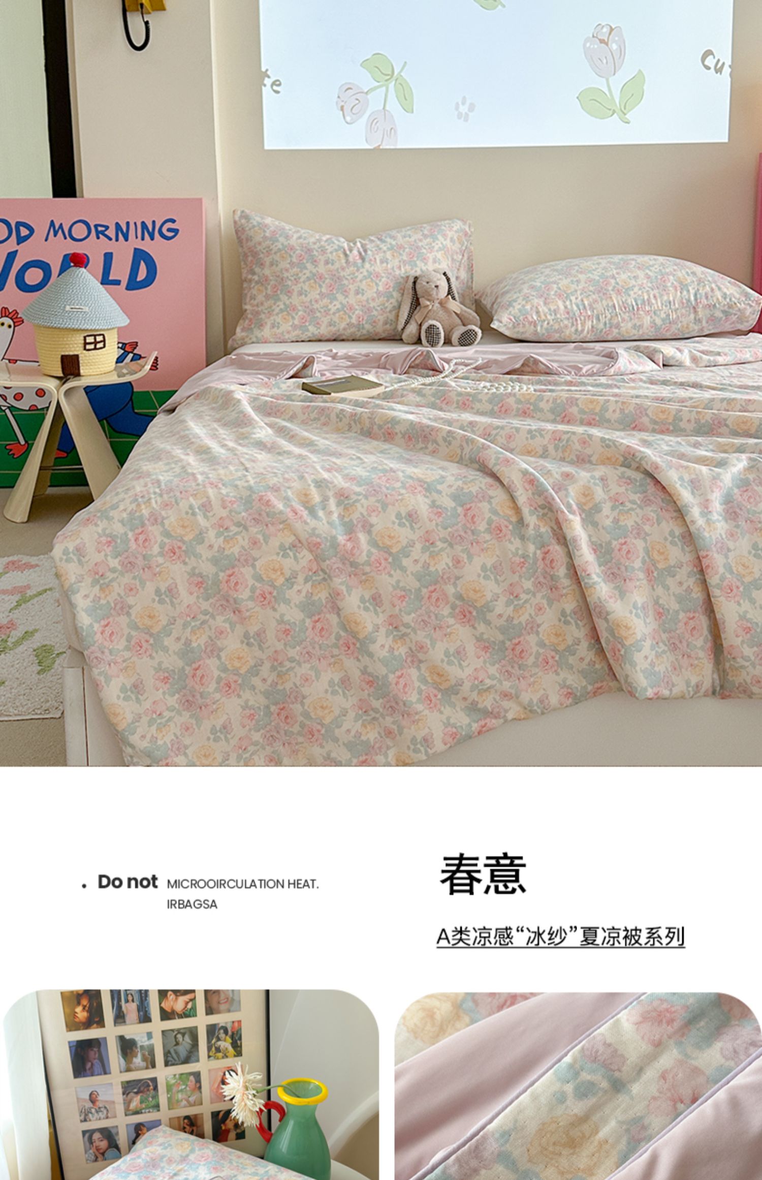 순면 이중실 여름 시원한 이불 4종 세트 여름 시원한 실크 에어컨 이불 기계 세탁 가능한 싱글 얇은 얼음 실크 이불스토어 가기