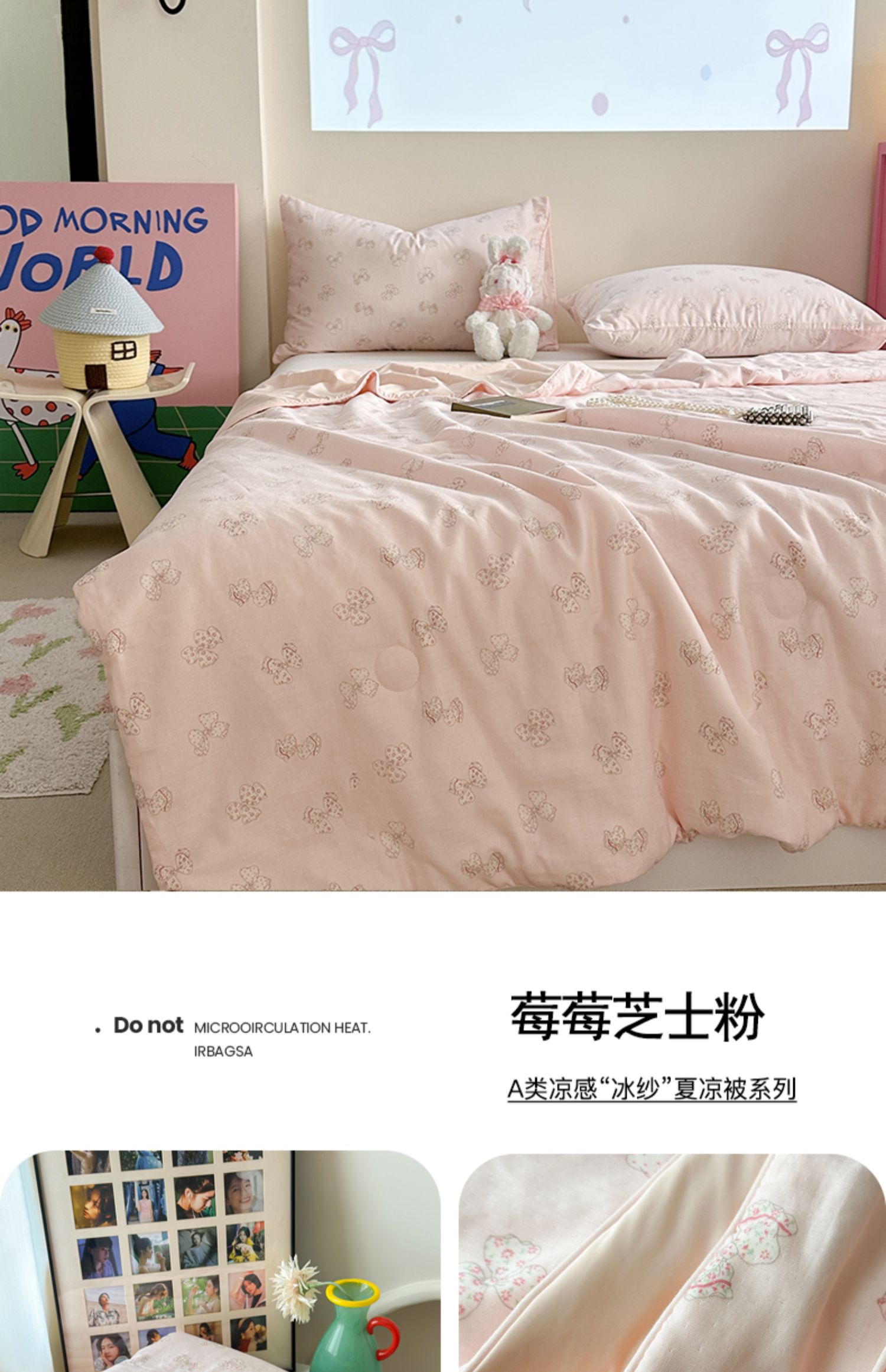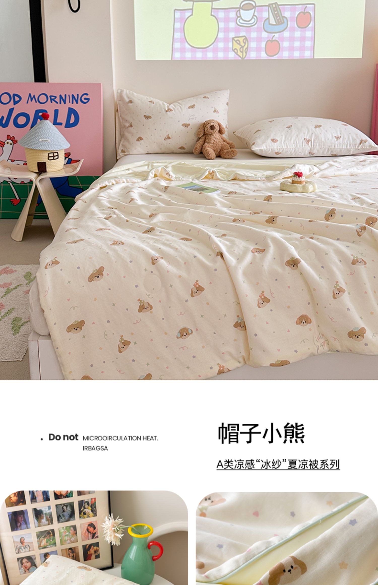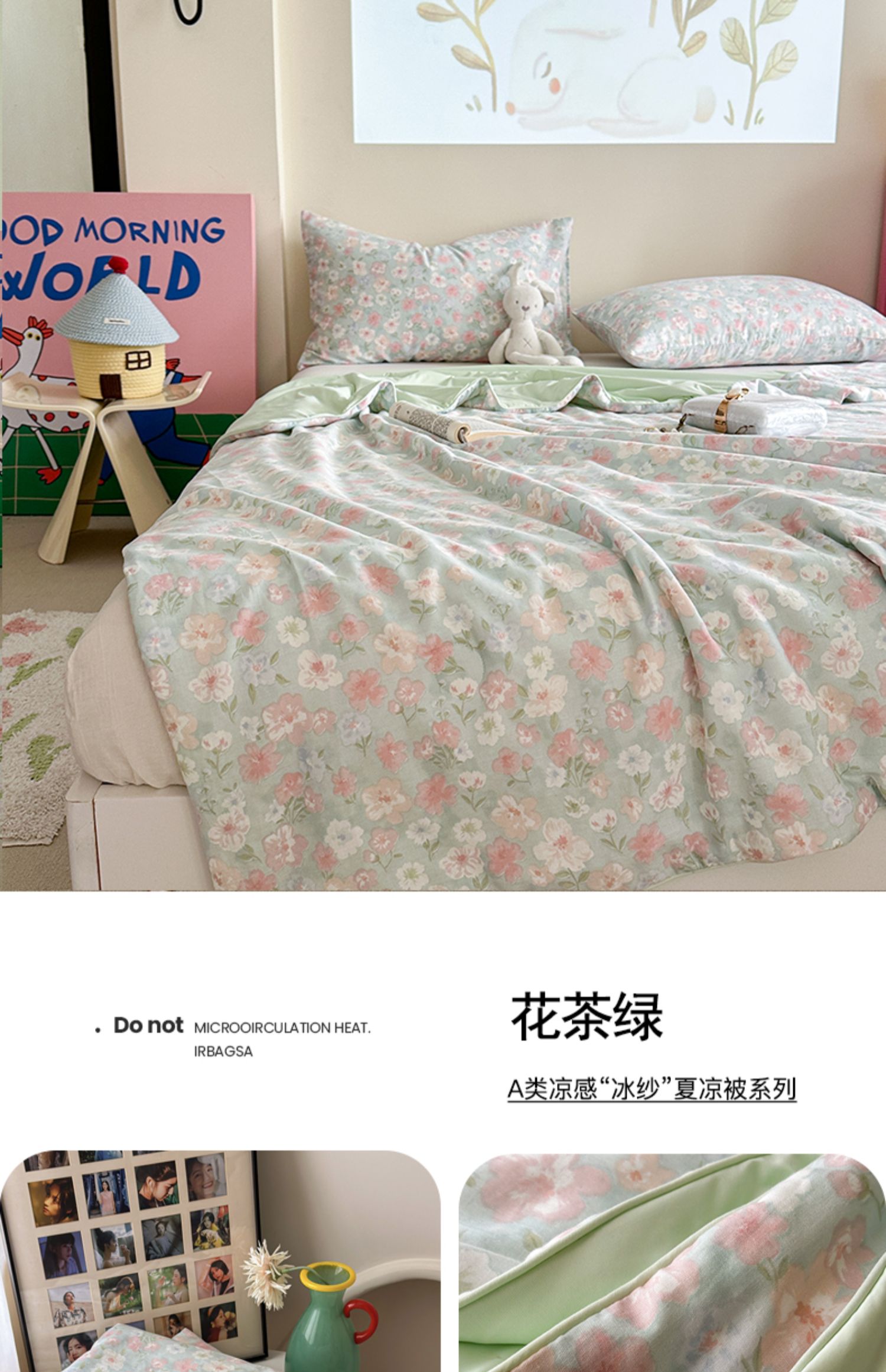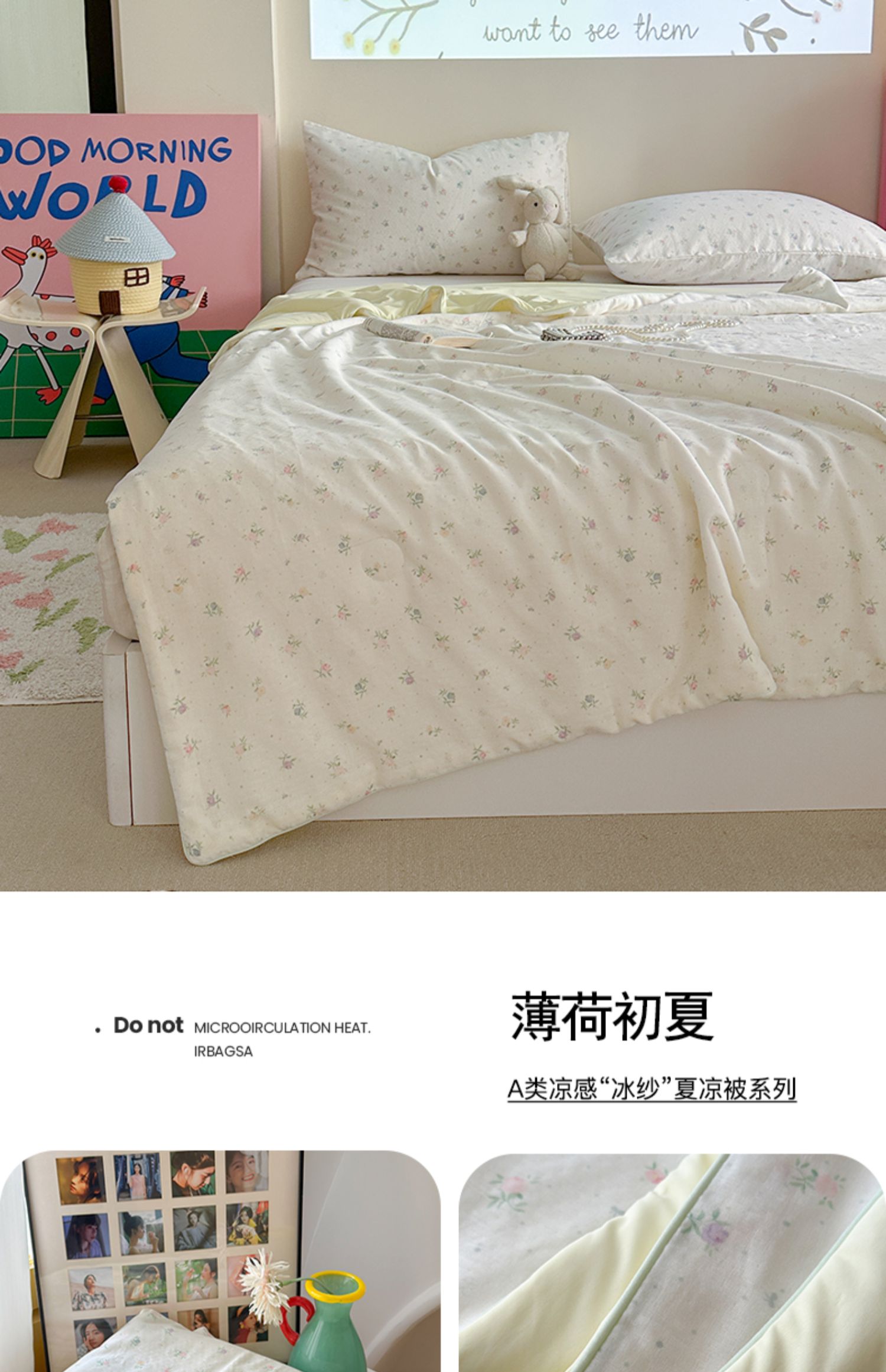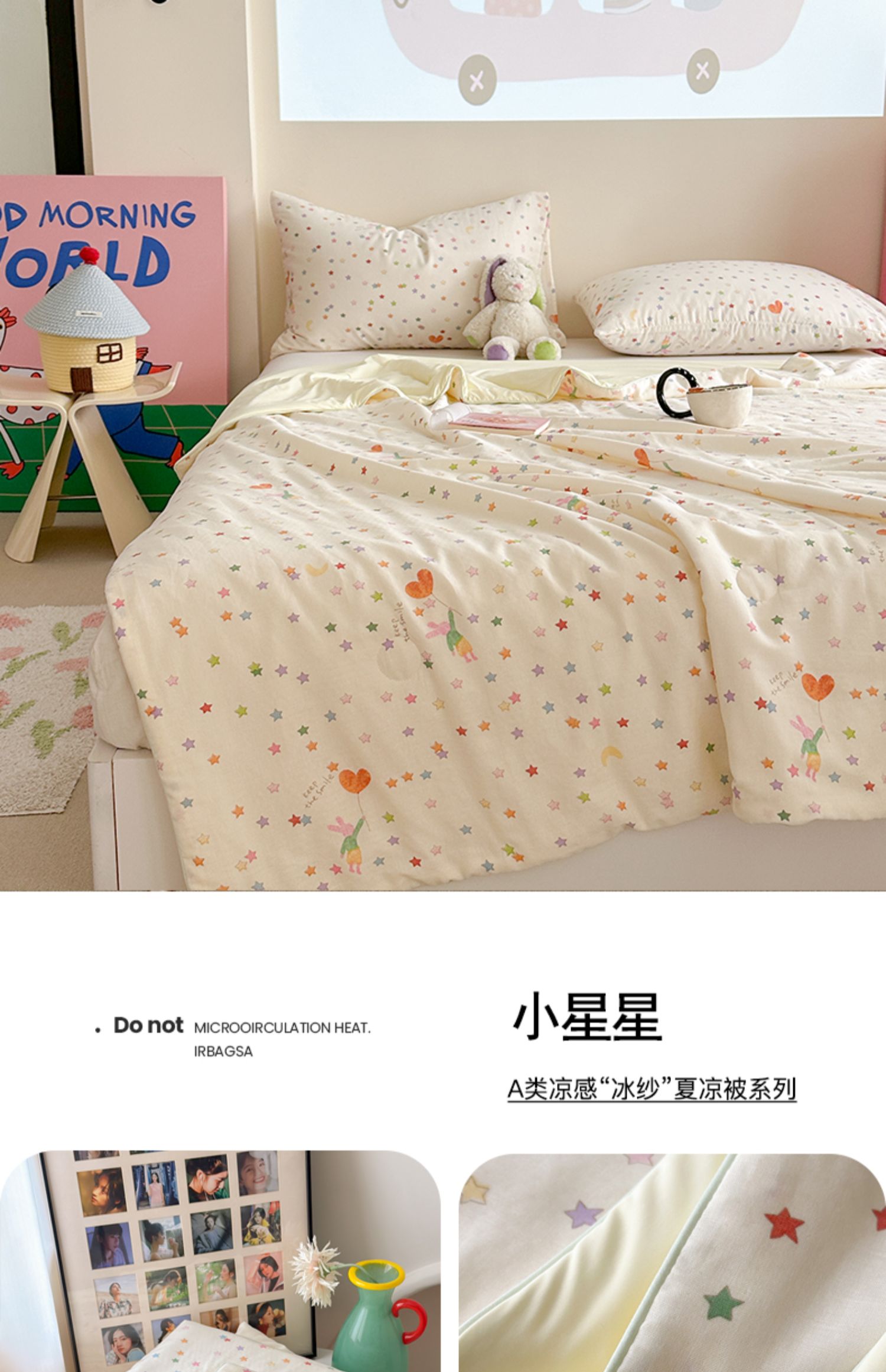 순면 이중실 여름 시원한 이불 4종 세트 여름 시원한 실크 에어컨 이불 기계 세탁 가능한 싱글 얇은 얼음 실크 이불스토어 가기