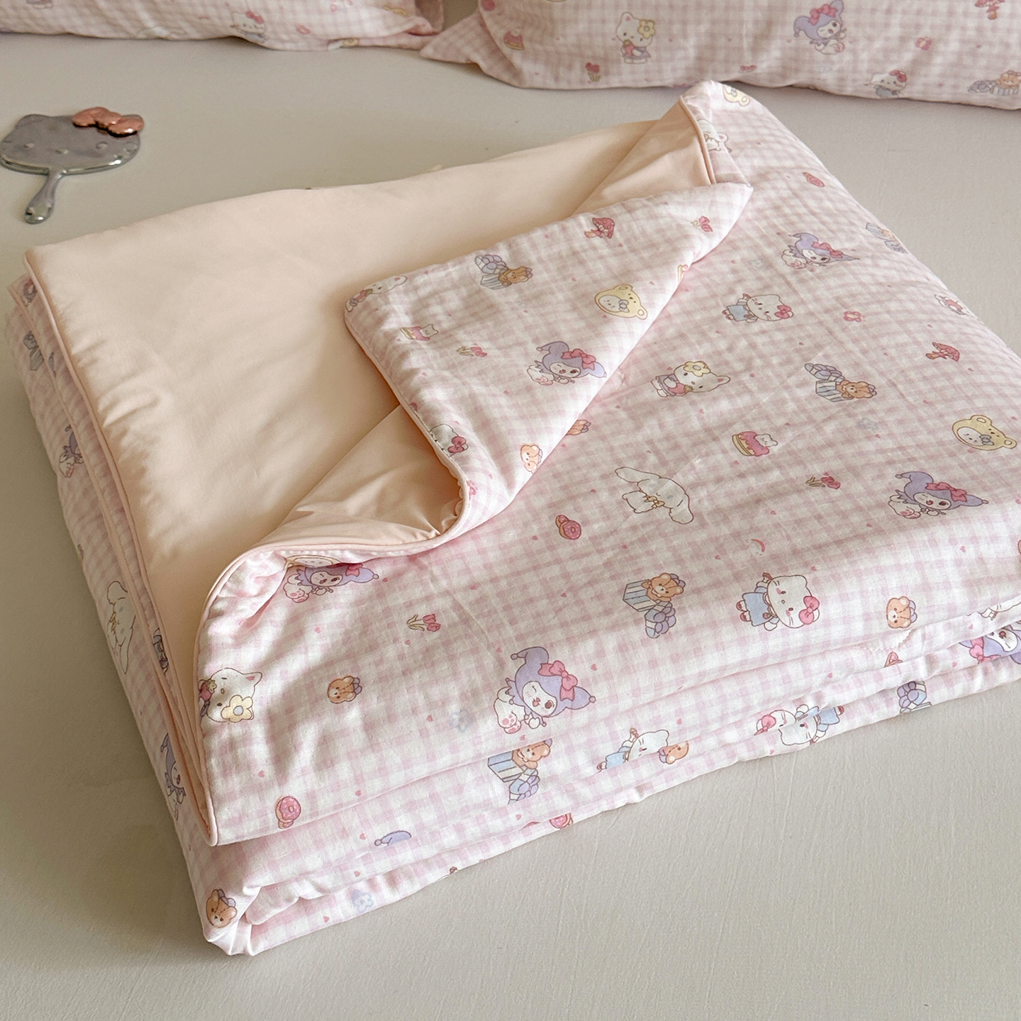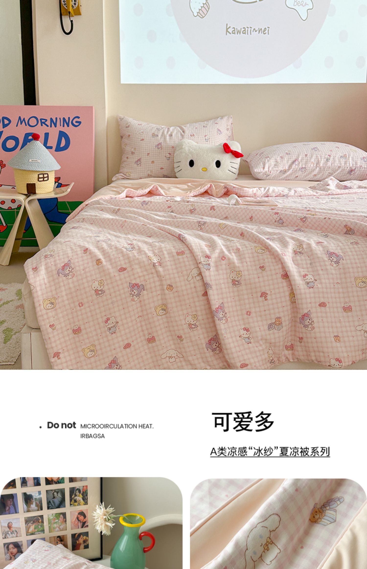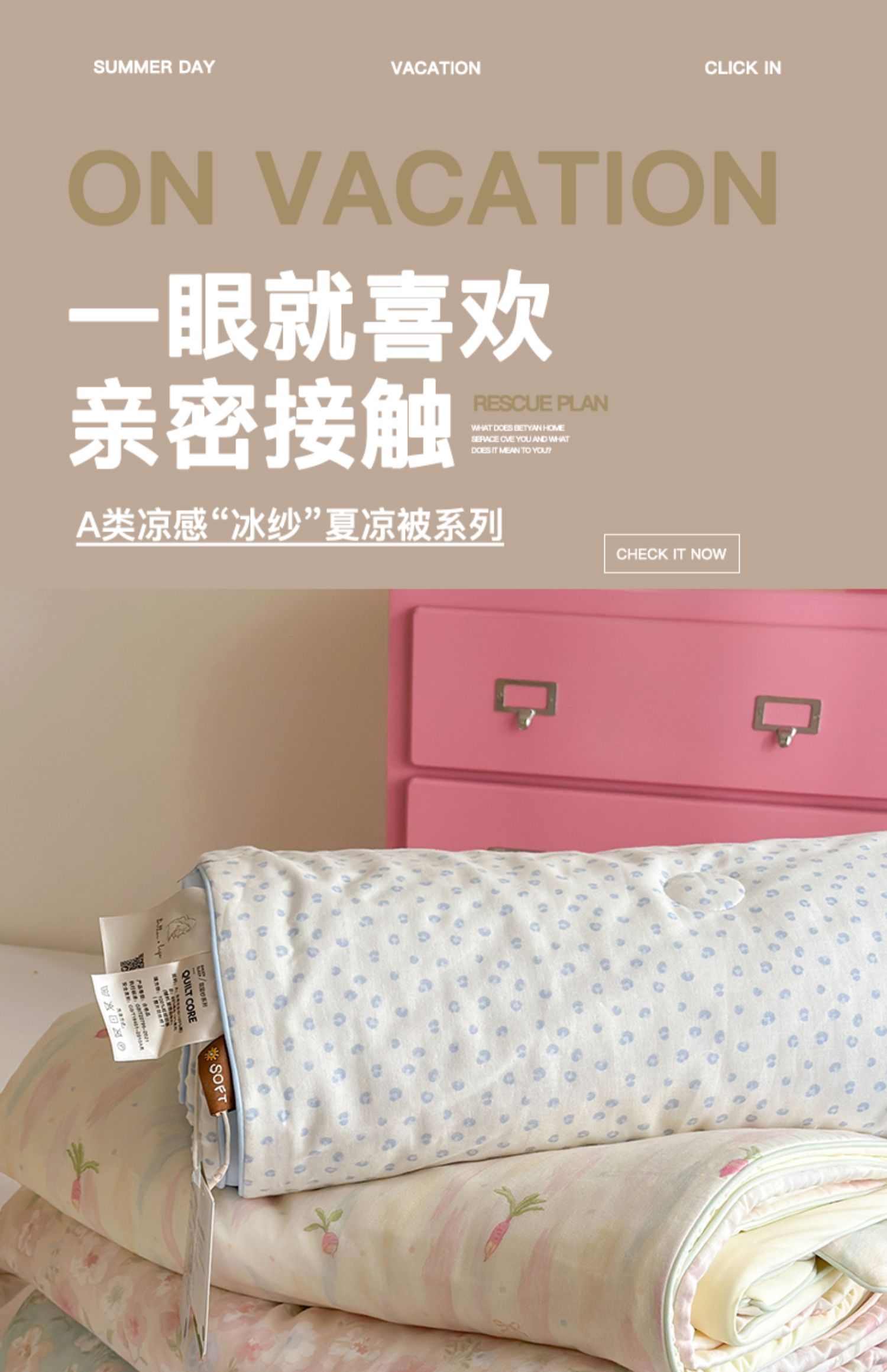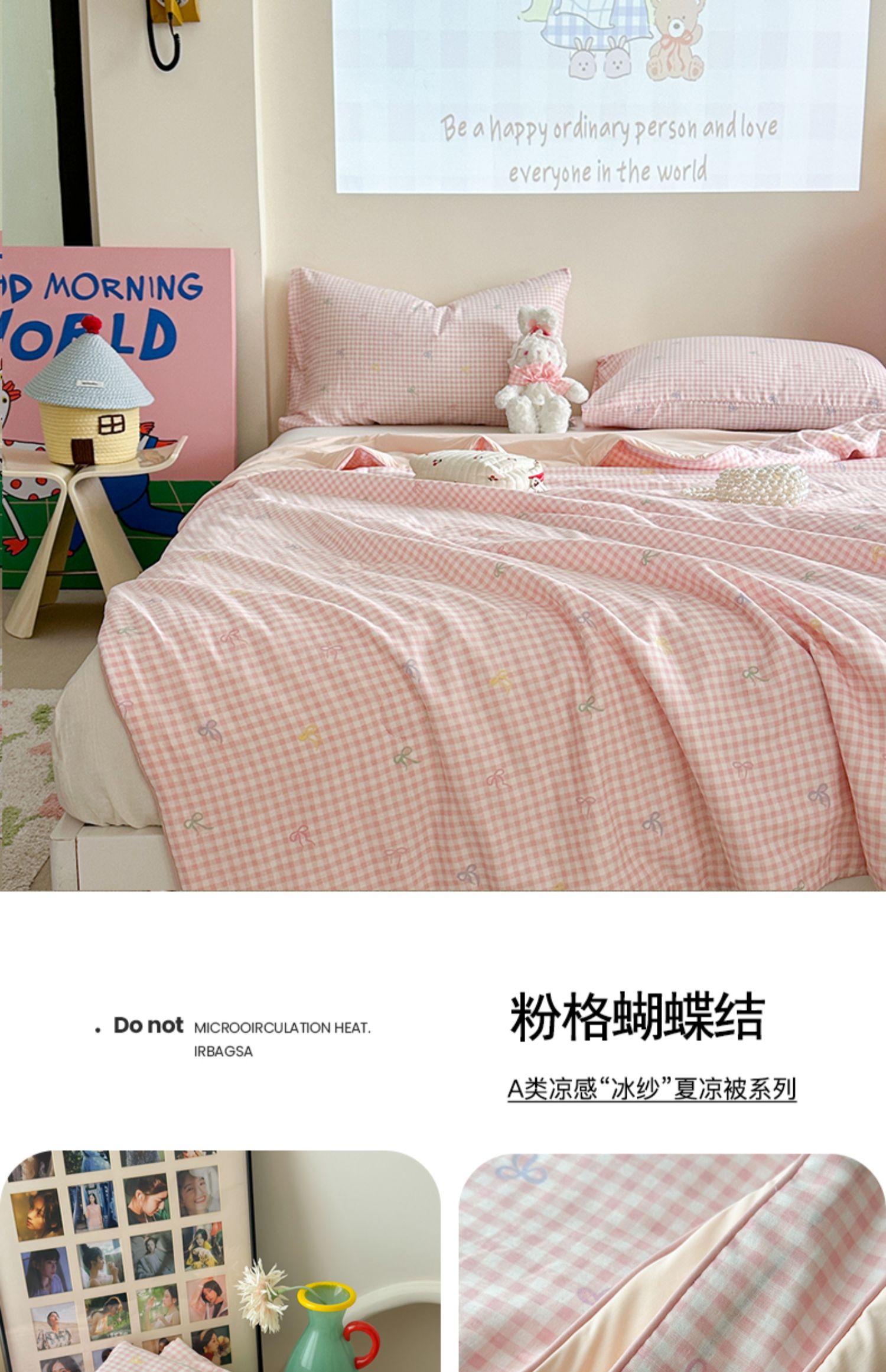 순면 이중실 여름 시원한 이불 4종 세트 여름 시원한 실크 에어컨 이불 기계 세탁 가능한 싱글 얇은 얼음 실크 이불스토어 가기