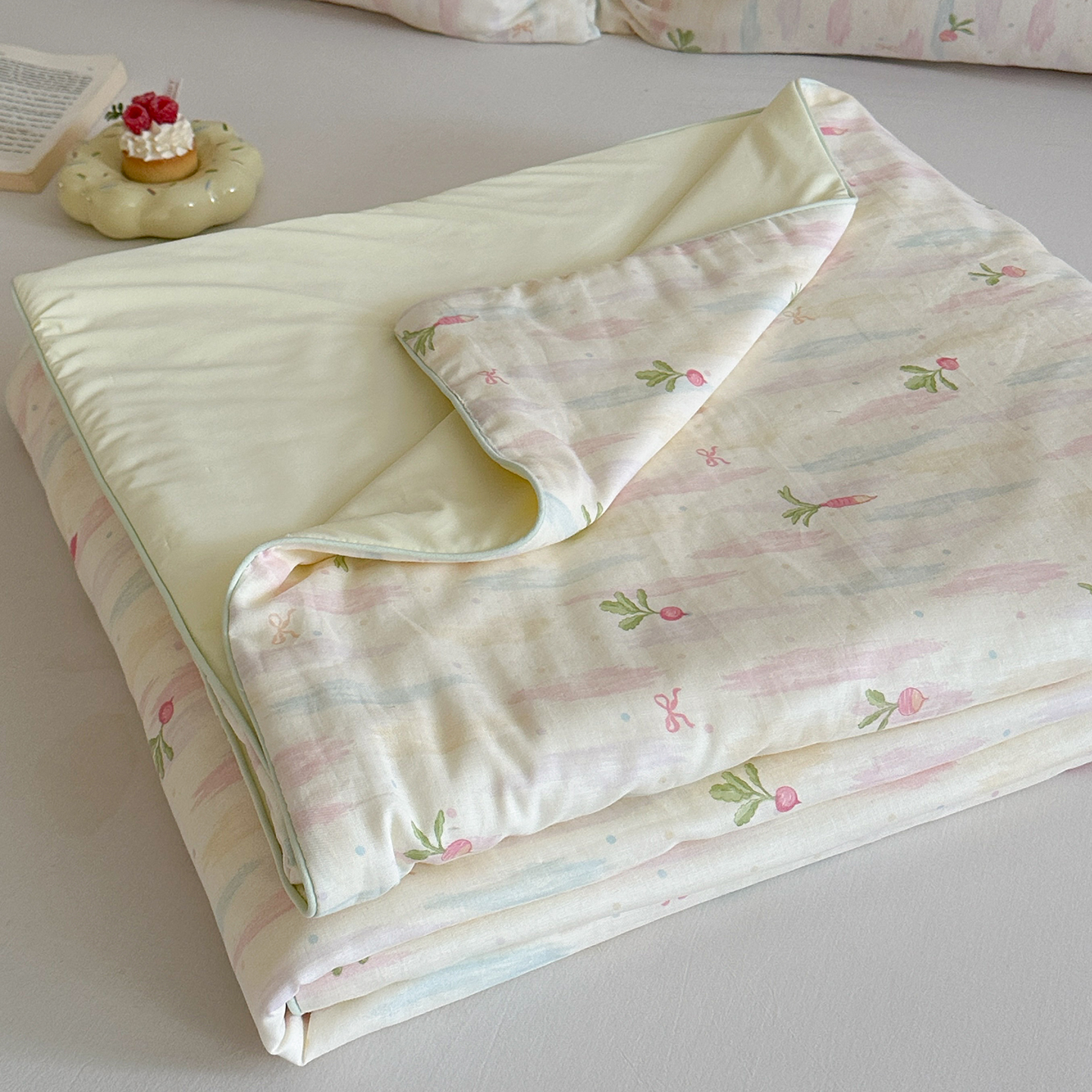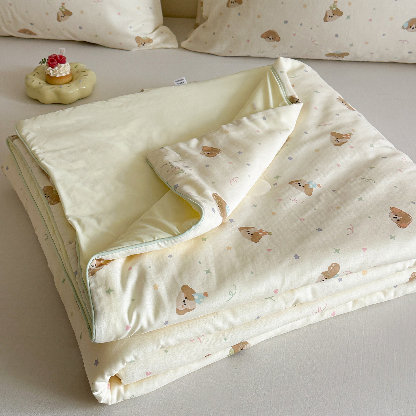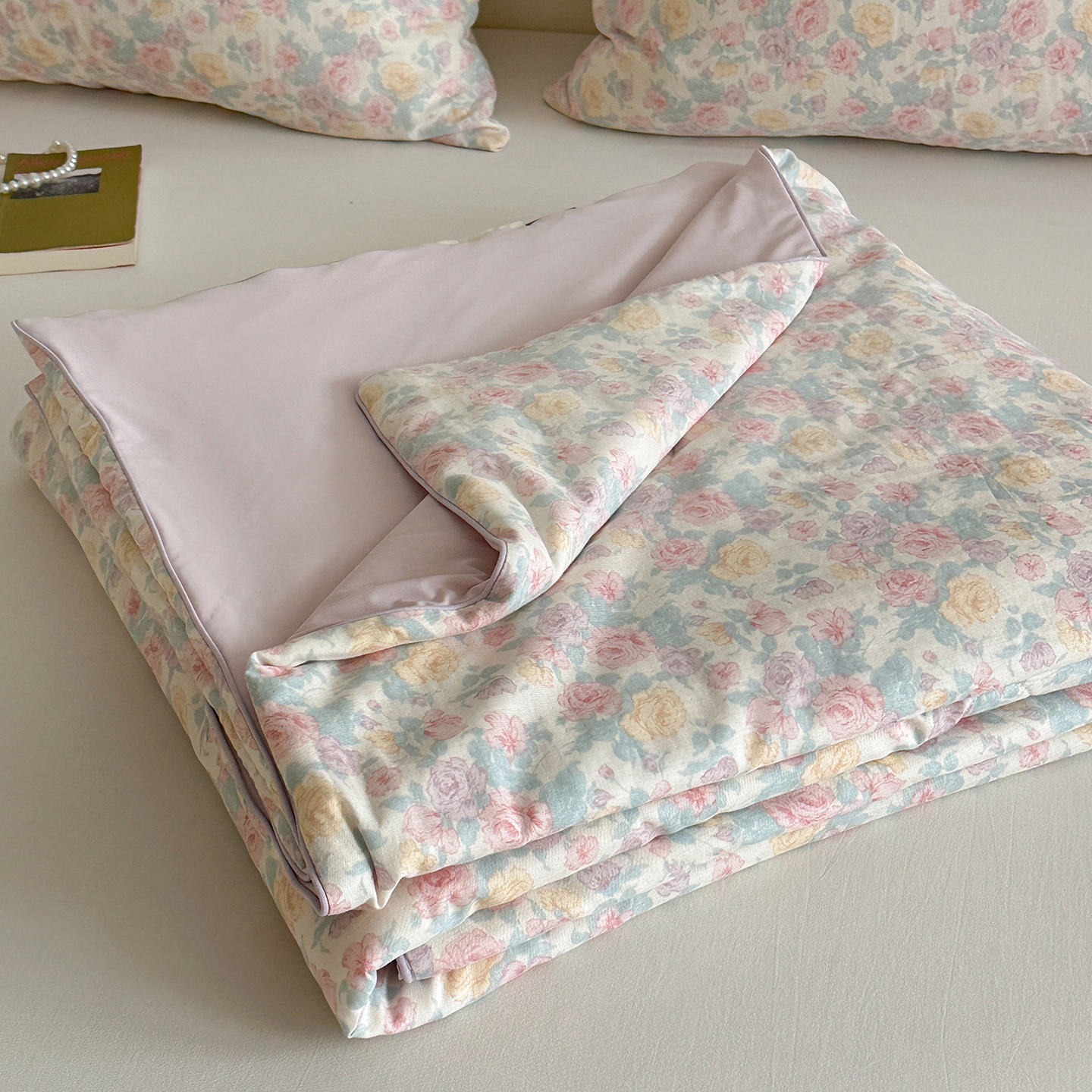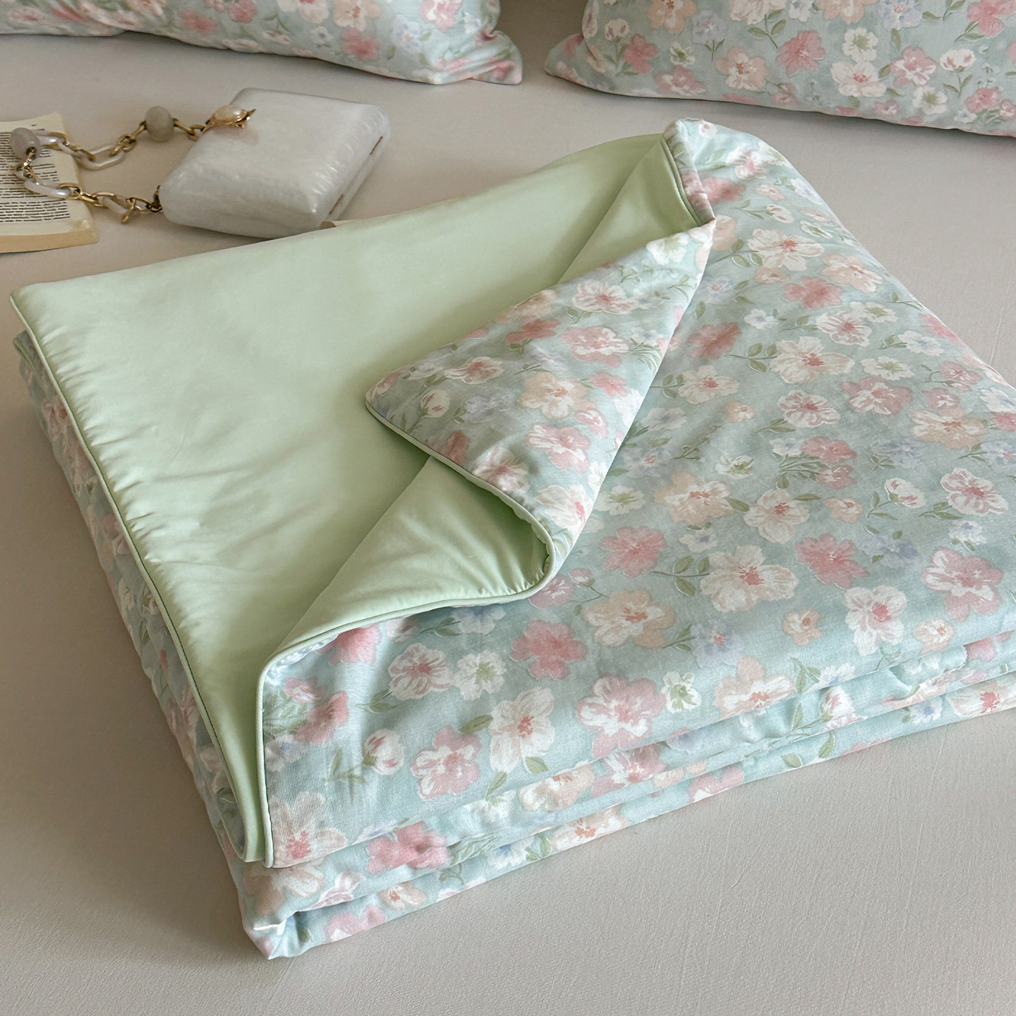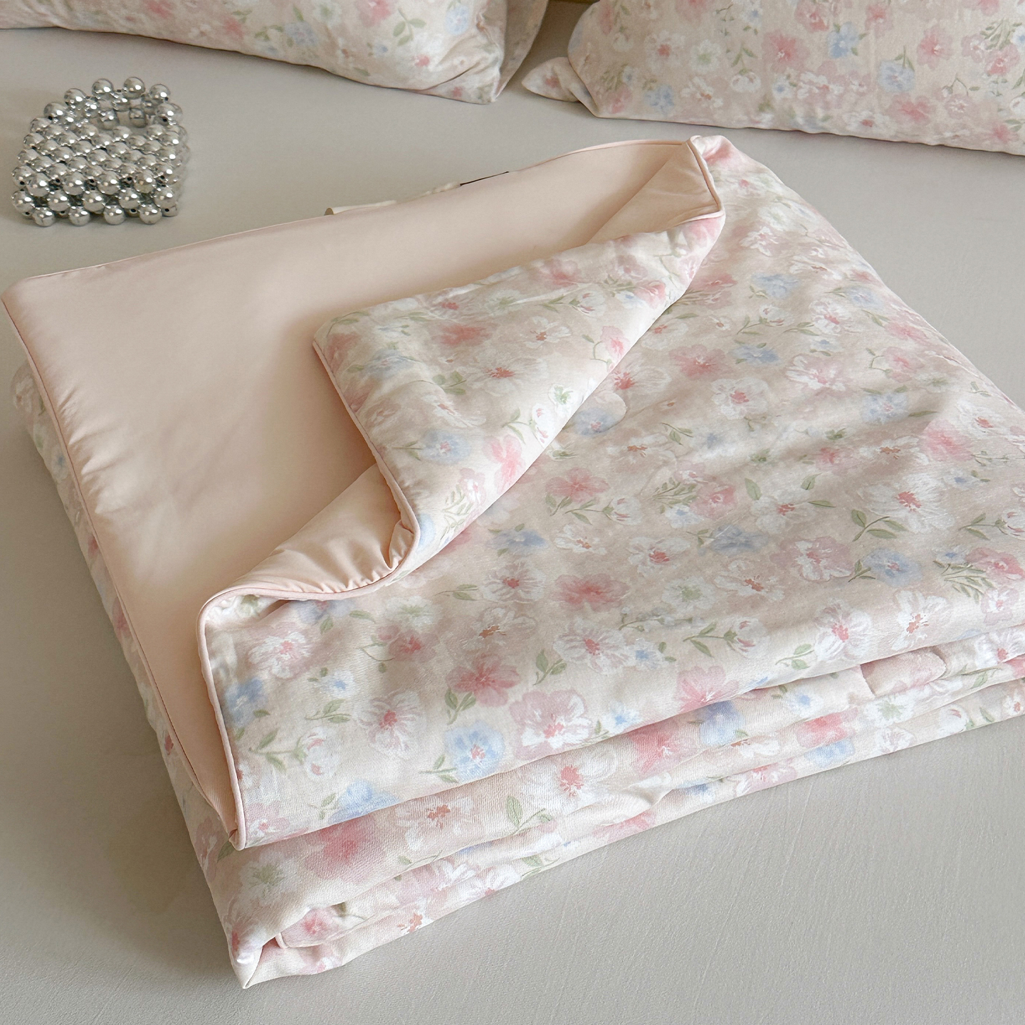 순면 이중실 여름 시원한 이불 4종 세트 여름 시원한 실크 에어컨 이불 기계 세탁 가능한 싱글 얇은 얼음 실크 이불